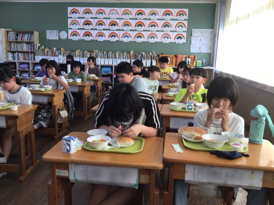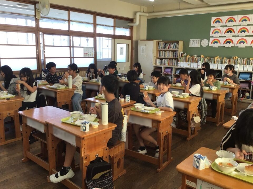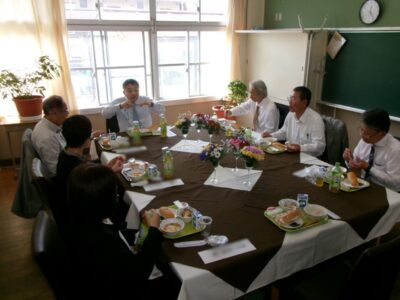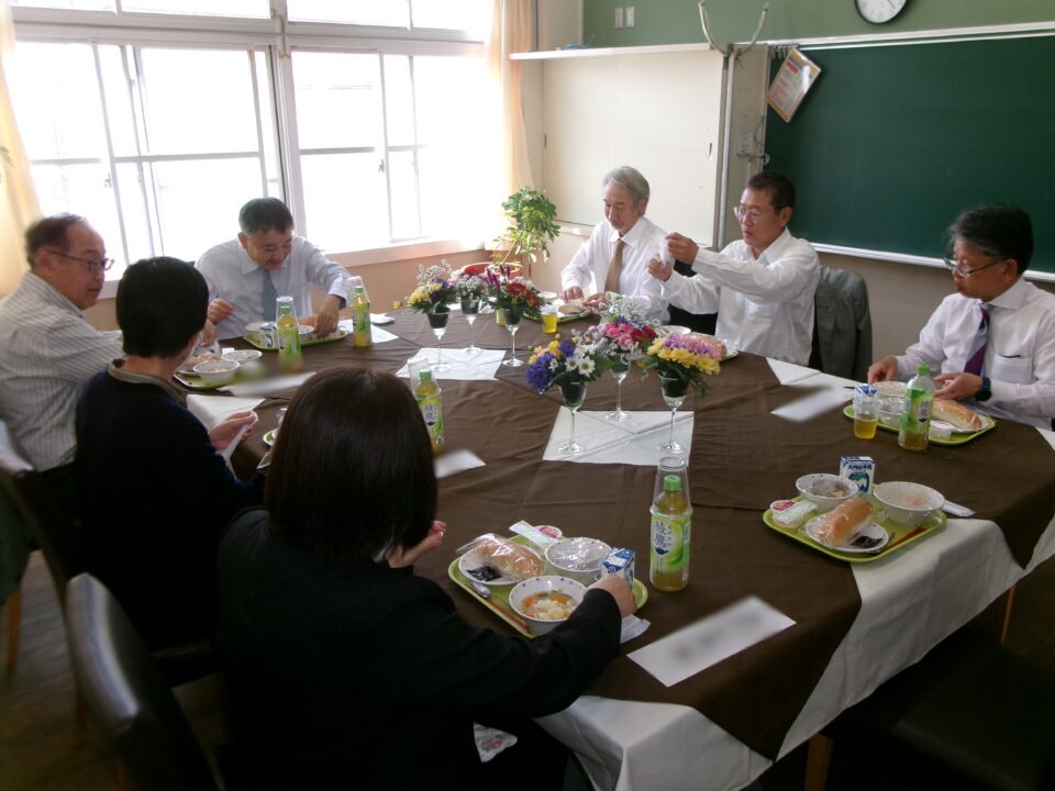 ご来賓の竹上市長も同級生の方々と給食を召し上がっていただきました。