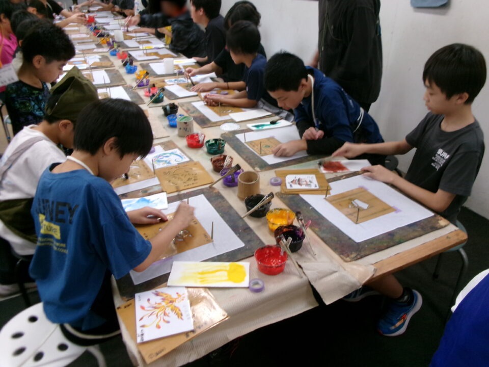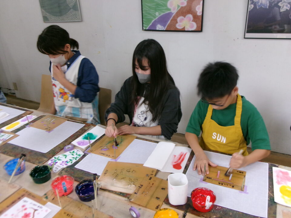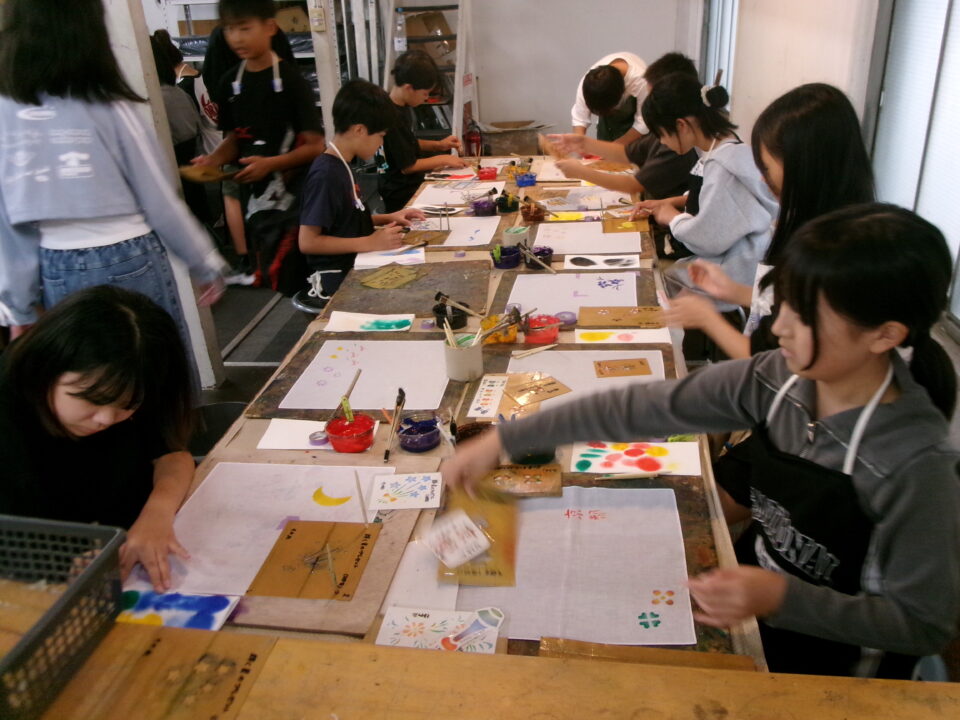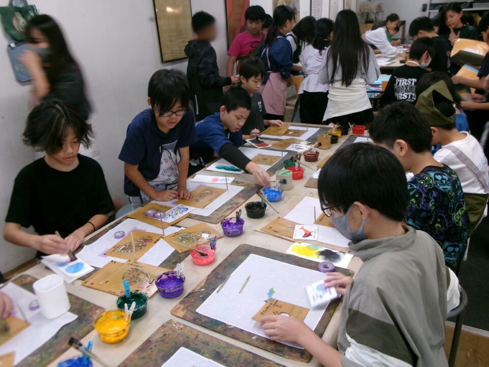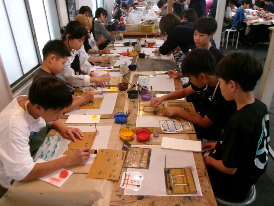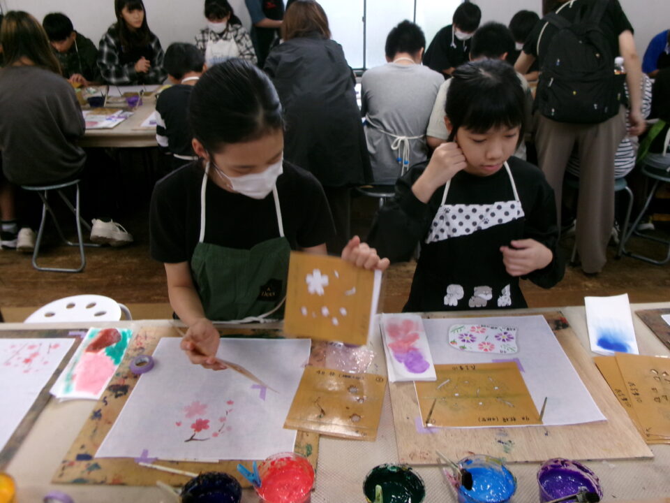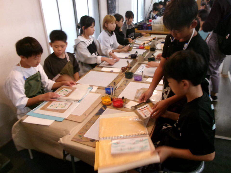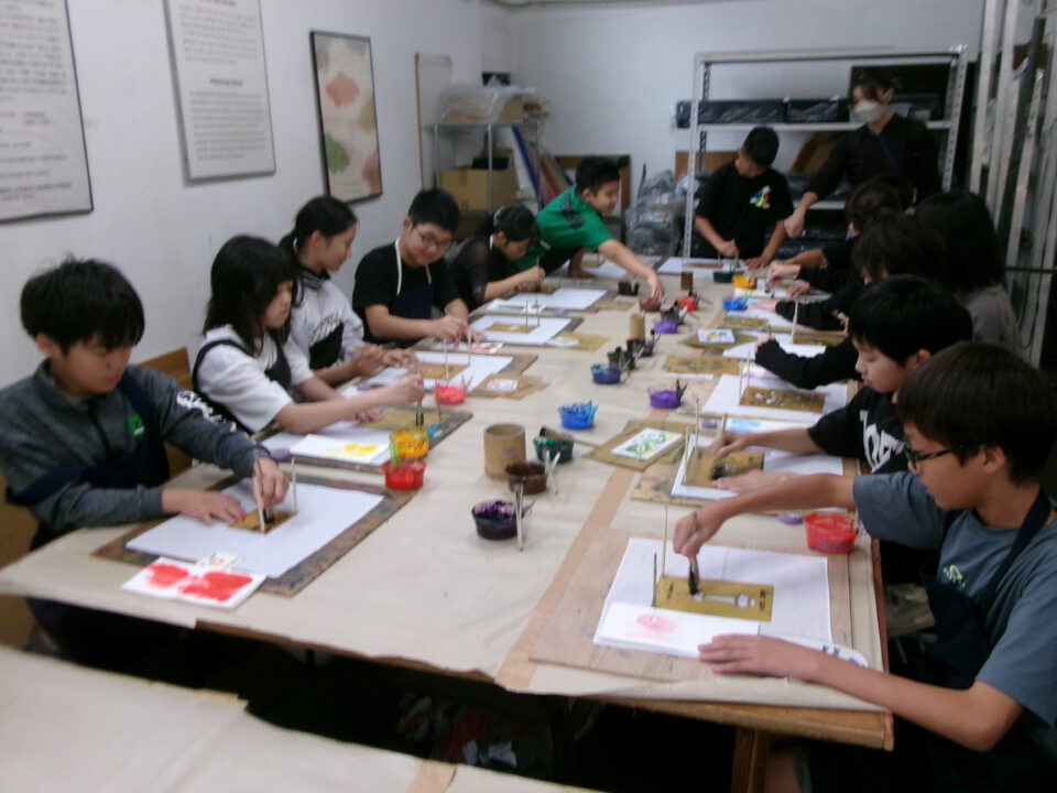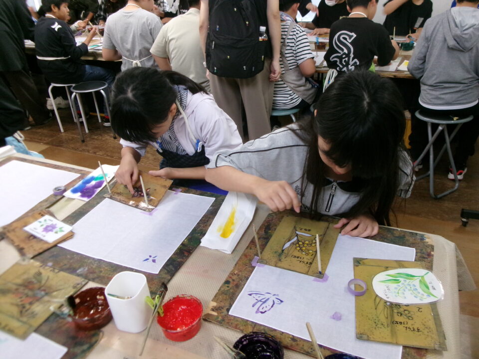 ホーム > 学校活動の様子 丸益西村屋(まるますにしむらや)さんでの友禅染(ゆうぜんぞ)め体験(たいけん) 2日目(ふつかめ)は、まず丸益西村屋(まるますにしむらや)さんでハンカチに友禅染(ゆうぜんぞ)めをしました。 型(かた)に順番(じゅんばん)に色(いろ)を付(つ)けていきます。 シェアする Twitter でシェア はてなブックマークに保存 LINE でシェア Facebook でシェア Pocket に保存 Feedly で購読 関連投稿 学校活動の様子 1年生 遠足(東公園) 学校活動の様子 プログラミング学習(がくしゅう) 5-3 学校活動の様子 / コミュニティ・スクール ミストを設置(せっち)してもらいました。 学校活動の様子 6年生お別れ給食 学校活動の様子 2年いもほり 学校活動の様子 運動会(うんどうかい)表現(ひょうげん)・団体競技(だんたいきょうぎ) 前の投稿 修学旅行(しゅうがくりょこう)2日目(ふつかめ) 次の投稿 二条城見学(にじょうじょうけんがく)