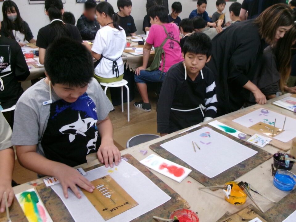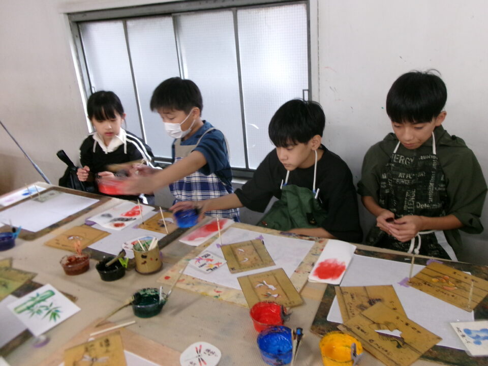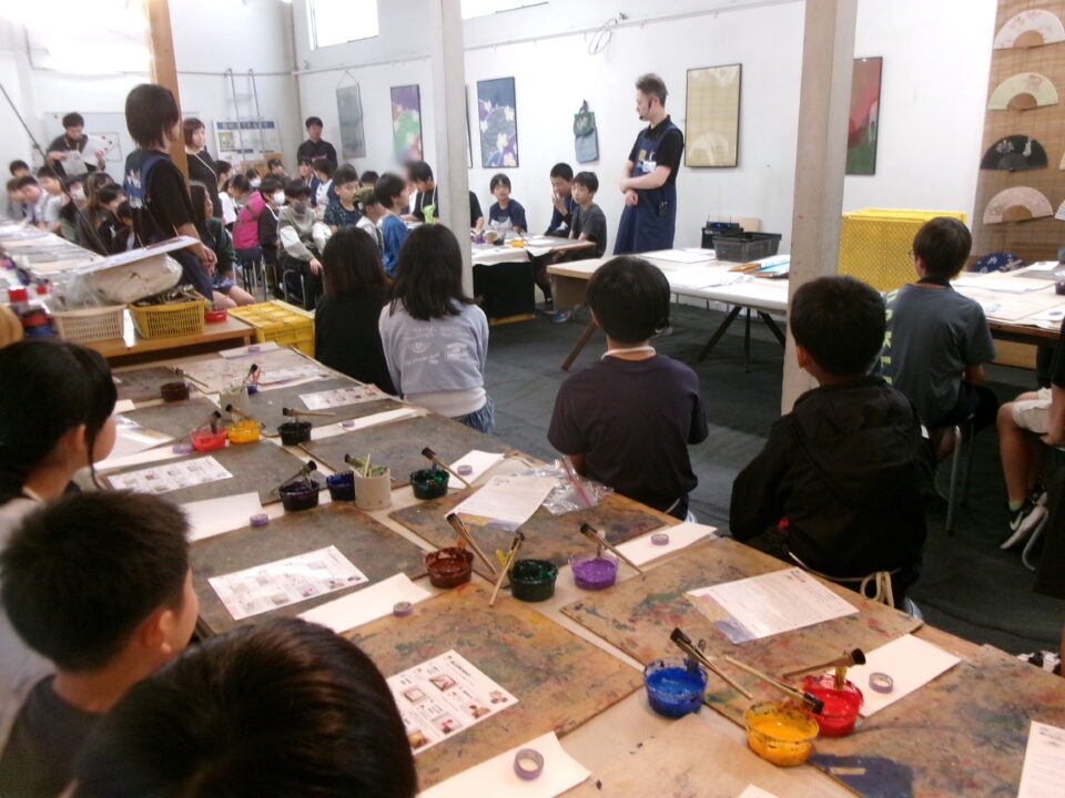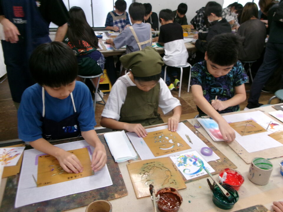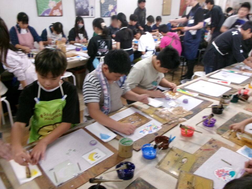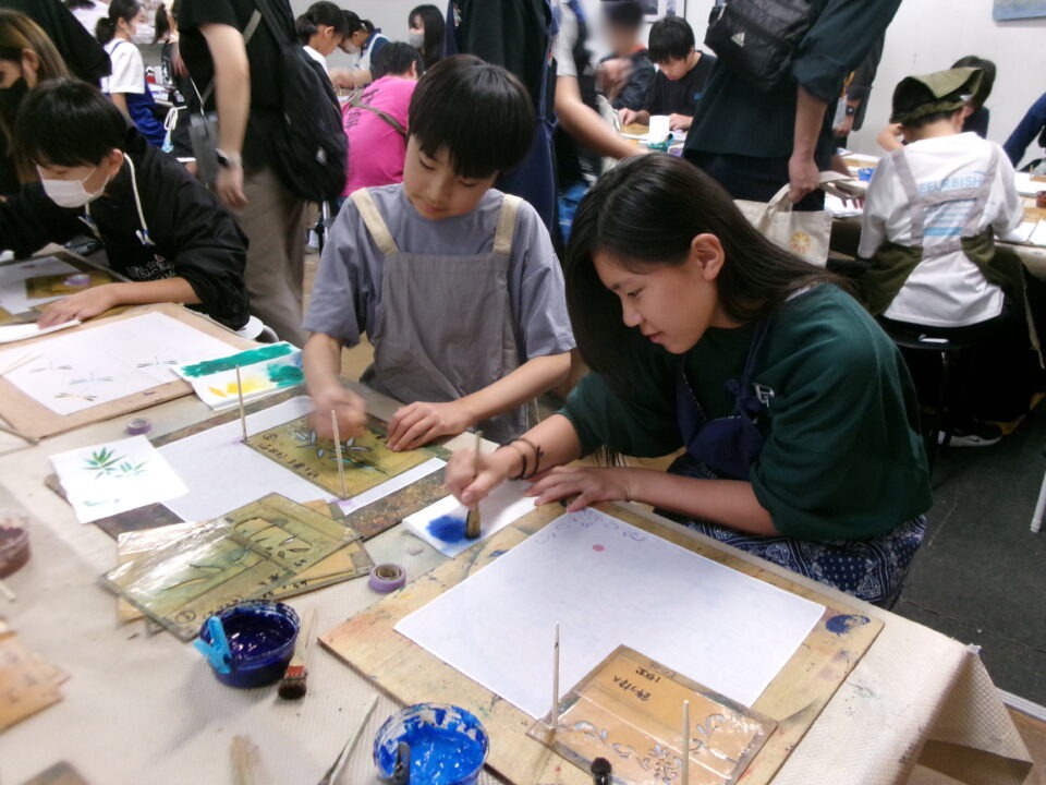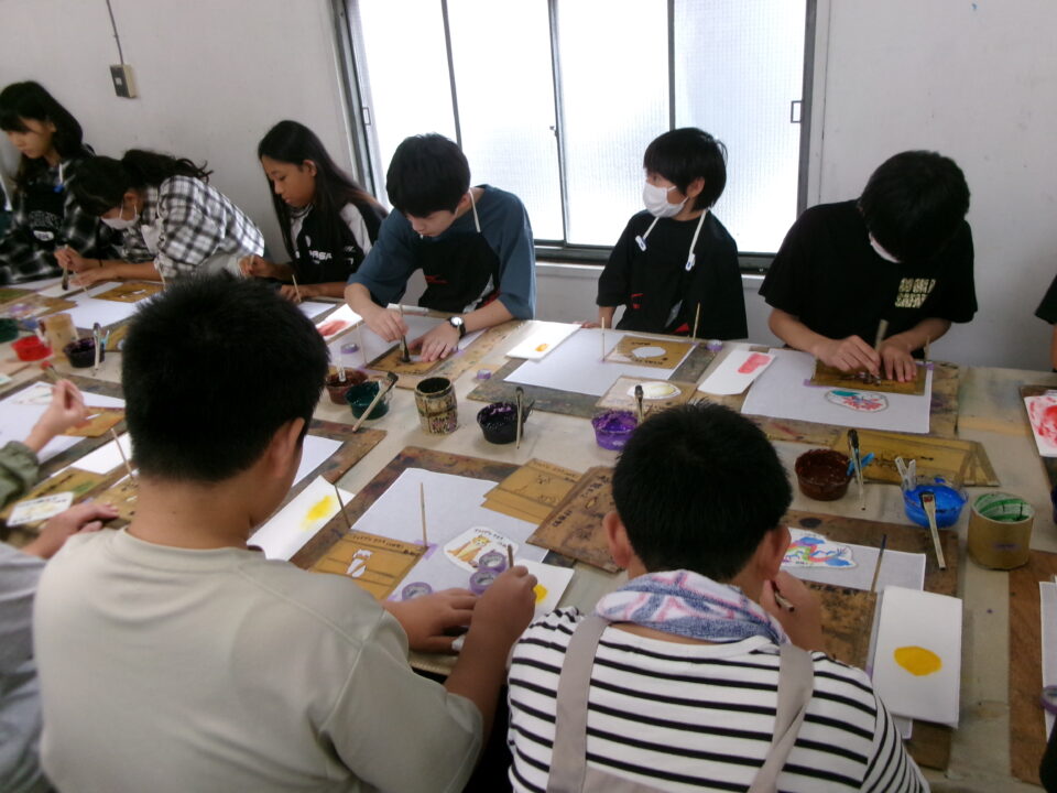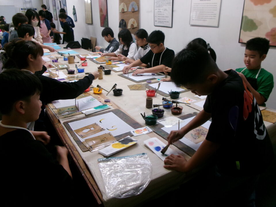 ホーム > 学校活動の様子 丸益西村屋(まるますにしむらや)さんでの友禅染(ゆうぜんぞ)め体験(たいけん) 2日目(ふつかめ)は、まず丸益西村屋(まるますにしむらや)さんでハンカチに友禅染(ゆうぜんぞ)めをしました。 型(かた)に順番(じゅんばん)に色(いろ)を付(つ)けていきます。 シェアする Twitter でシェア はてなブックマークに保存 LINE でシェア Facebook でシェア Pocket に保存 Feedly で購読 関連投稿 学校活動の様子 1年生 遠足(東公園) 学校活動の様子 プログラミング学習(がくしゅう) 5-3 学校活動の様子 / コミュニティ・スクール ミストを設置(せっち)してもらいました。 学校活動の様子 6年生お別れ給食 学校活動の様子 2年いもほり 学校活動の様子 運動会(うんどうかい)表現(ひょうげん)・団体競技(だんたいきょうぎ) 前の投稿 修学旅行(しゅうがくりょこう)2日目(ふつかめ) 次の投稿 二条城見学(にじょうじょうけんがく)