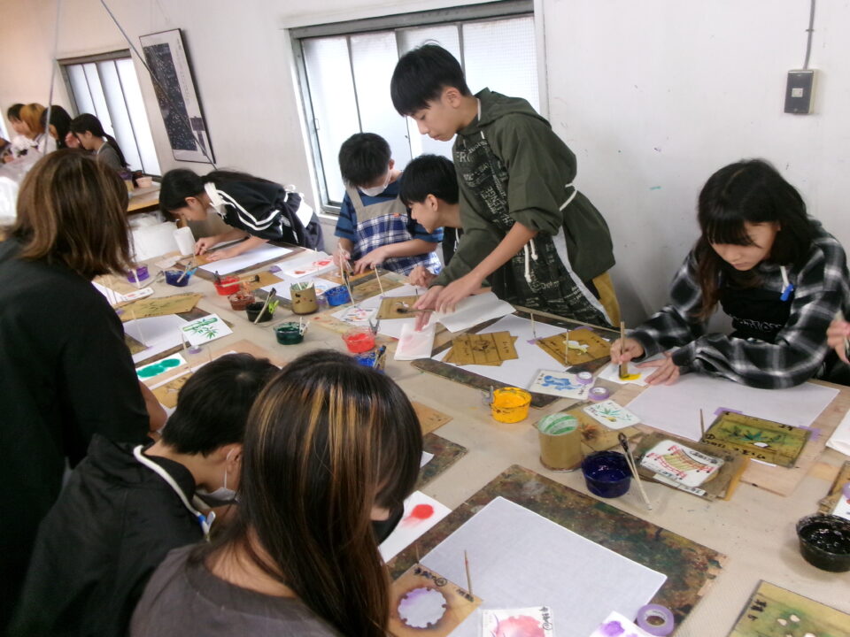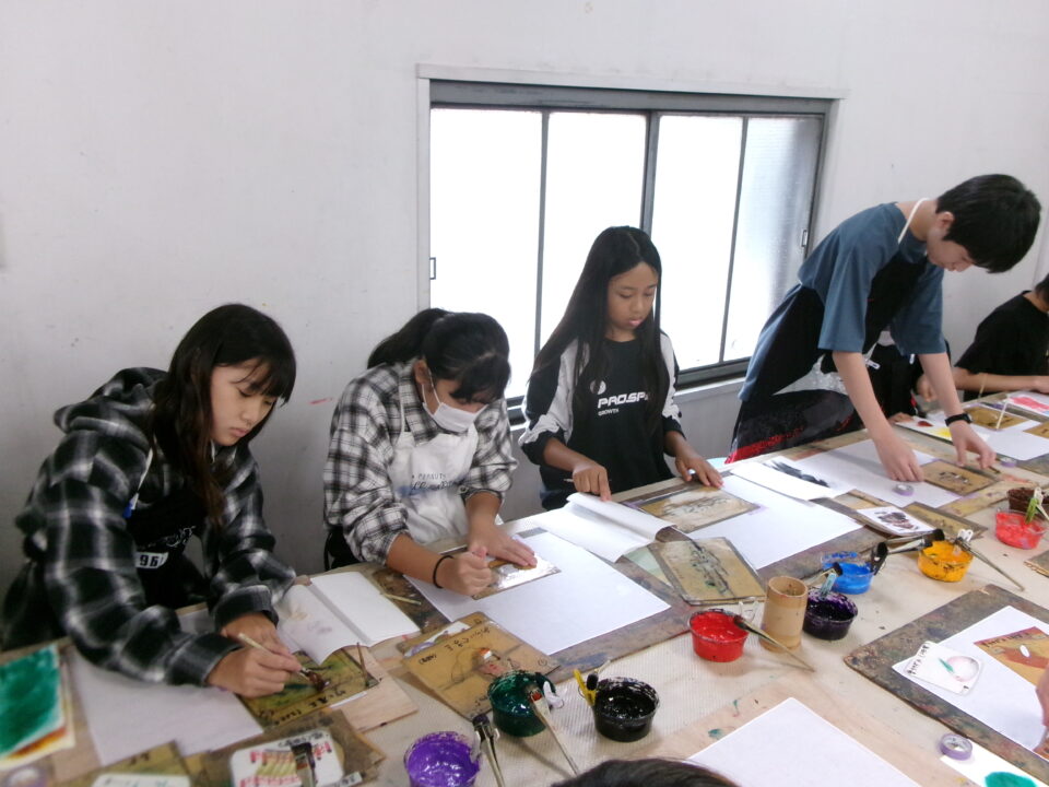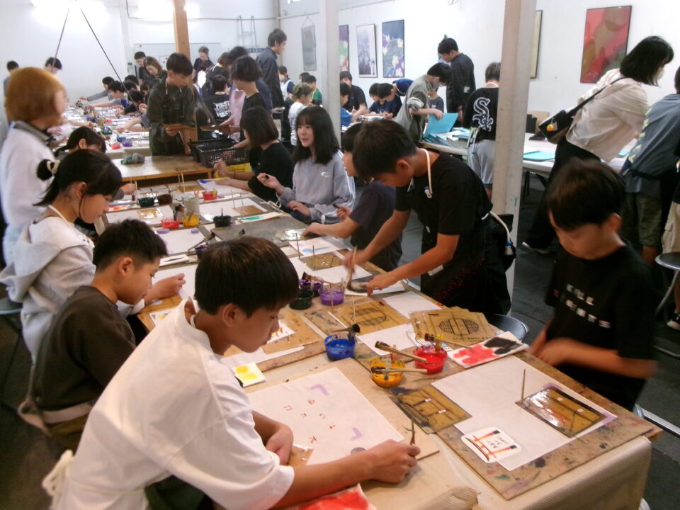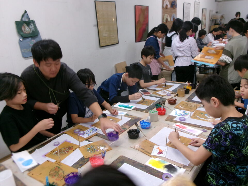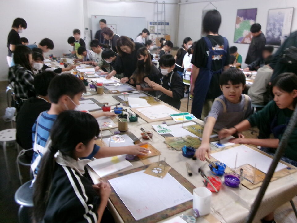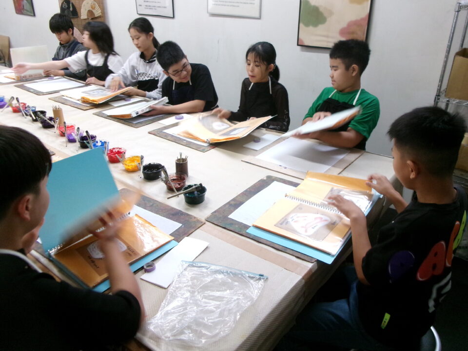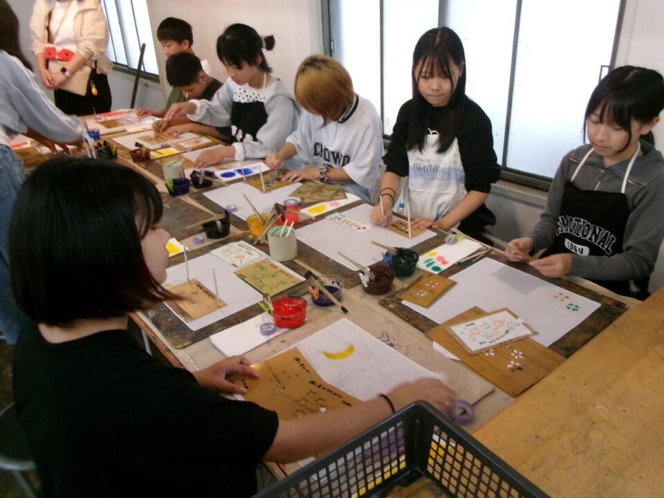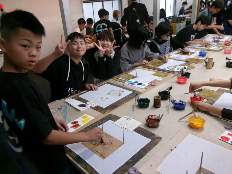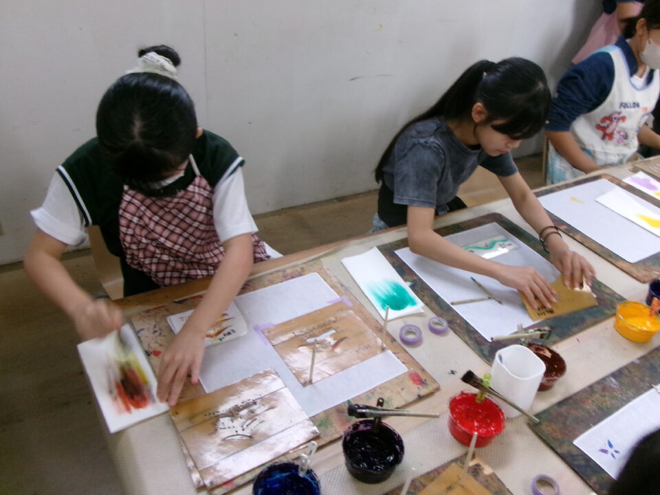 ホーム > 学校活動の様子 丸益西村屋(まるますにしむらや)さんでの友禅染(ゆうぜんぞ)め体験(たいけん) 2日目(ふつかめ)は、まず丸益西村屋(まるますにしむらや)さんでハンカチに友禅染(ゆうぜんぞ)めをしました。 型(かた)に順番(じゅんばん)に色(いろ)を付(つ)けていきます。 シェアする Twitter でシェア はてなブックマークに保存 LINE でシェア Facebook でシェア Pocket に保存 Feedly で購読 関連投稿 学校活動の様子 1年生 遠足(東公園) 学校活動の様子 プログラミング学習(がくしゅう) 5-3 学校活動の様子 / コミュニティ・スクール ミストを設置(せっち)してもらいました。 学校活動の様子 6年生お別れ給食 学校活動の様子 2年いもほり 学校活動の様子 運動会(うんどうかい)表現(ひょうげん)・団体競技(だんたいきょうぎ) 前の投稿 修学旅行(しゅうがくりょこう)2日目(ふつかめ) 次の投稿 二条城見学(にじょうじょうけんがく)