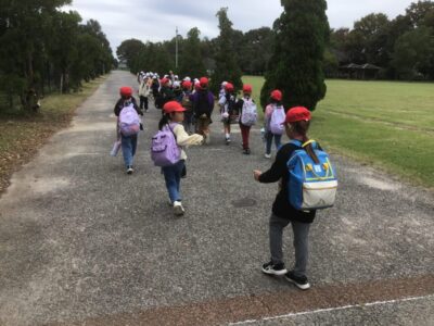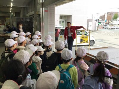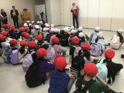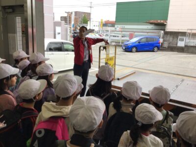 今日きょうは、2年生ねんせいがバスを使つかって校外こうがい学習がくしゅうをしにきました。