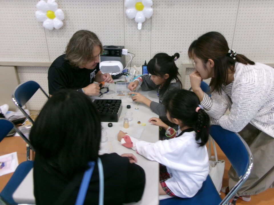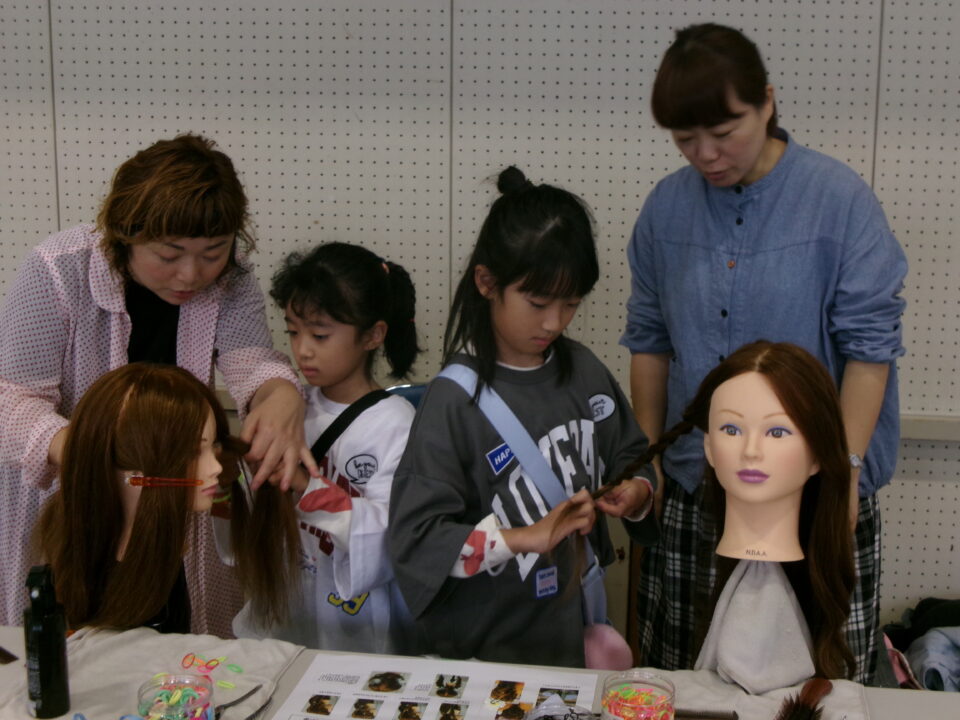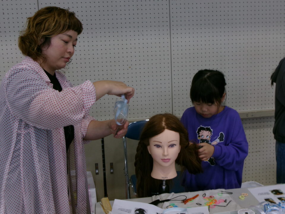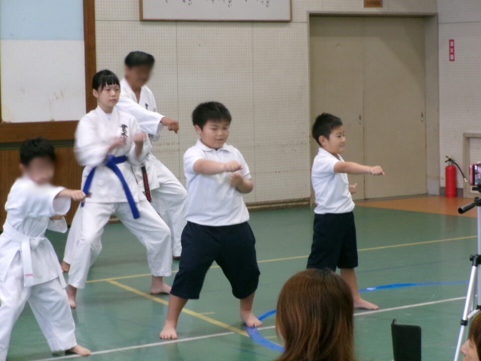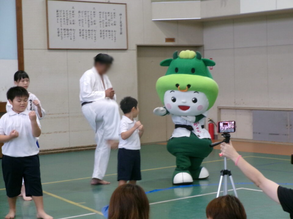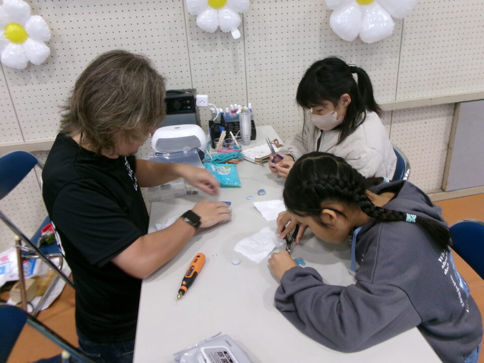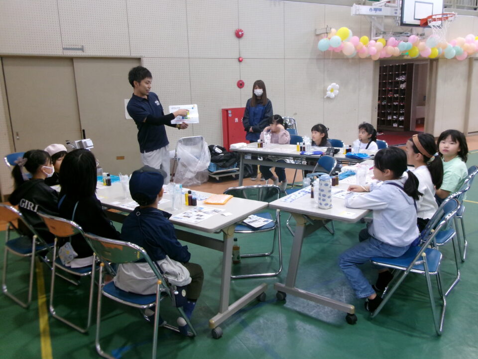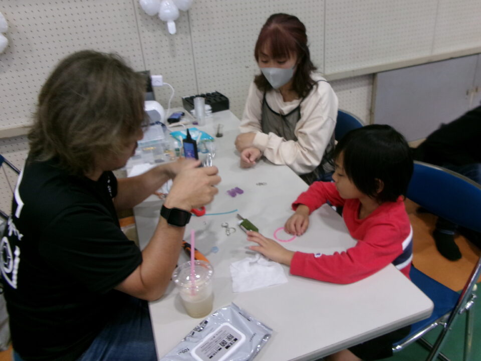 体育館では、測量体験、キーホルダーづくり、ヘアアレンジ教室、オリジナル保冷剤づくり、フォトブースなどがあり、11時から「寛水流空手港道場」の演武・空手体験、12時から「DanceTeamArzu」のダンス発表、14時から「スペシャルイベント」で〇✕クイズやじゃんけん大会、お菓子まき、校歌斉唱があり、とっても盛り上がりました。