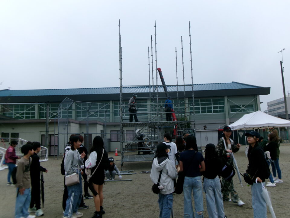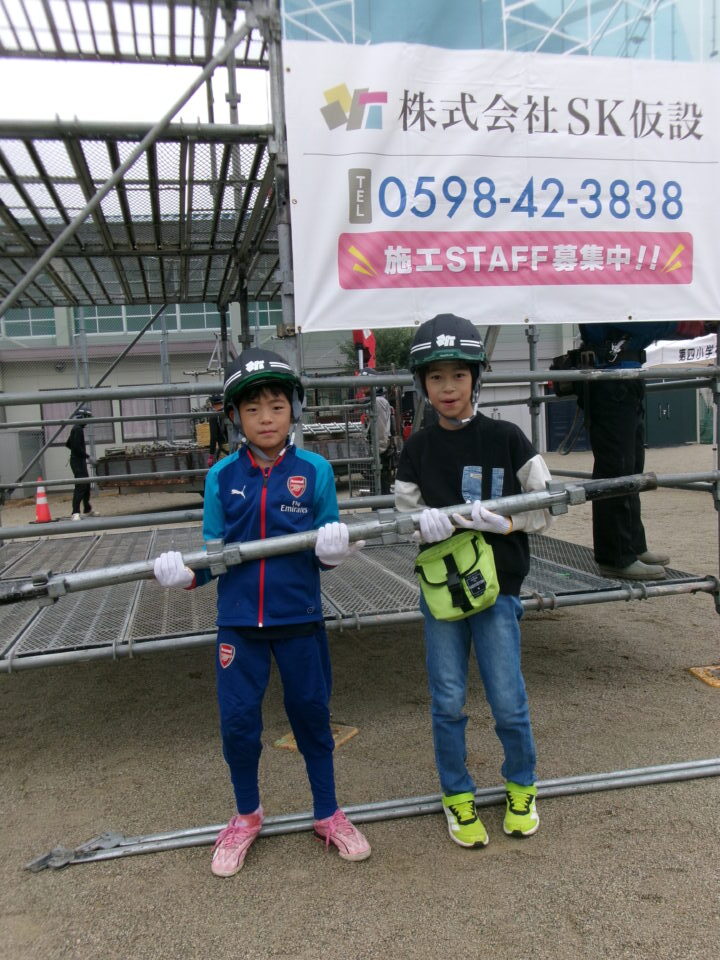 お仕事体験もあり、足場づくりショーと解体ショーがありました。