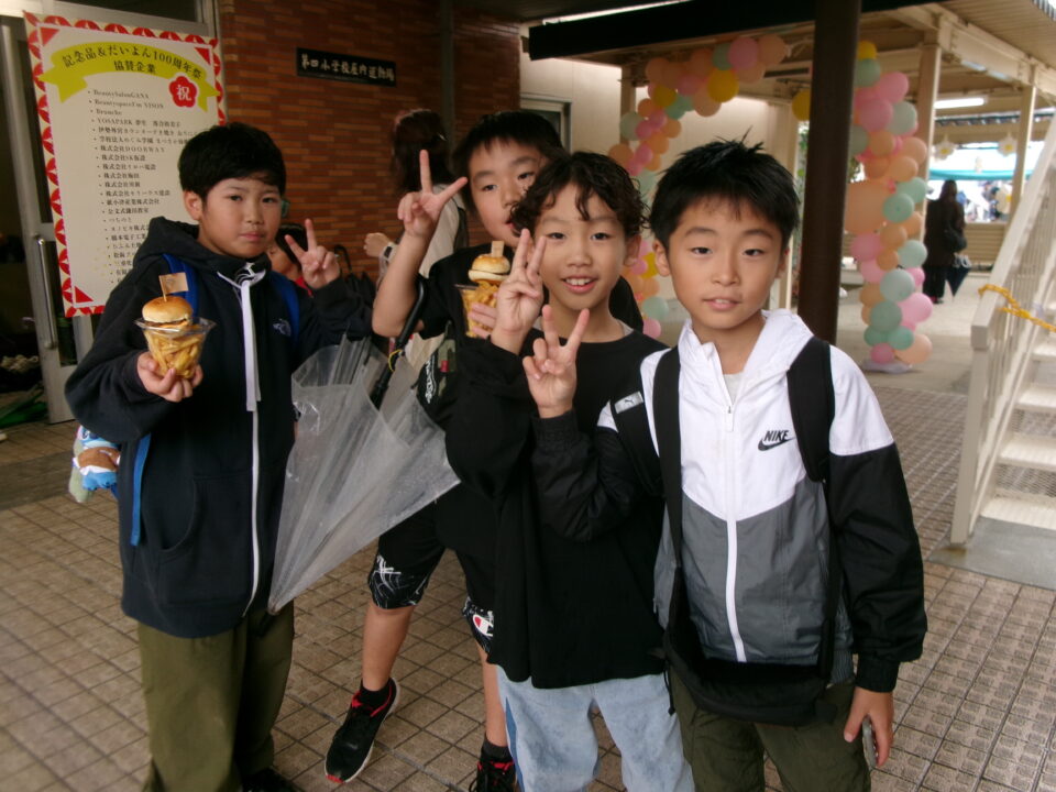 今日は、小学校創立100周年記念として、地域の方が中心となって「だいよん100周年祭」を開催してくれました。ありがとうございます👏👏👏