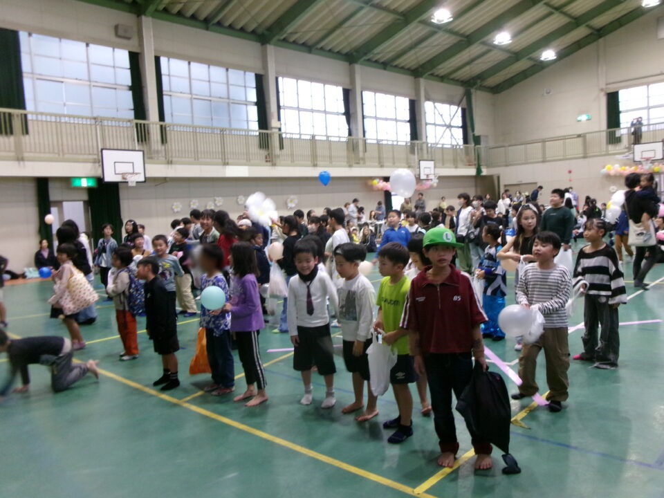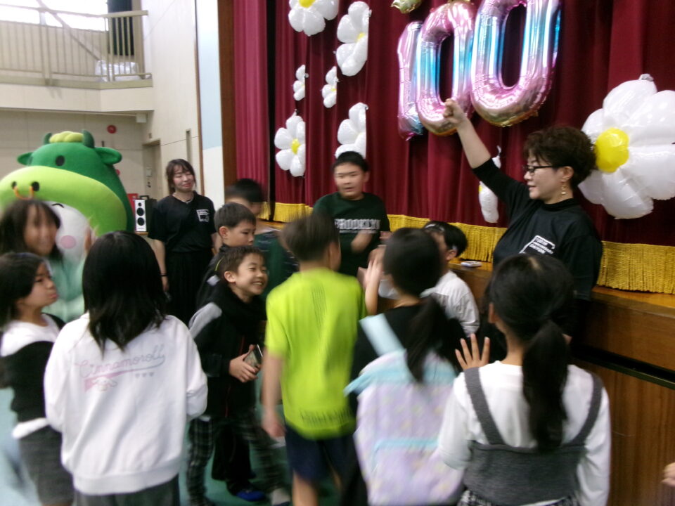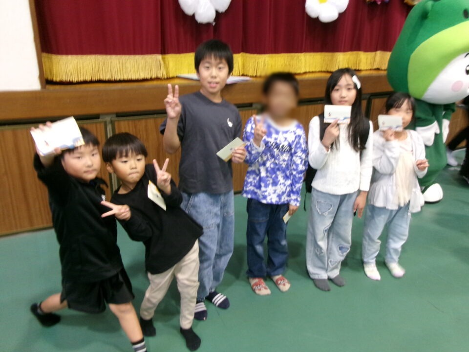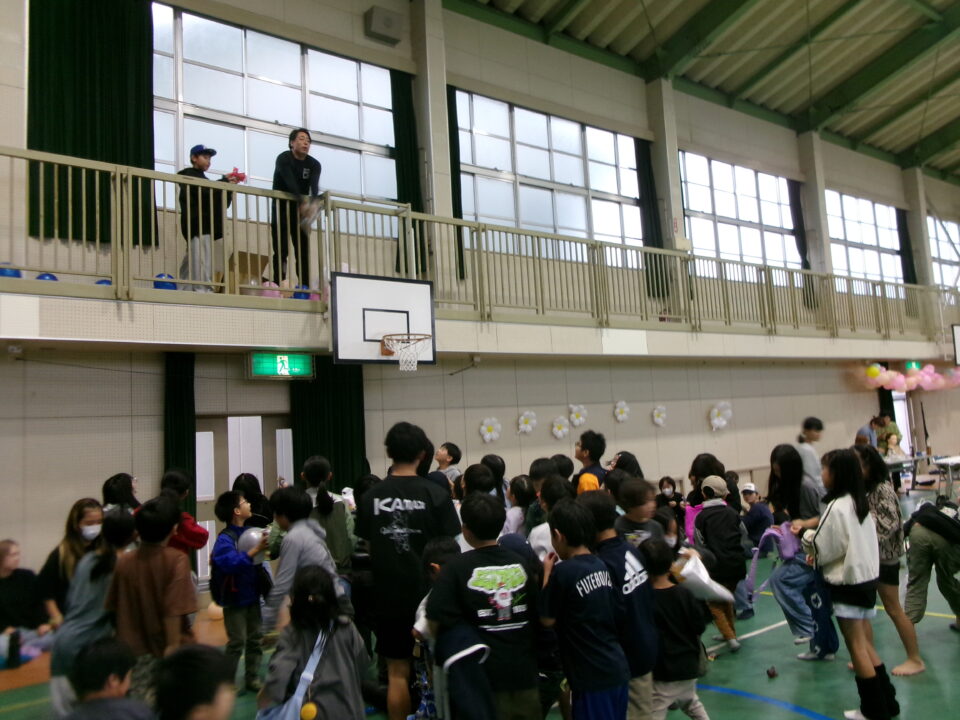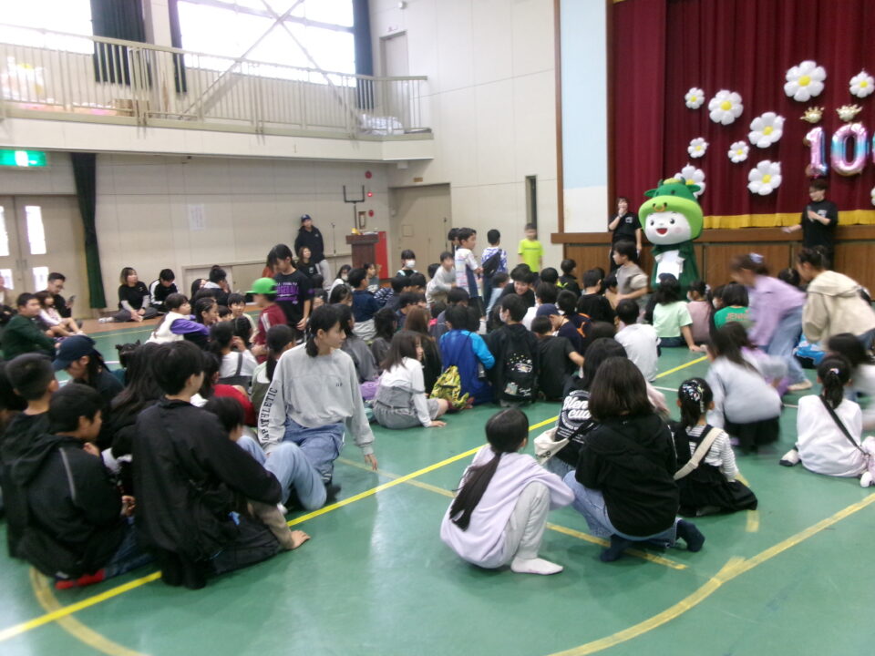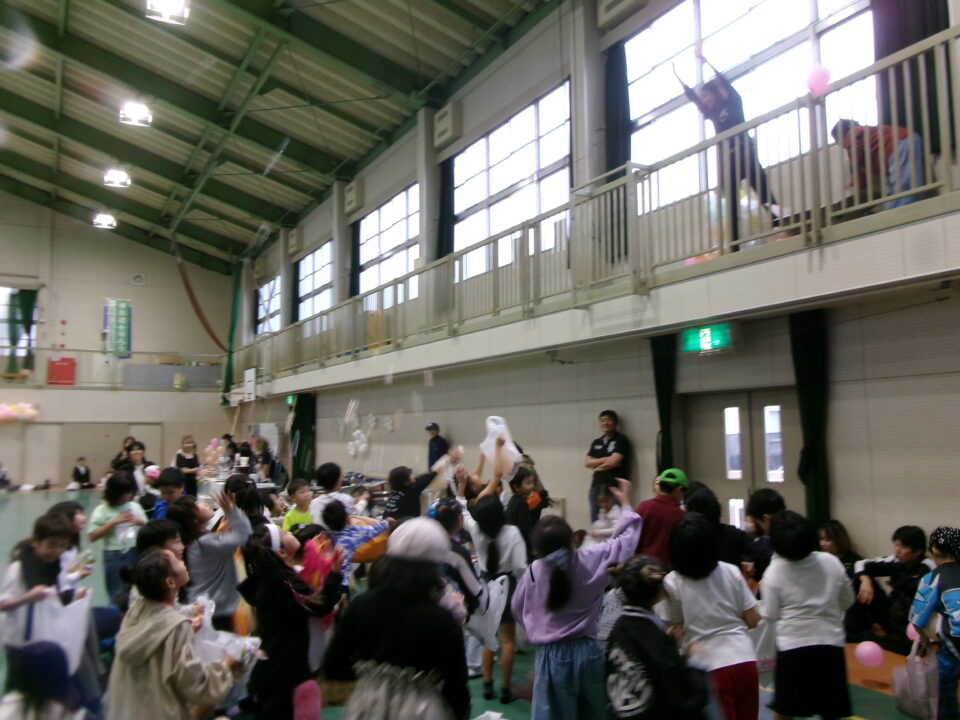 〇✕クイズ、じゃんけん大会、お菓子まき、校歌斉唱と楽しい時間を過ごしました。