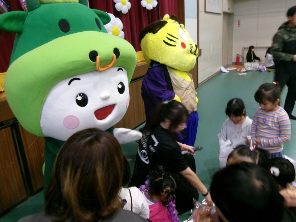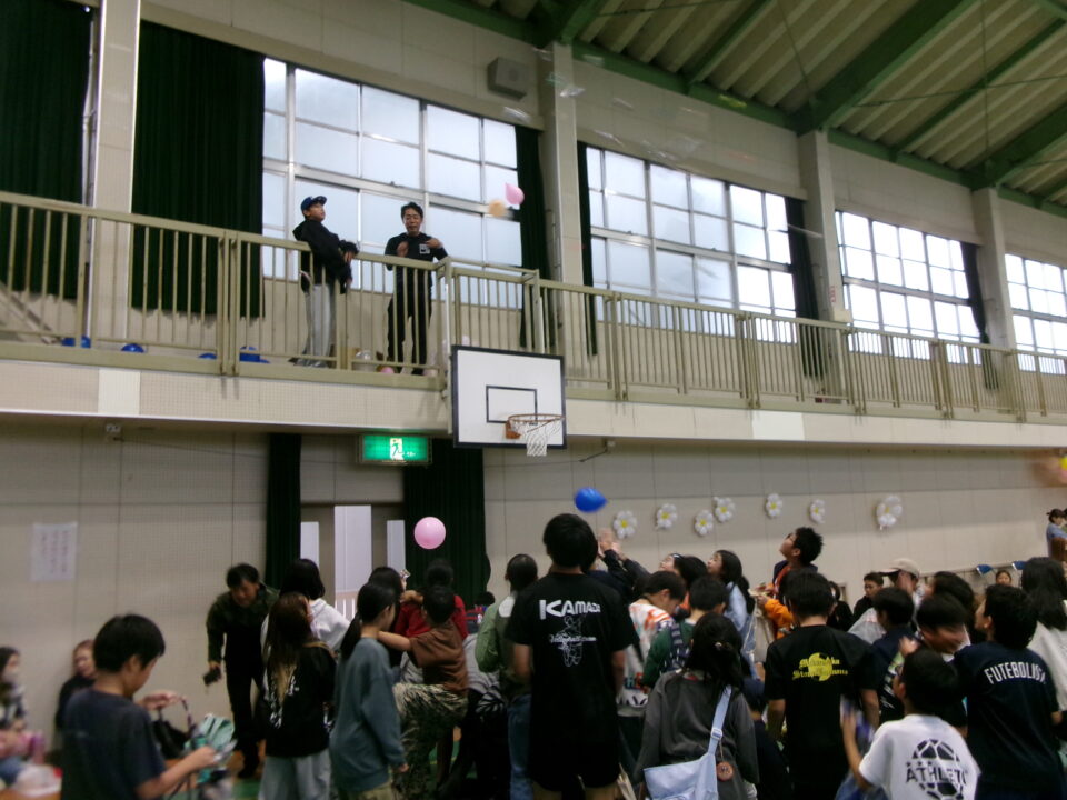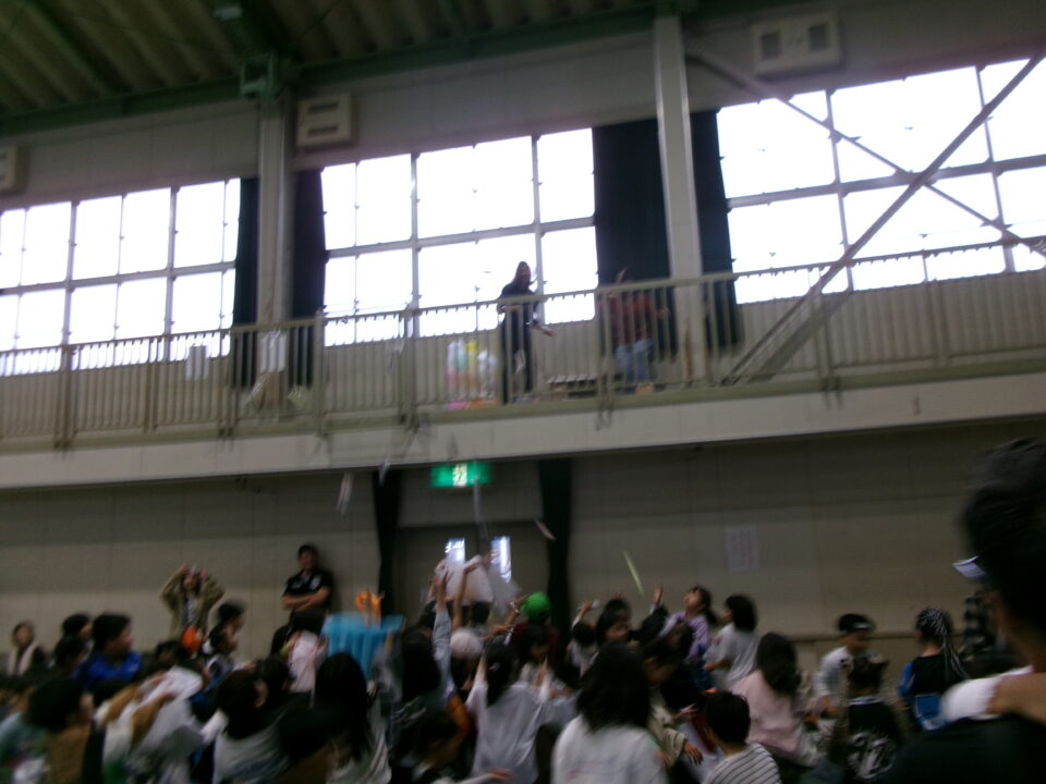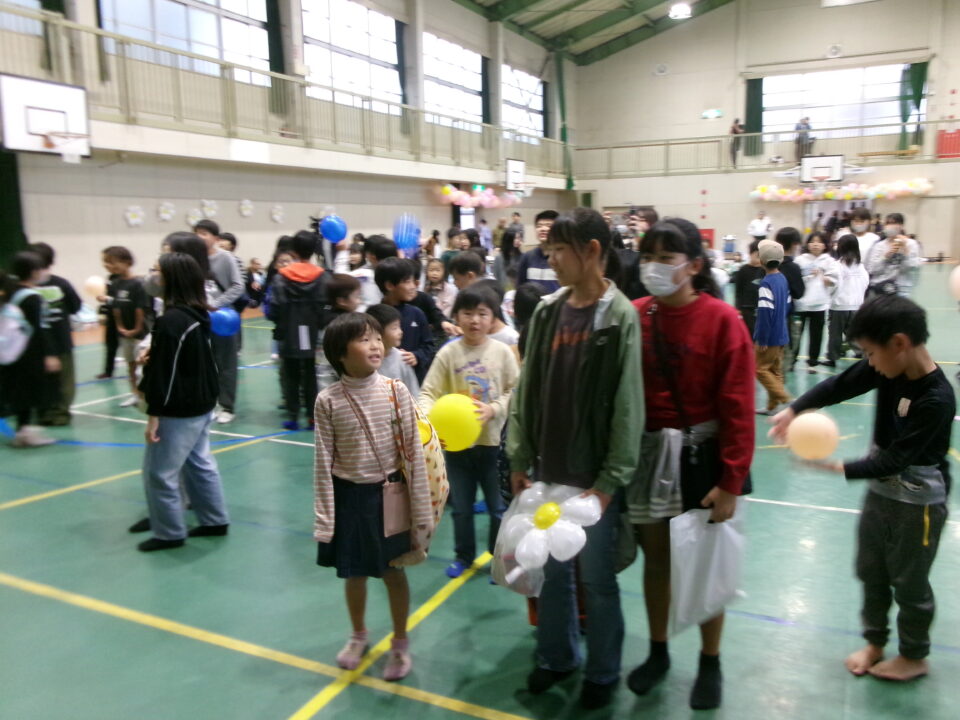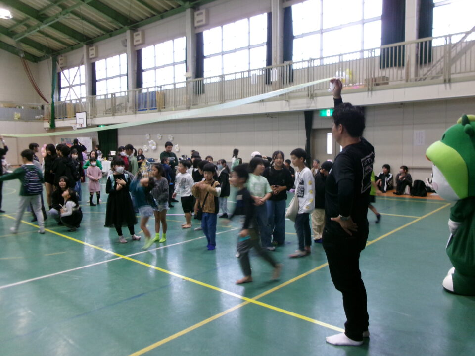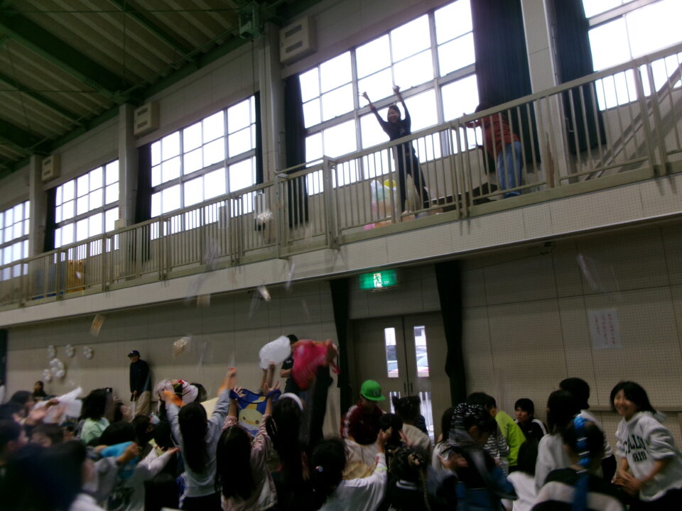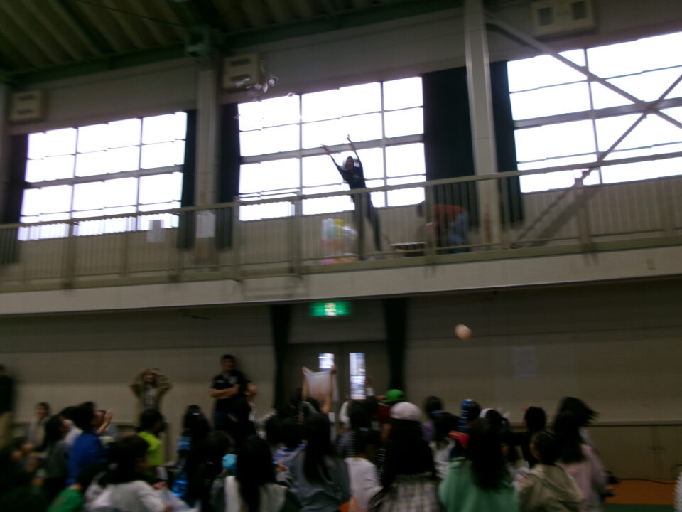 〇✕クイズ、じゃんけん大会、お菓子まき、校歌斉唱と楽しい時間を過ごしました。