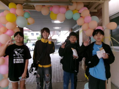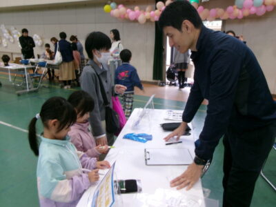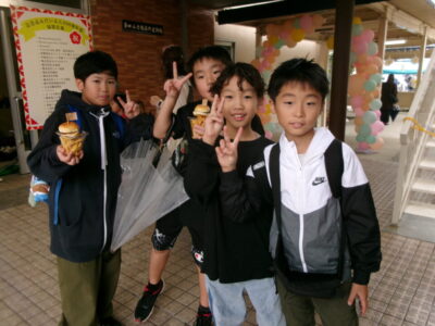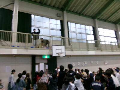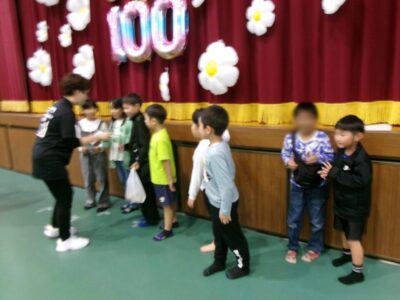 〇✕クイズ、じゃんけん大会、お菓子まき、校歌斉唱と楽しい時間を過ごしました。
