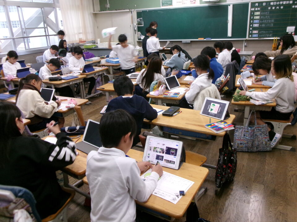 ホーム > 学校活動の様子 学習(がくしゅう)の様子(ようす) 3年生(ねんせい) 昨日(きのう)、社会見学(しゃかいけんがく)に出(で)かけ、3か所(しょ)も見学(けんがく)してきた3年生(ねんせい)。 今日(きょう)は、新聞(しんぶん)づくりに熱心(ねっしん)に取(と)り組(く)んでいました。 隣(となり)のクラスも新聞(しんぶん)づくりに取(と)り組(く)んでいますが、写真(しゃしん)は「みえ松阪(まつさか)マラソン」の応援(おうえん)メッセージにも取(と)り組(く)んでいる様子(ようす)です。 シェアする Twitter でシェア はてなブックマークに保存 LINE でシェア Facebook でシェア Pocket に保存 Feedly で購読 関連投稿 学校活動の様子 食育(しょくいく)5-1 学校活動の様子 徒競走(ときょうそう)練習(れんしゅう) 学校活動の様子 学習(がくしゅう)の様子(ようす)2年生(ねんせい)・1年生(ねんせい) 学校活動の様子 1年生鎌田幼稚園・三郷保育園訪問 学校活動の様子 全校遊び 学校活動の様子 2年生 牧野さんをお招きして 前の投稿 3年生(ねんせい)が社会見学(しゃかいけんがく)に行(い)ってきました。 次の投稿 6年生(ねんせい) 三井家発祥地(みついけはっしょうち)見学(けんがく)