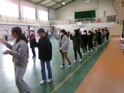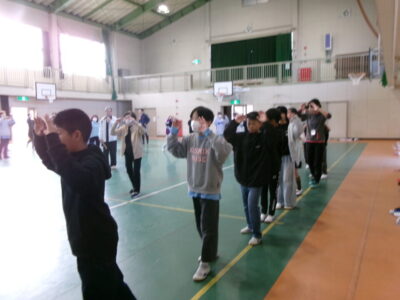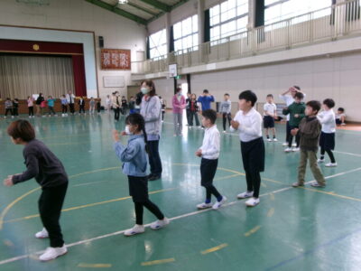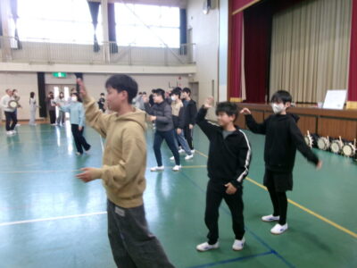 しょんがい踊りの練習をしました。6年3年