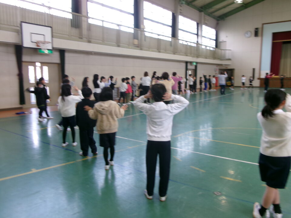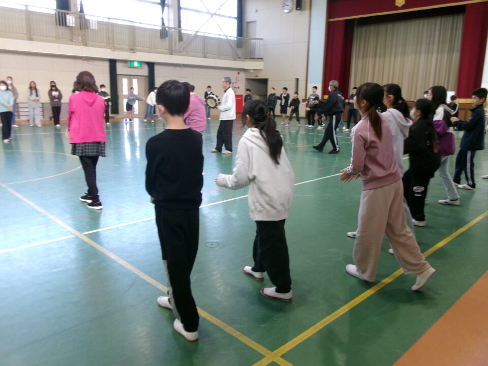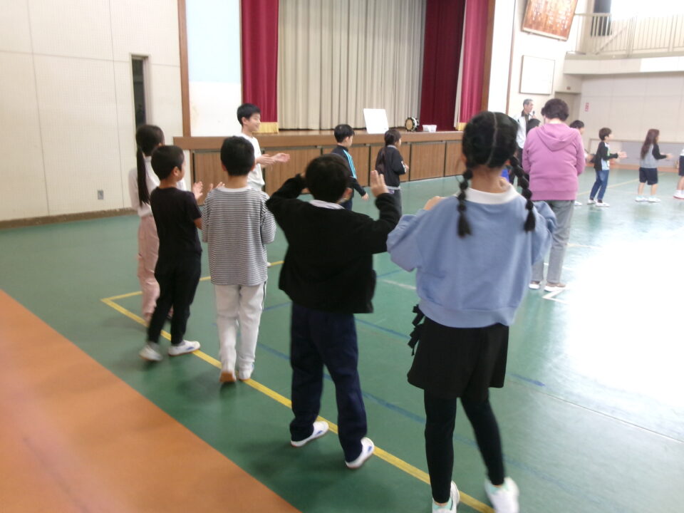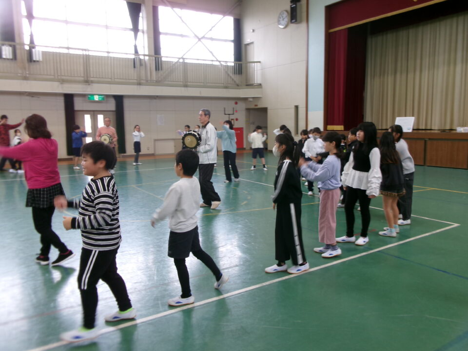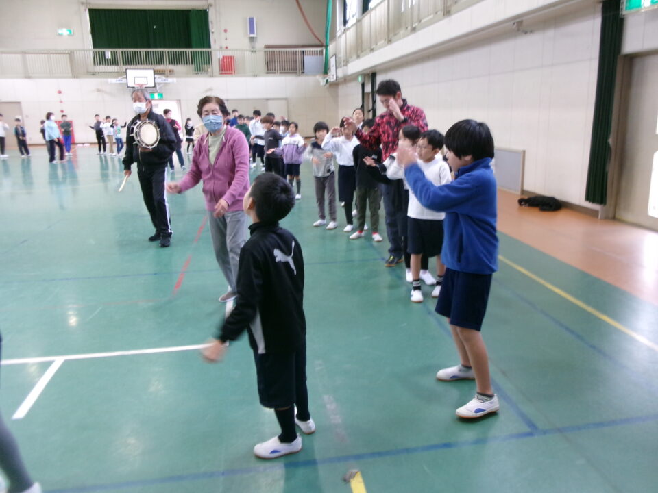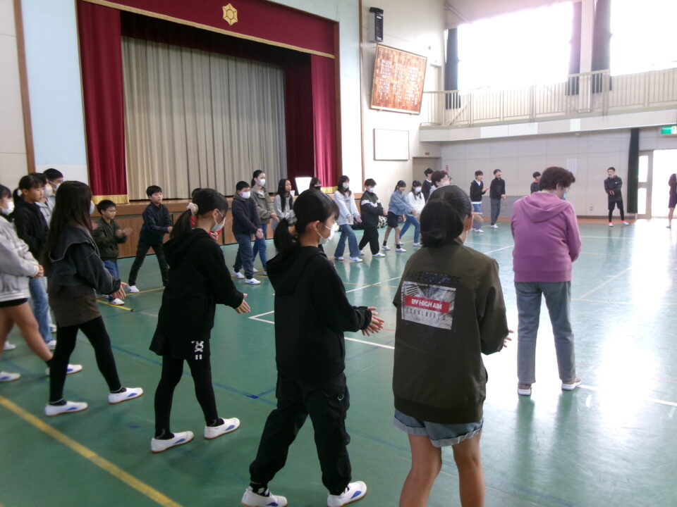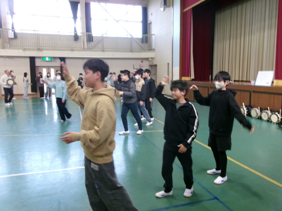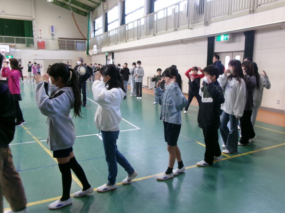 しょんがい踊りの練習をしました。6年3年