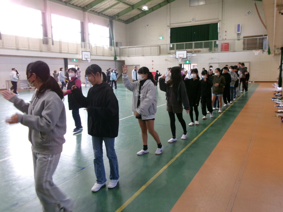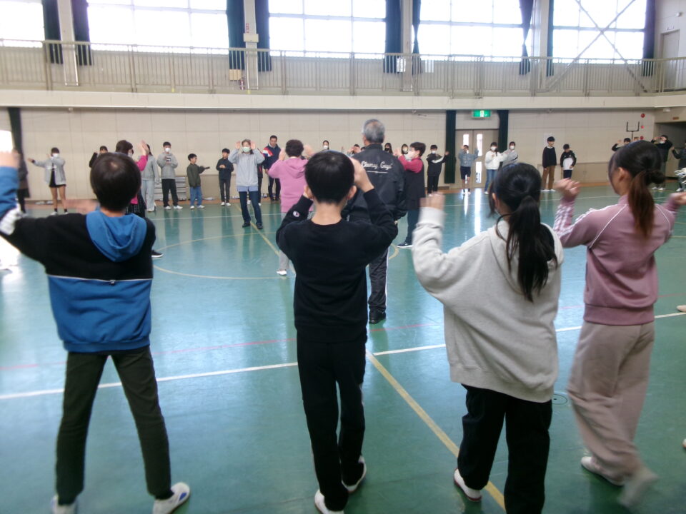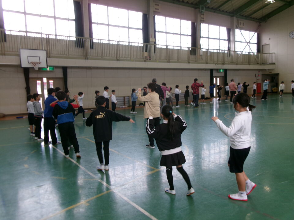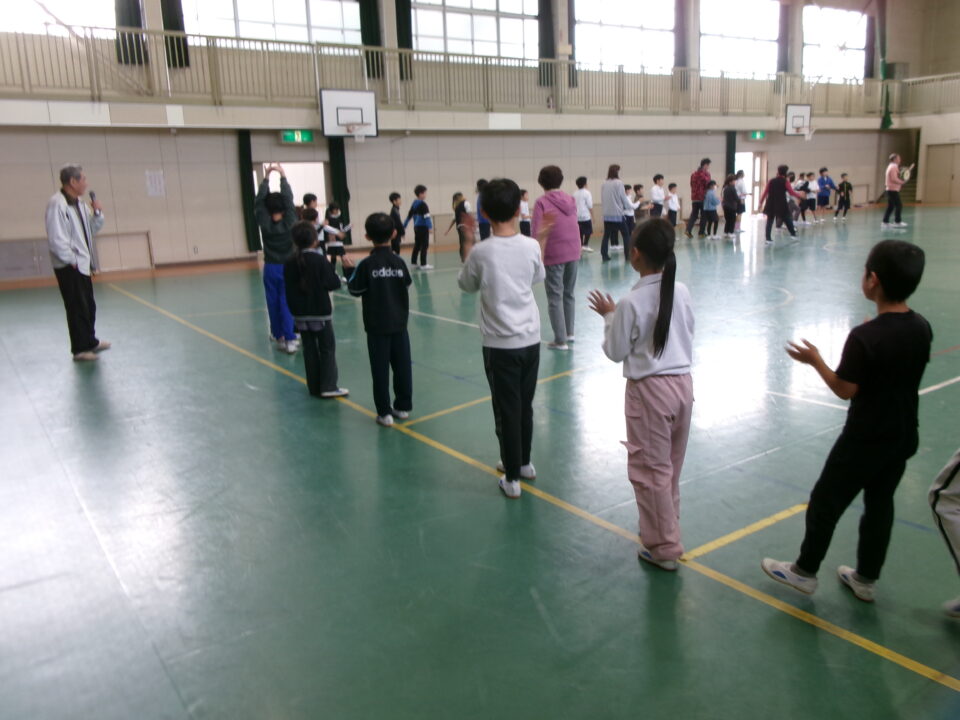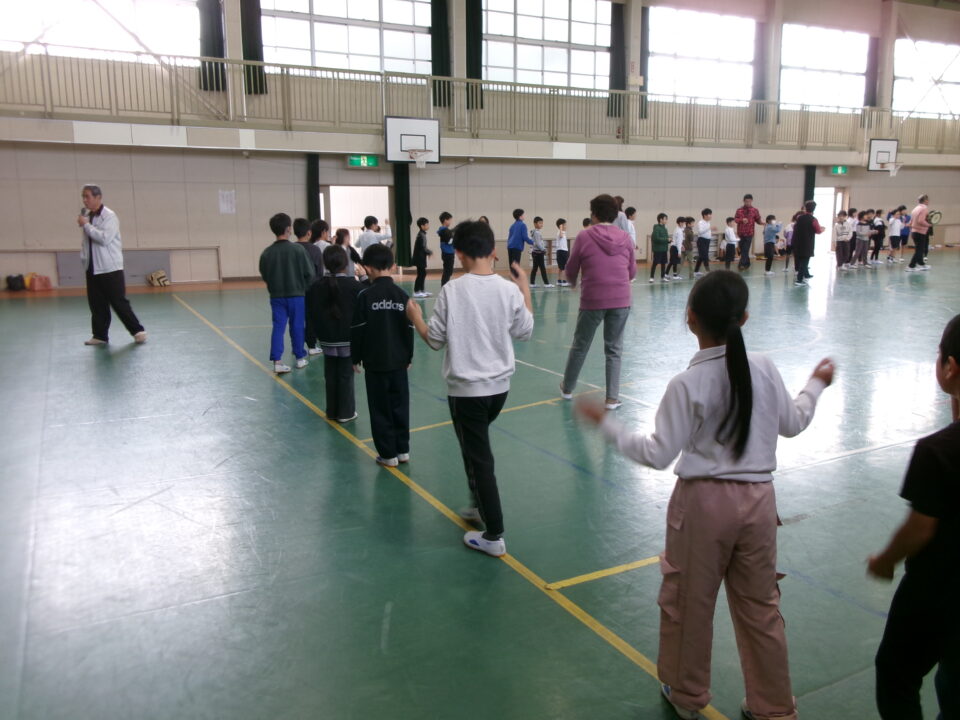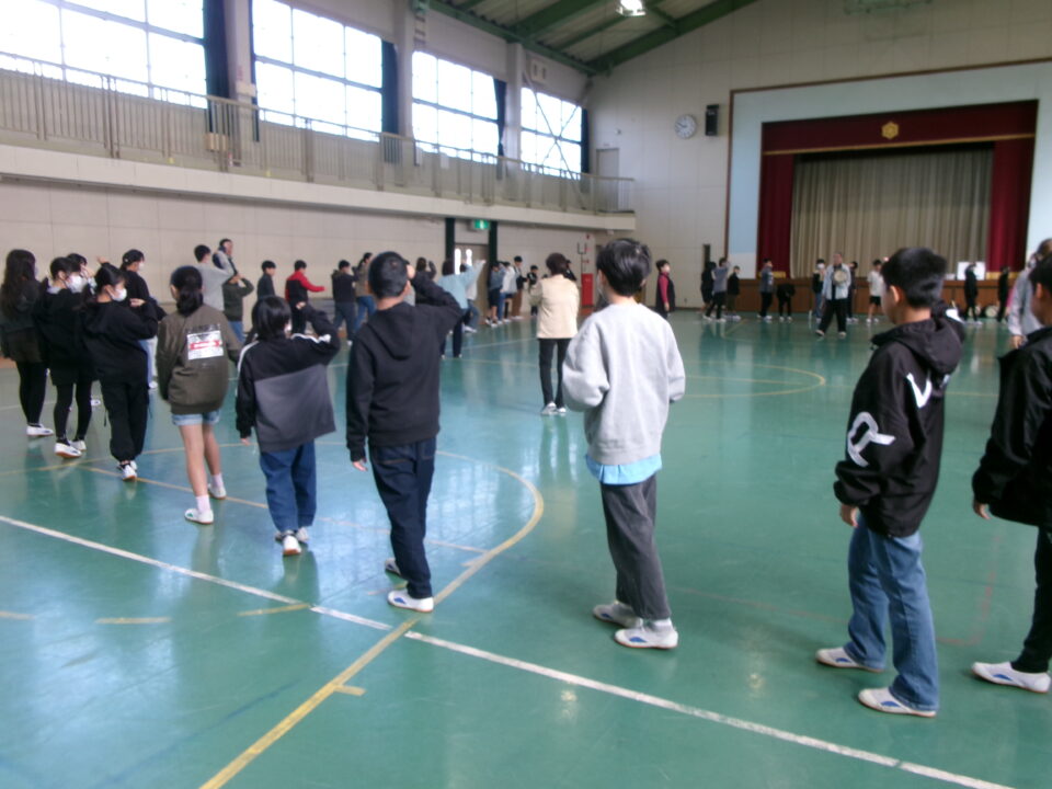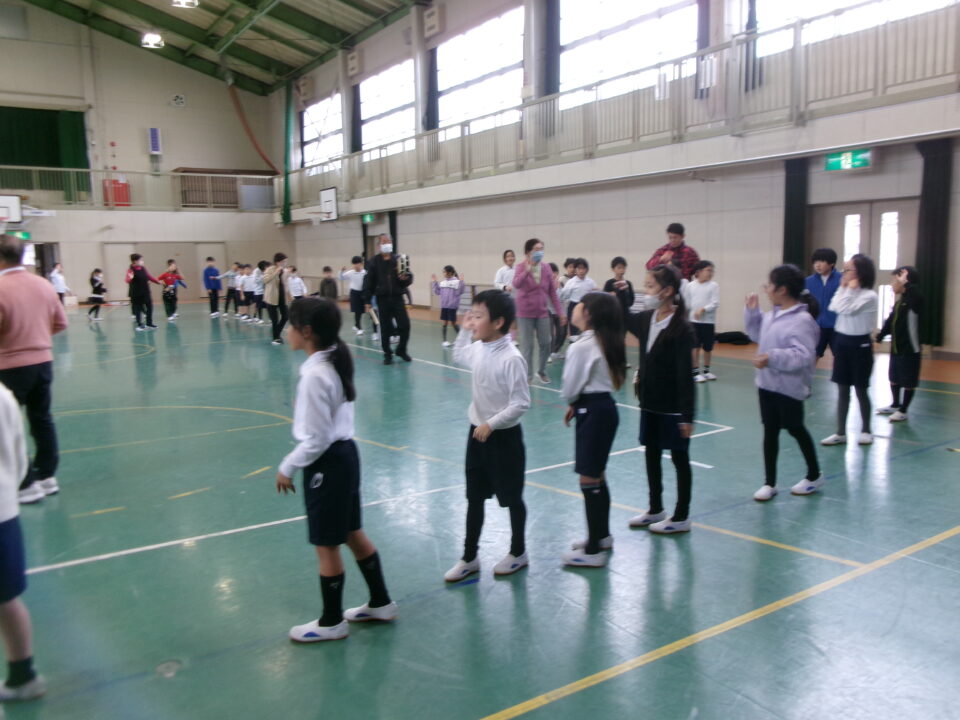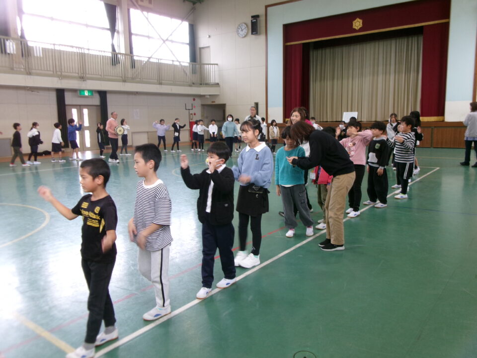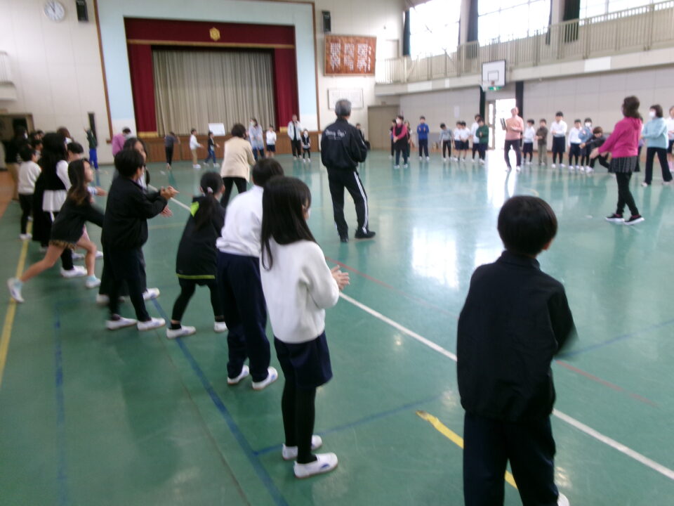しょんがい踊りの練習をしました。6年3年