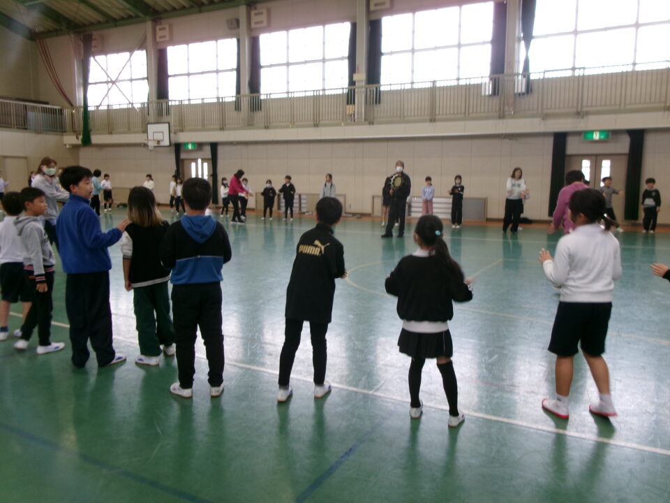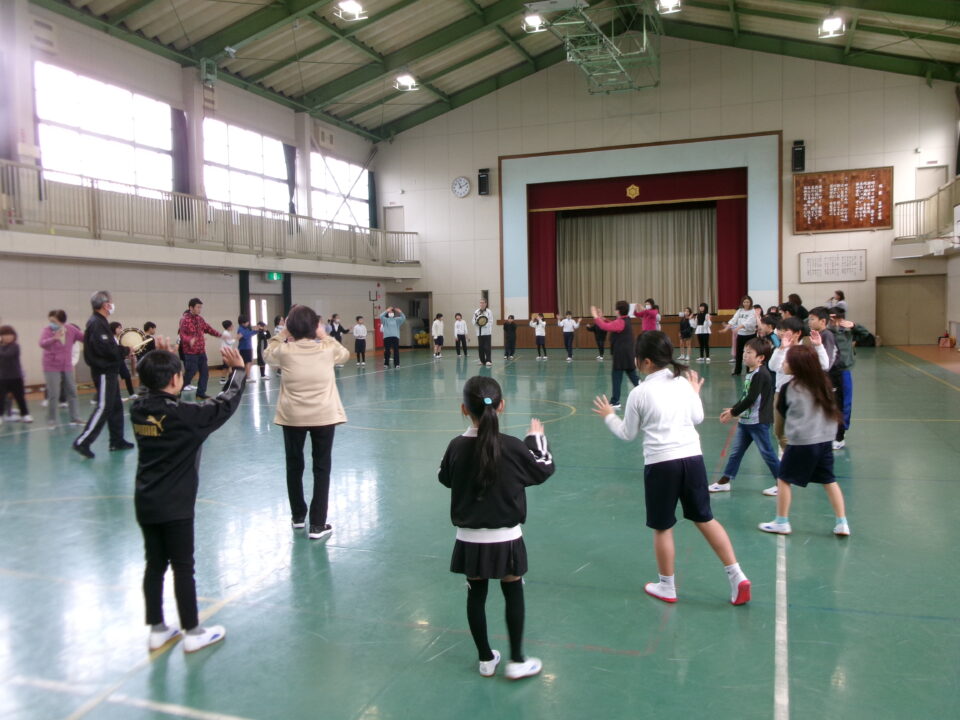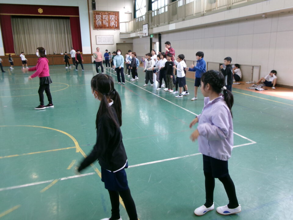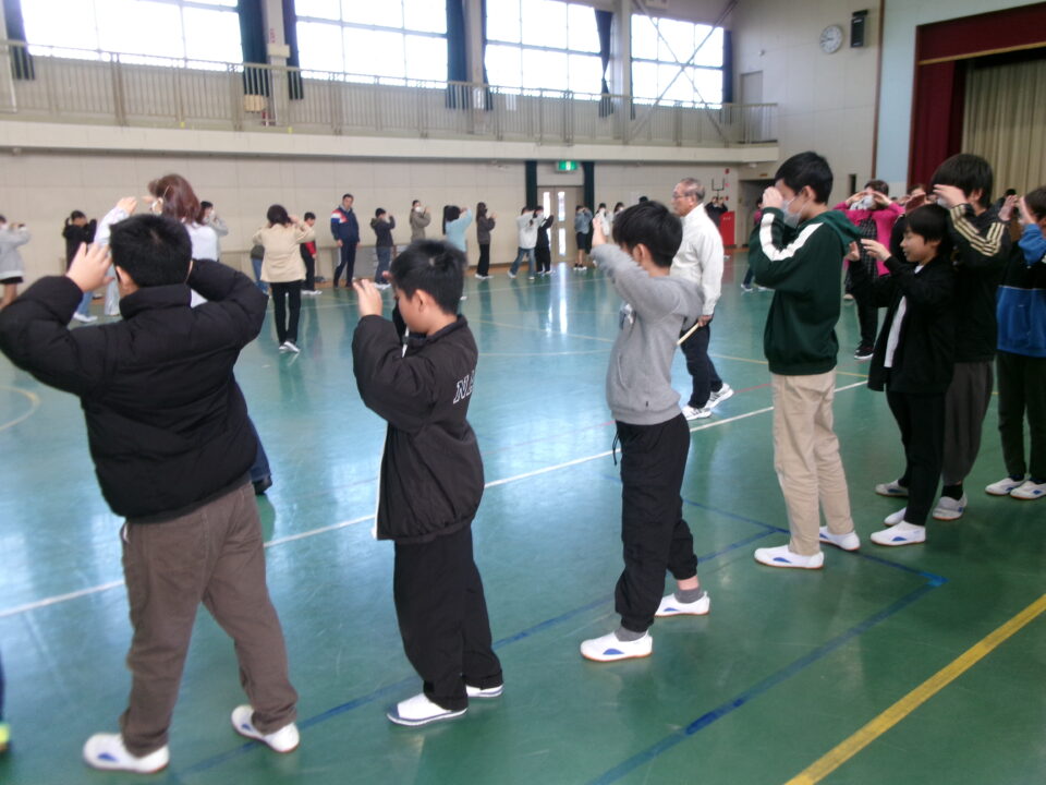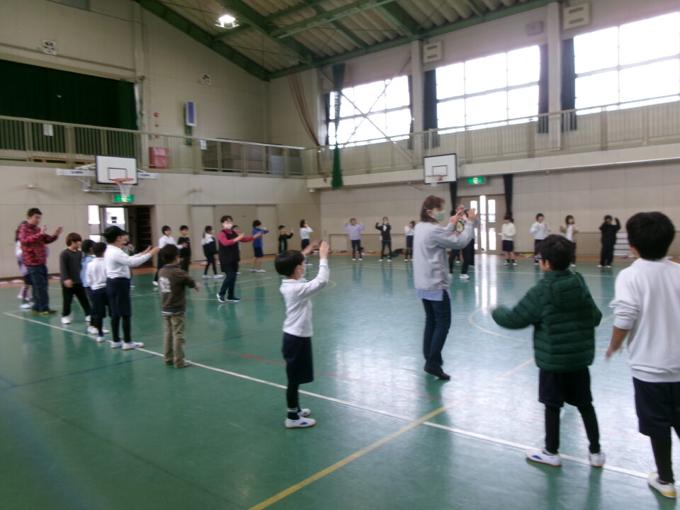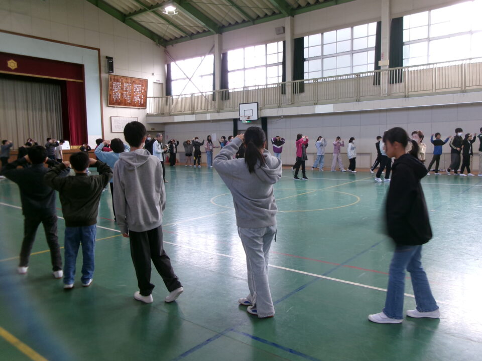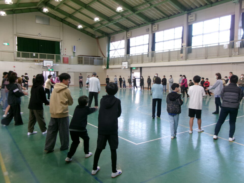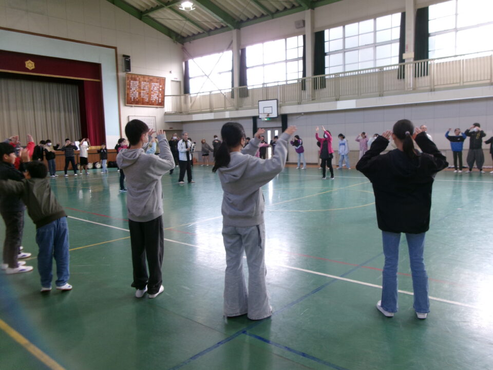 しょんがい踊りの練習をしました。6年3年