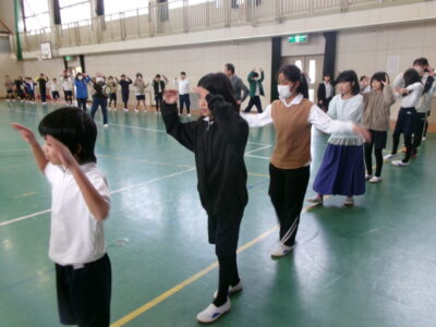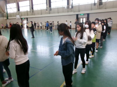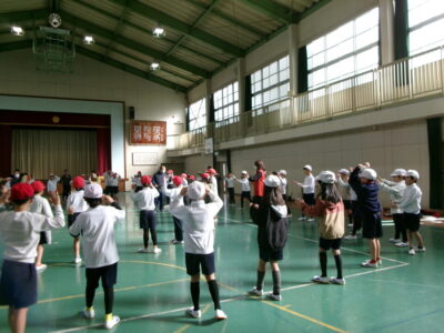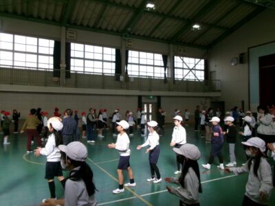 しょんがいおどりの練習れんしゅうをしました。4ねんねん