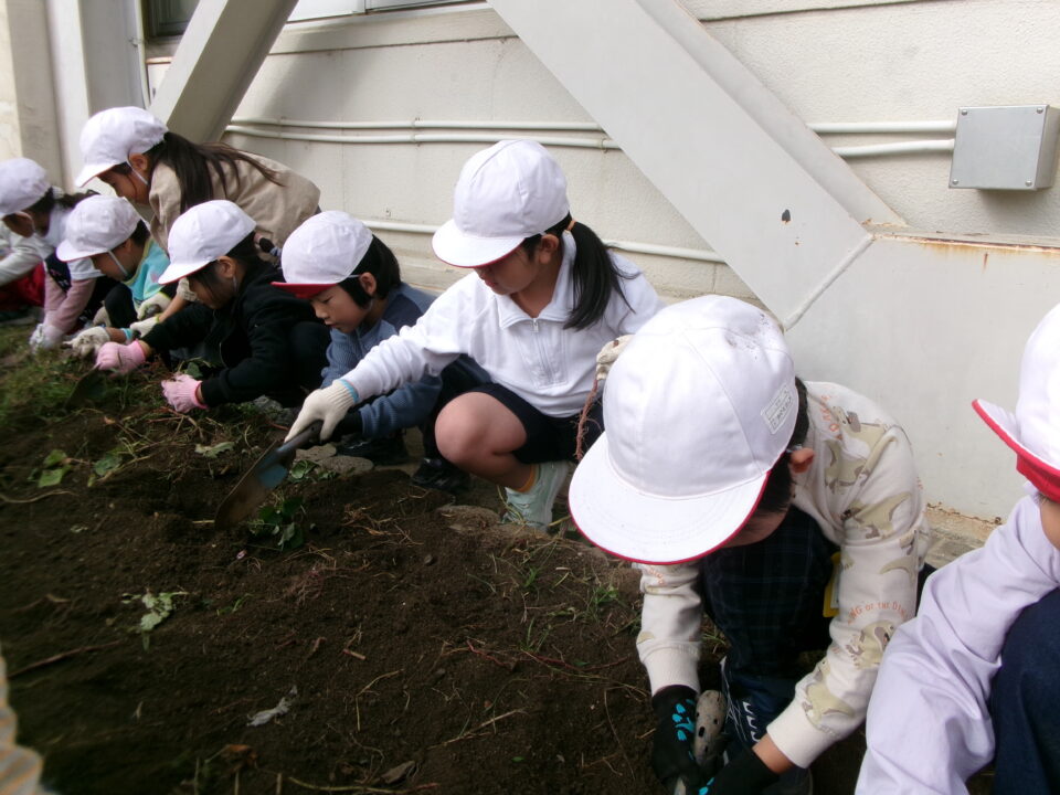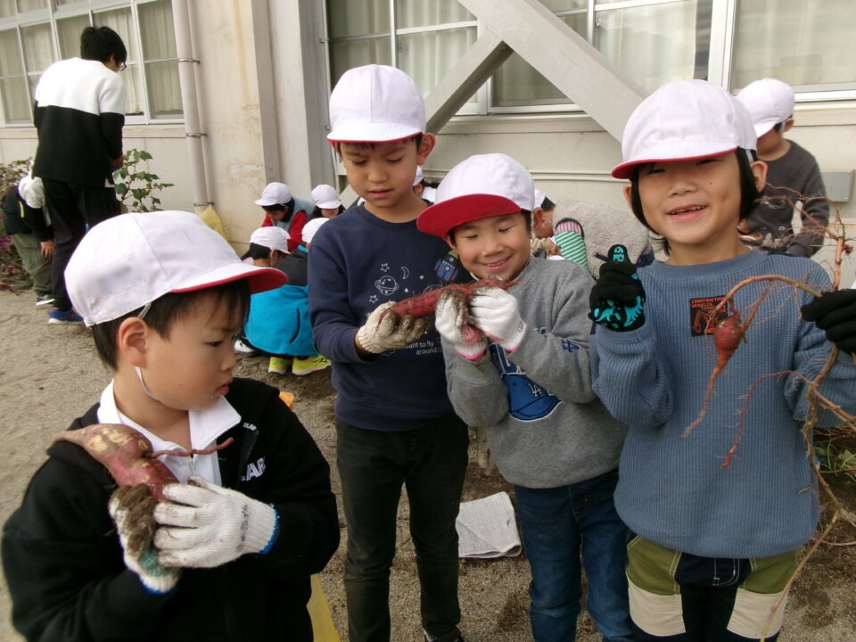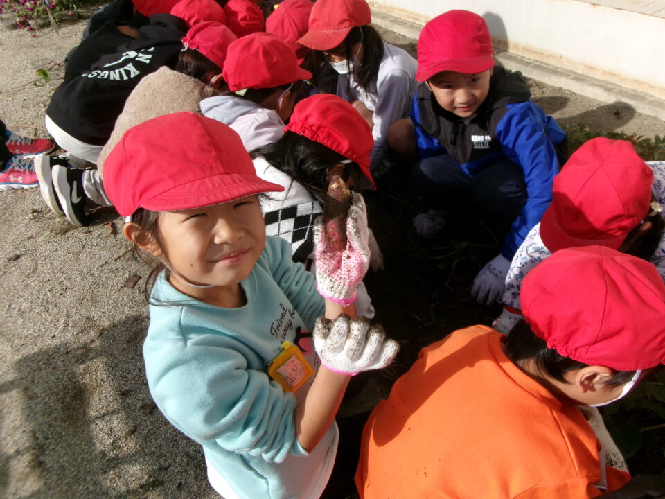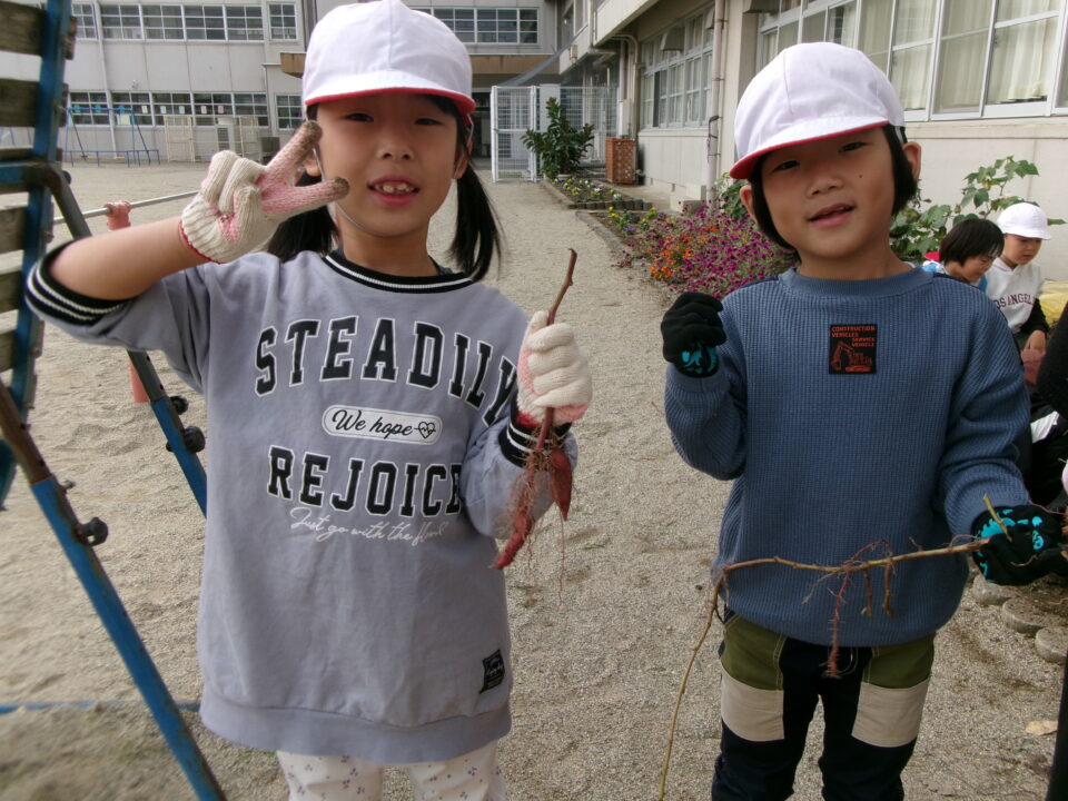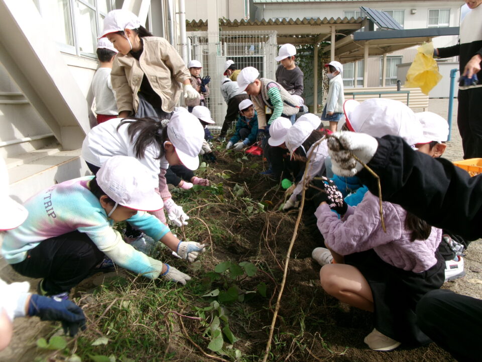 ホーム > 学校活動の様子 芋(いも)ほり🍠1年生(ねんせい) 生活科(せいかつか)で植(う)えたサツマイモが大(おお)きくなって収穫(しゅうかく)の時期(じき)を迎(むか)えました。 葉(は)っぱは、大(おお)きく、つるも長(なが)くなり、土(つち)の中(なか)は育(そだ)っているかなあ??? シェアする Twitter でシェア はてなブックマークに保存 LINE でシェア Facebook でシェア Pocket に保存 Feedly で購読 関連投稿 学校活動の様子 5-2かつおぶし削(けず)り体験(たいけん) 学校活動の様子 学習(がくしゅう)の様子(ようす) 4年生(ねんせい)・20分休(ぷんやす)み 学校活動の様子 読書(どくしょ)をしている子(こ)《ふ》が増えてきました。 学校活動の様子 学習(がくしゅう)の様子(ようす) 4年生(ねんせい) 学校活動の様子 伝達表彰(でんたつひょうしょう)をしました。 学校活動の様子 体力(たいりょく)テスト ソフトボール投(な)げday 前の投稿 しょんがい踊(おど)りの練習(れんしゅう)をしました。6年(ねん)3年(ねん) 次の投稿 しょんがい踊(おど)りの練習(れんしゅう)をしました。4年(ねん)5年(ねん)
