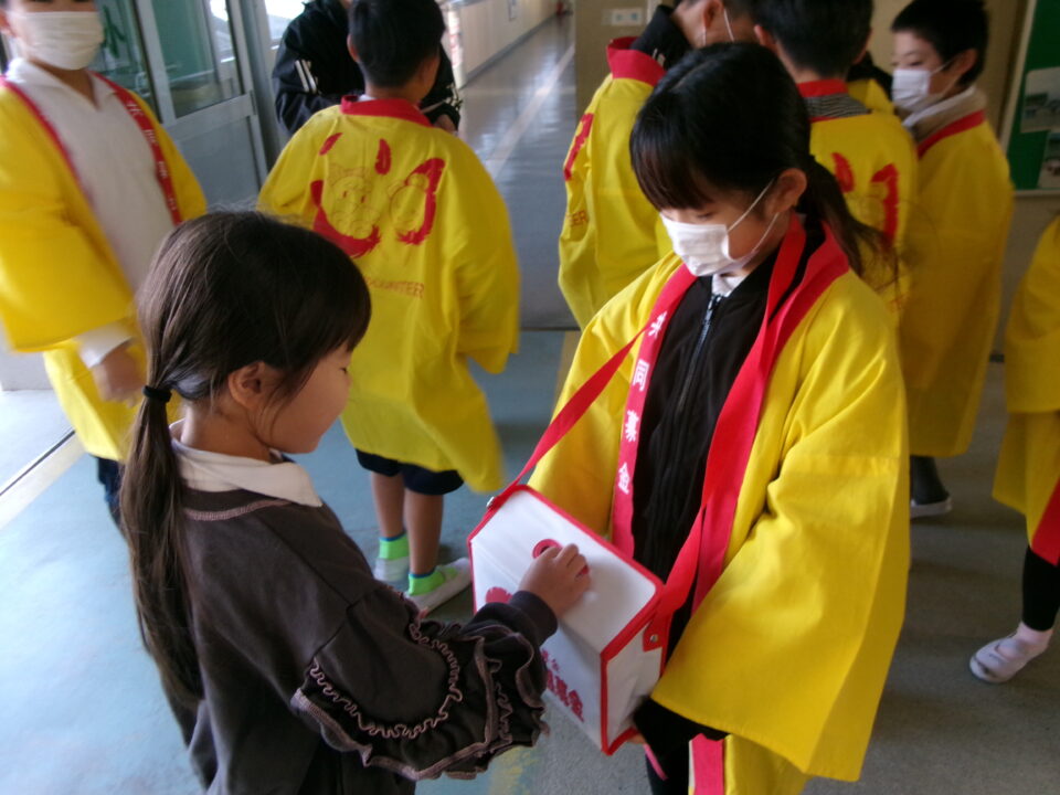 ホーム > 学校活動の様子 赤(あか)い羽根共同募金活動(はねきょうどうぼきんかつどう)をしました! 今日(きょう)は、児童会役員(じどうかいやくいん)のメンバーが中心(ちゅうしん)となって赤(あか)い羽根共同募金活動(はねきょうどうぼきんかつどう)を行(おこな)いました。 事前(じぜん)にお知(し)らせをしておき、今日(きょう)の朝(あさ)、協力(きょうりょく)しようと思(おも)った人(ひと)が募金(ぼきん)の協力(きょうりょく)をしました。 シェアする Twitter でシェア はてなブックマークに保存 LINE でシェア Facebook でシェア Pocket に保存 Feedly で購読 関連投稿 学校活動の様子 1年生お店屋さんごっこ 学校活動の様子 鎌田幼稚園・三郷保育園・1年生交流会 学校活動の様子 6-3 家庭科実習(かていかじっしゅう)ミシンでぞうきんづくり 学校活動の様子 学校再開 学校活動の様子 3年生(ねんせい)~5年生(ねんせい) 松阪市標準学力調査(まつさかしひょうじゅんがくりょくちょうさ)を受(う)けました。 学校活動の様子 4年生社会福祉体験 前の投稿 人権(じんけん)フォーラム子(こ)ども実行委員会(じっこういいんかい) 次の投稿 しょんがい踊(おど)りの練習(れんしゅう)をしました。1年(ねん)2年(ねん)