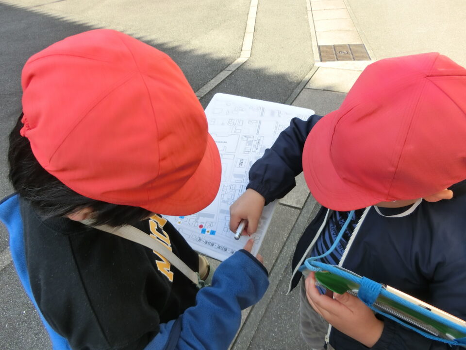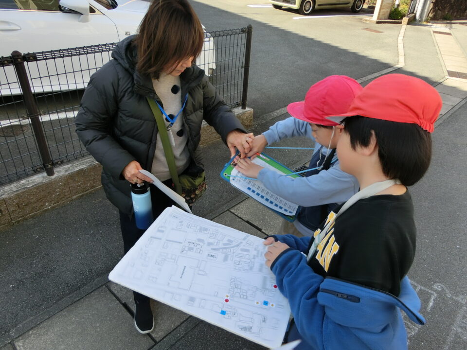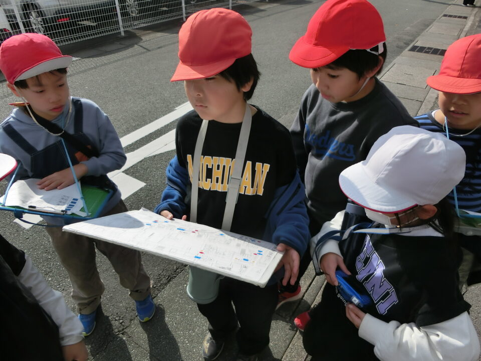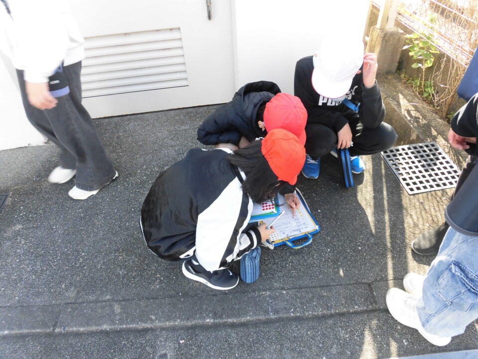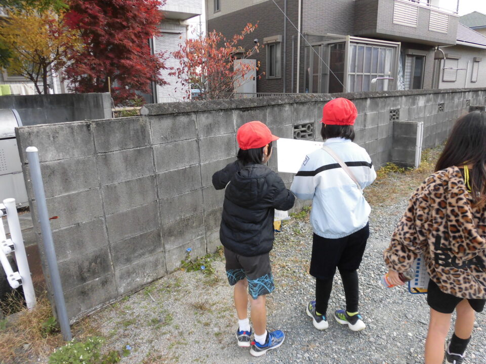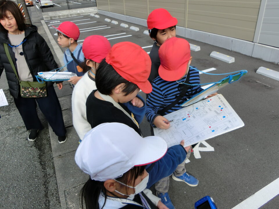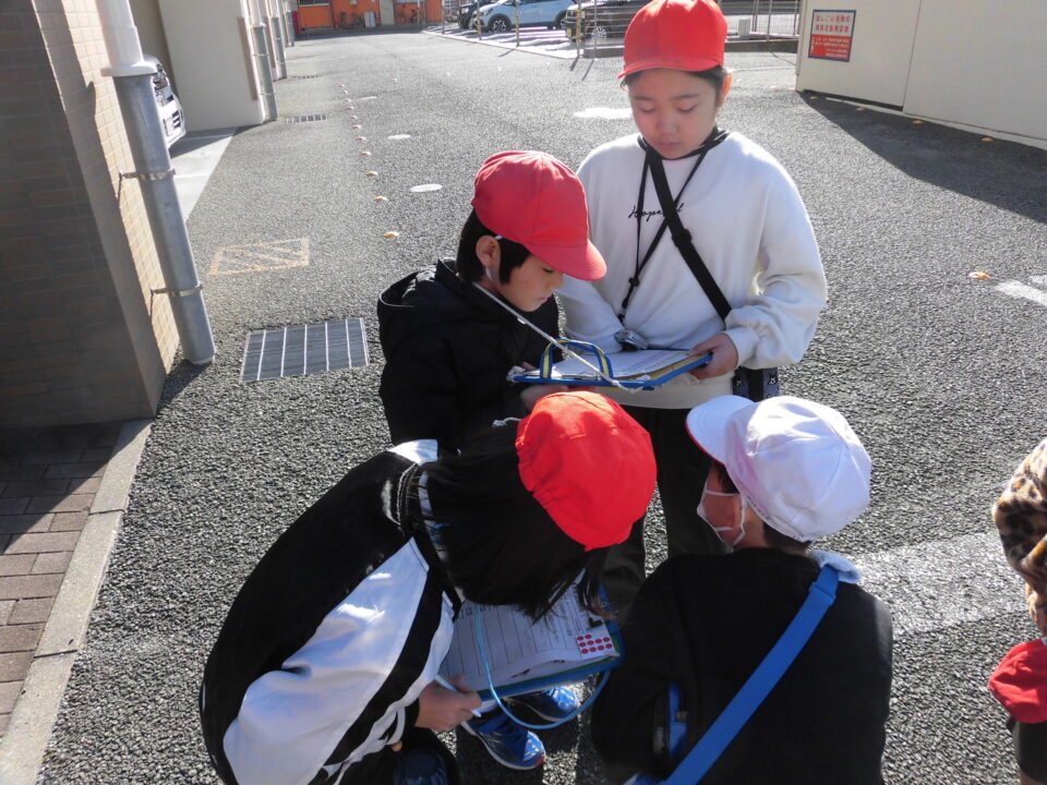今日は、3年生が「交通安全・防犯・防災」の視点で自分の校区を改めて見直す機会としてタウンウォッチングをしました。松阪市地域安全対策課の方に来ていただき、どのようにまとめるかを教えてもらうことで、先の見通しを持ち、写真を撮ったり、地図に記録したりする方法を学びました。