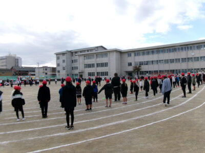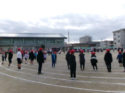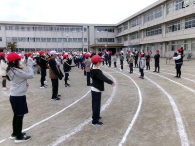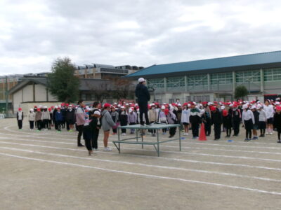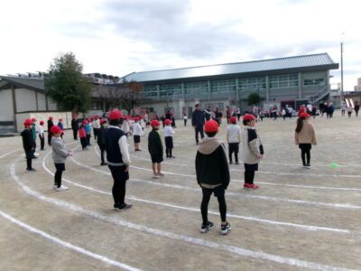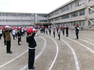 21日(金)に行われるミニ運動会の開会式、準備体操、閉会式の練習としょんがい踊りの位置確認をしました。