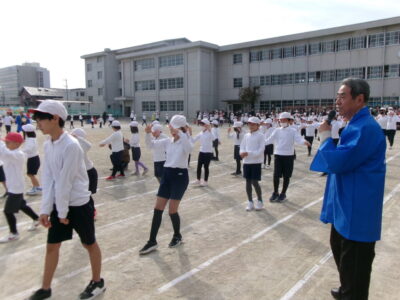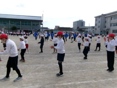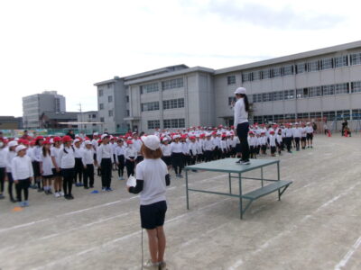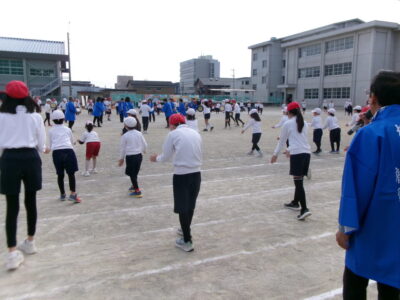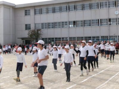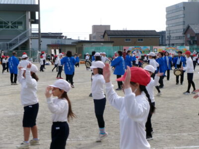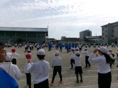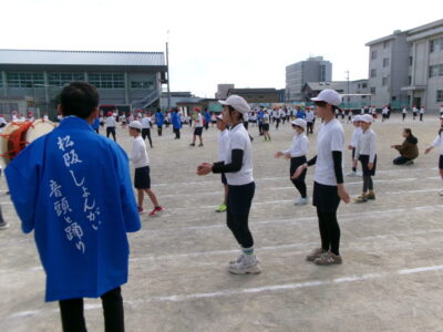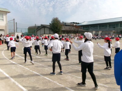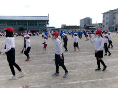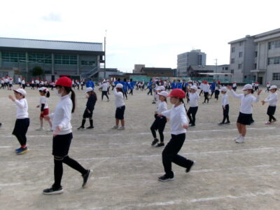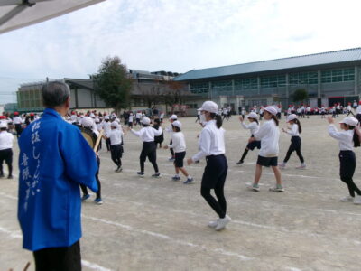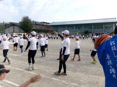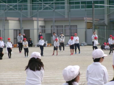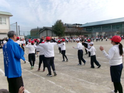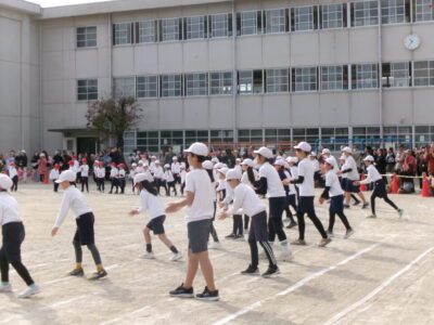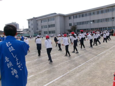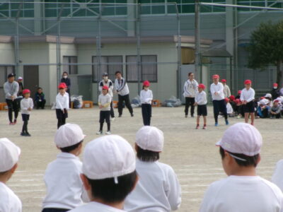 ミニ運動会では、徒競走としょんがい踊りを踊りました。