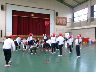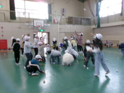インフルエンザが流行していますので、体育館は喚起を行い、みんなでマスクをして感染対策をし、楽しむことにしました。