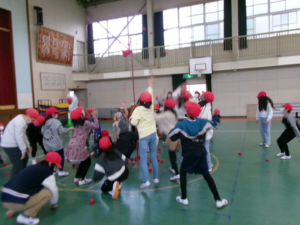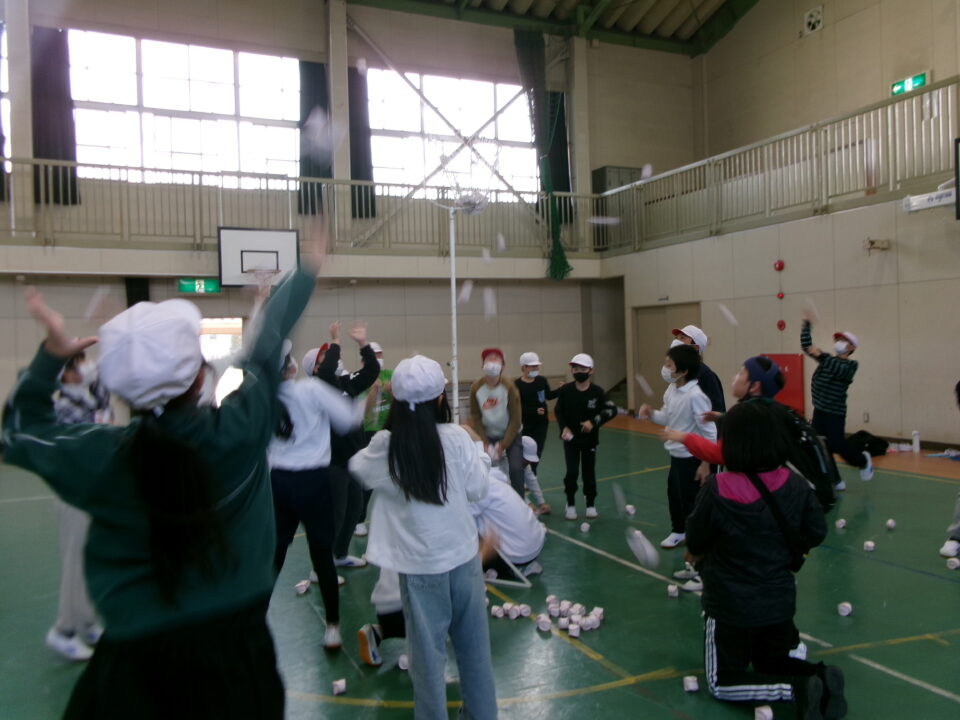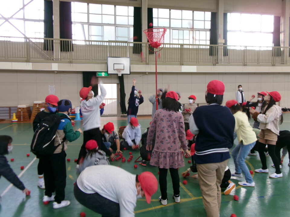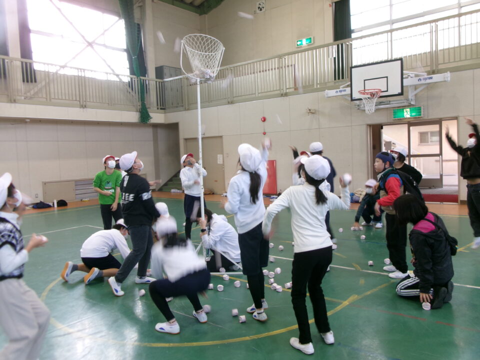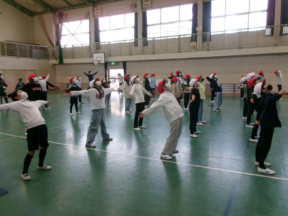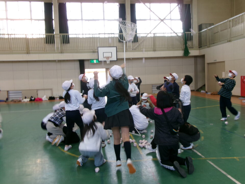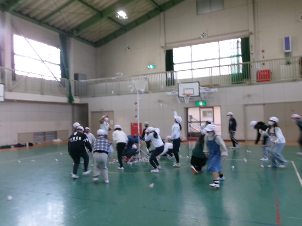 インフルエンザが流行していますので、体育館は喚起を行い、みんなでマスクをして感染対策をし、楽しむことにしました。