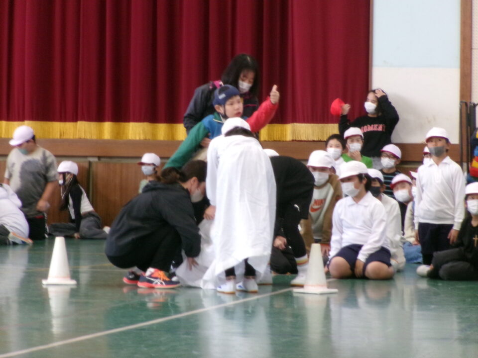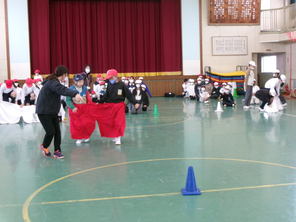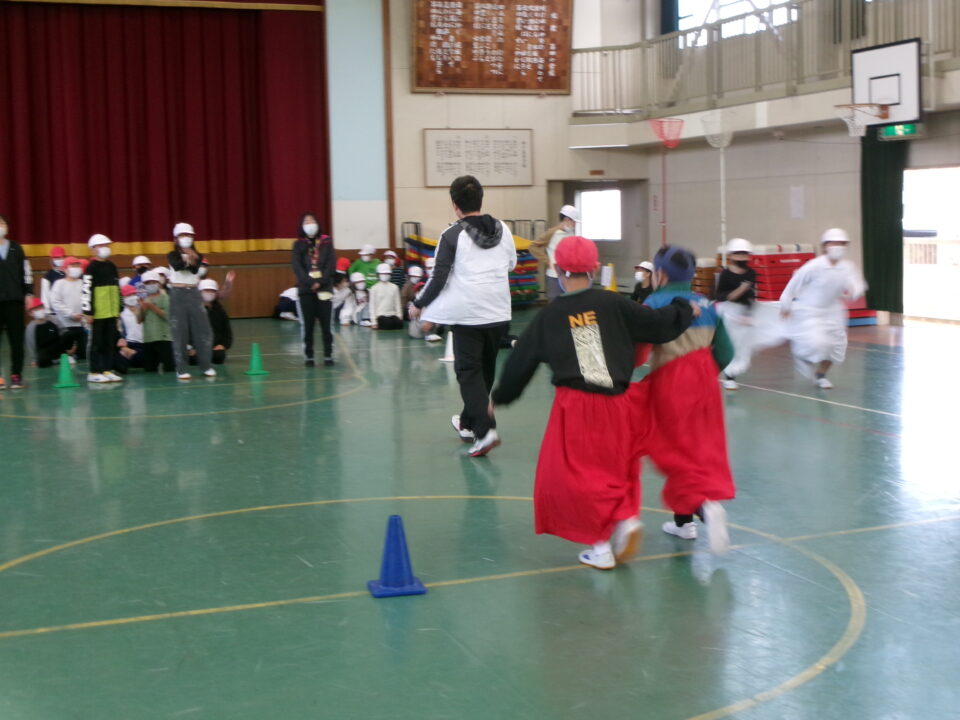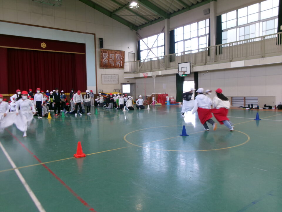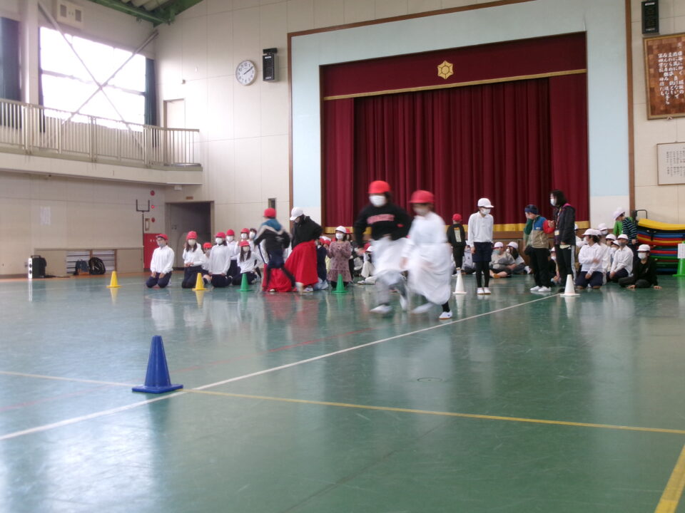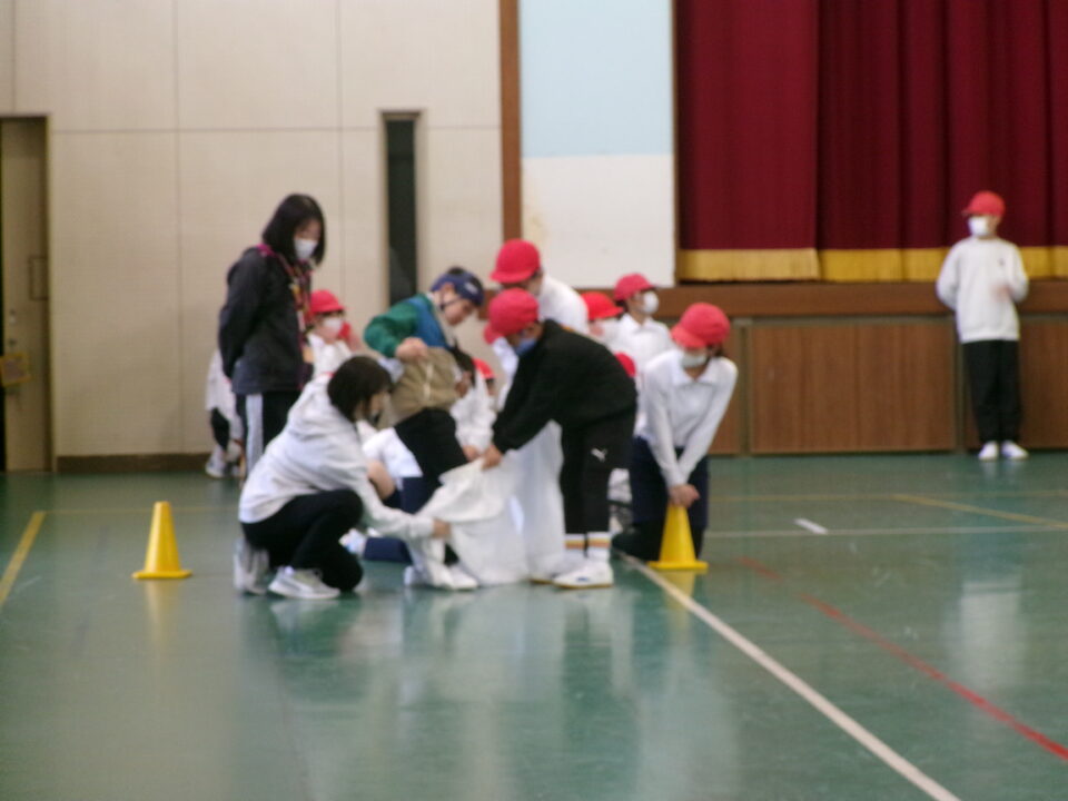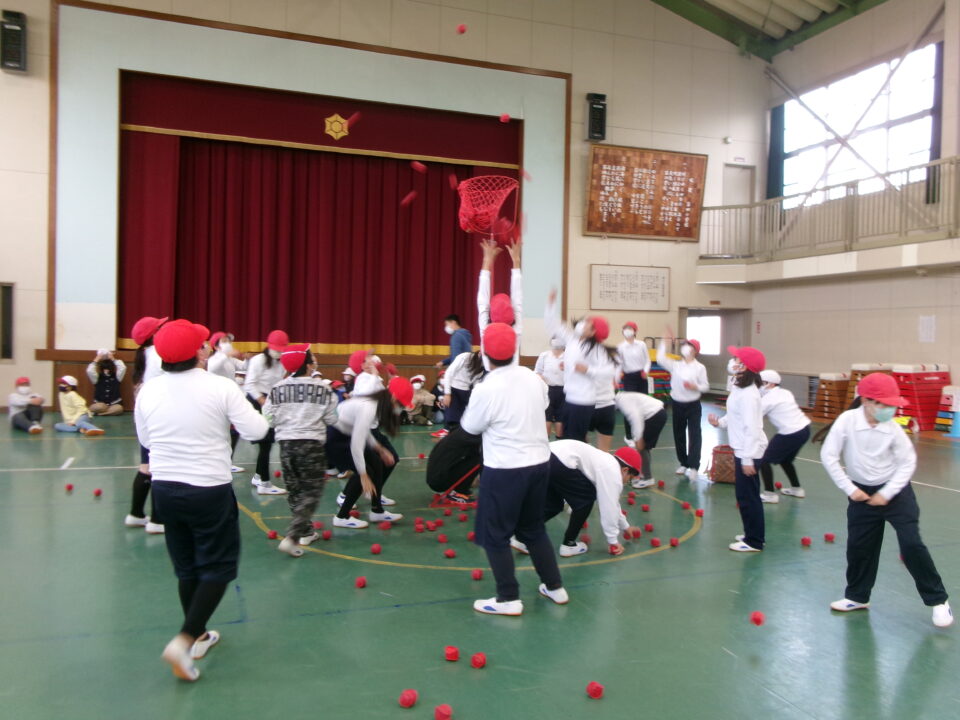 インフルエンザが流行していますので、体育館は喚起を行い、みんなでマスクをして感染対策をし、楽しむことにしました。