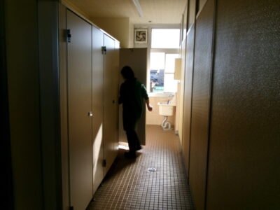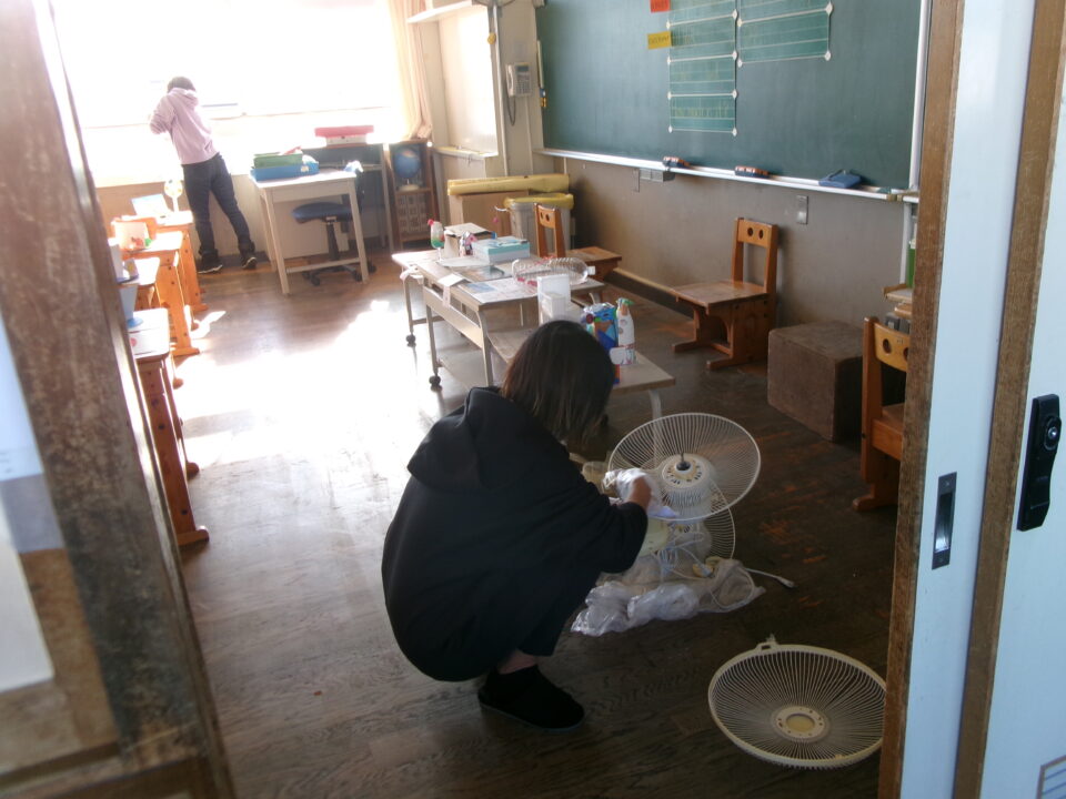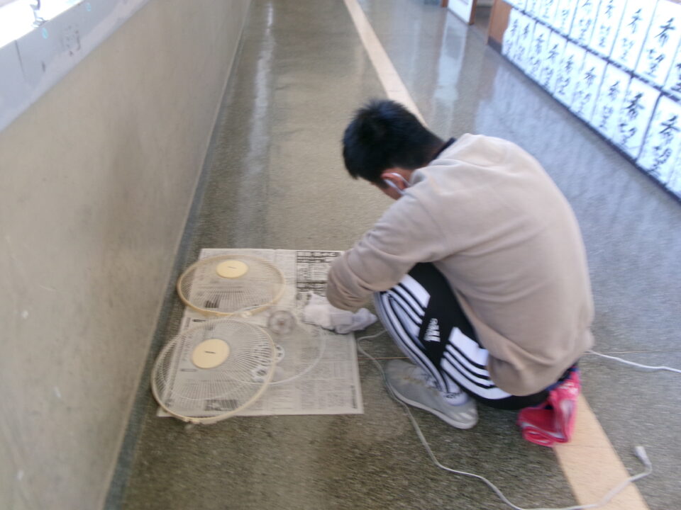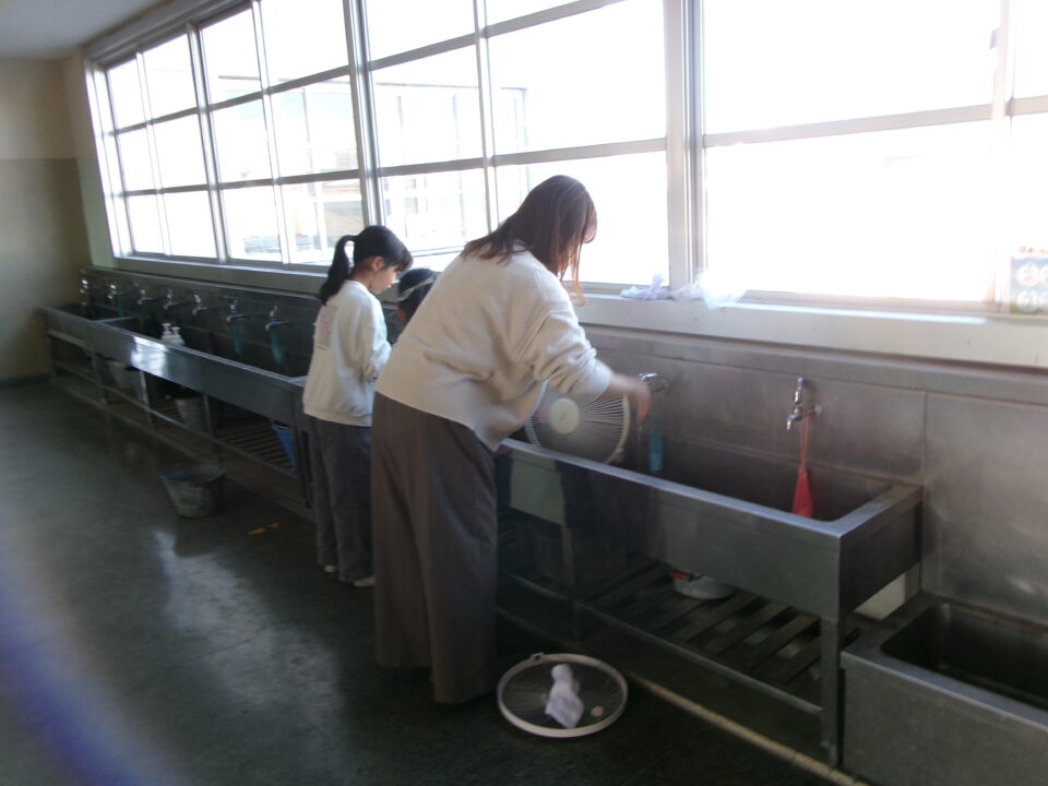 今日は、PTA本部役員執行部、厚生部のみなさんと本校職員で日頃、子どもたちの手の届かないところ、トイレ、教室の扇風機そうじなどを1時間強の時間で丁寧にしていただきました。