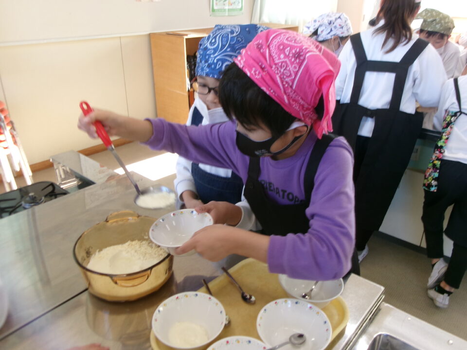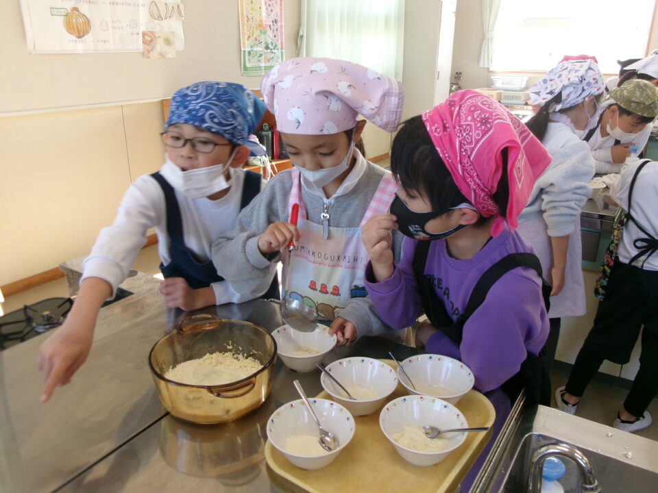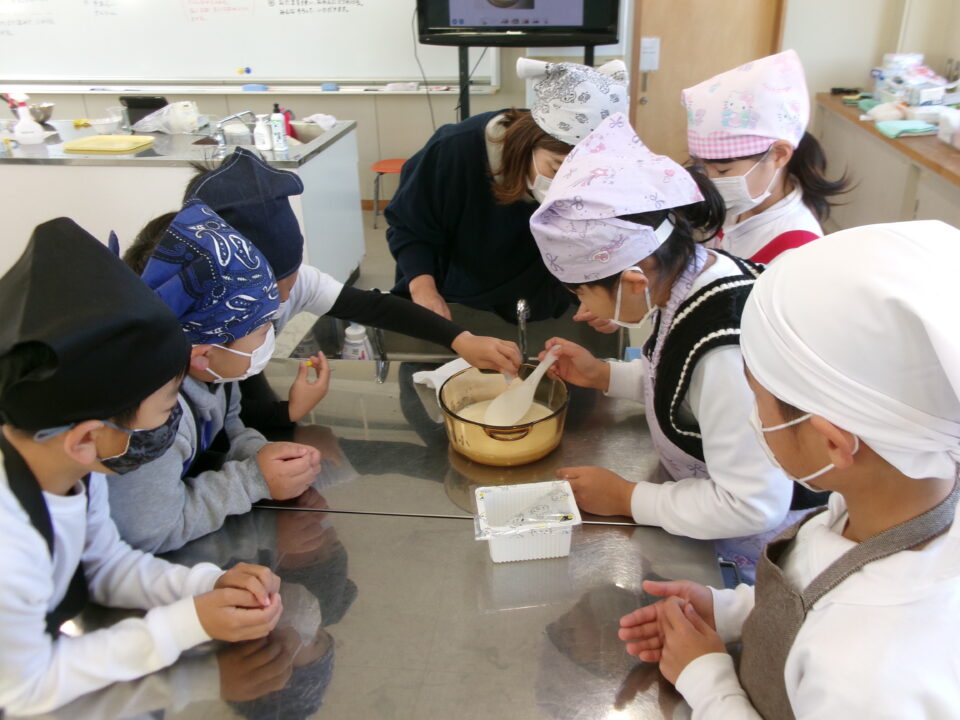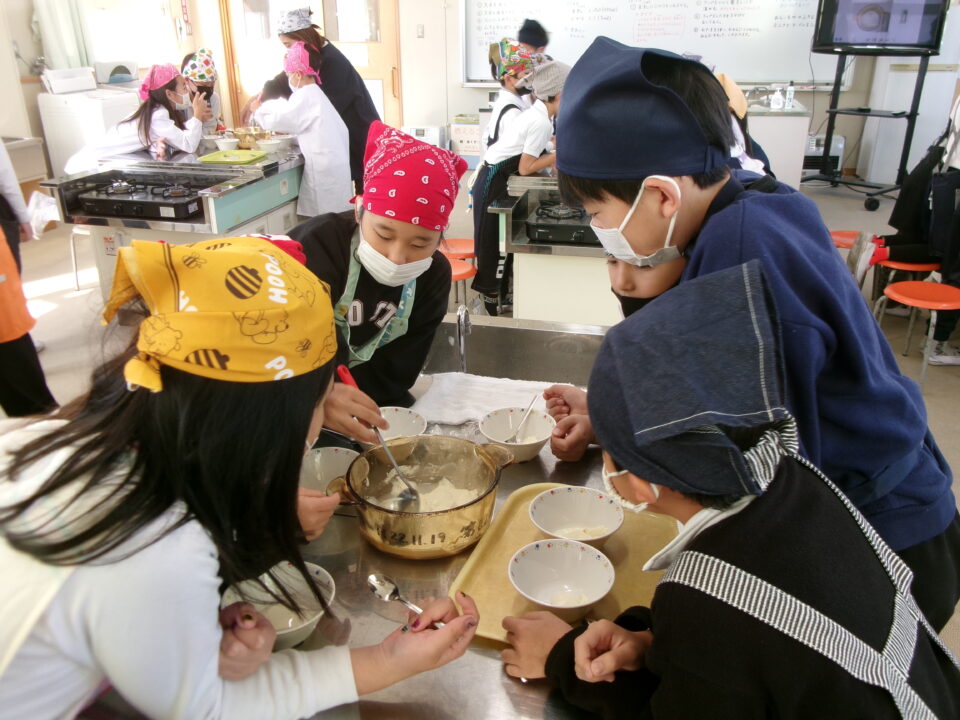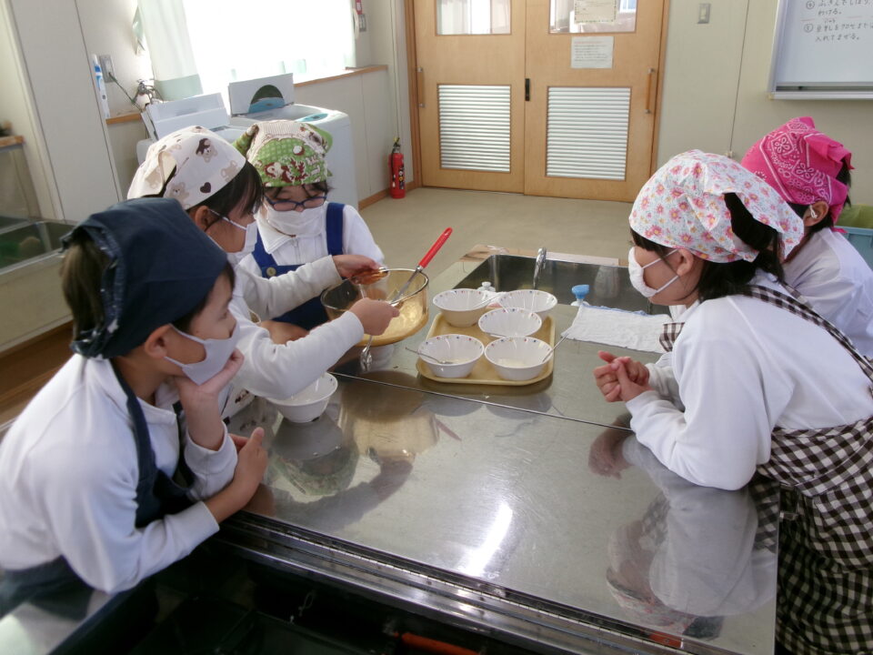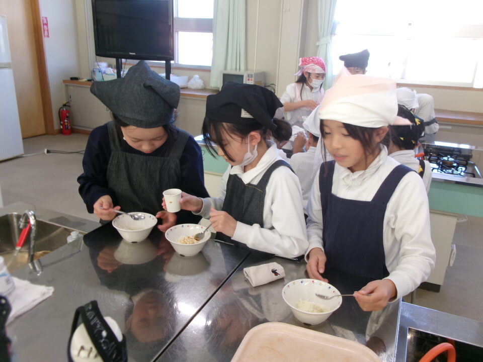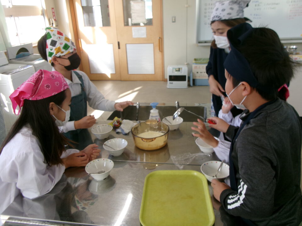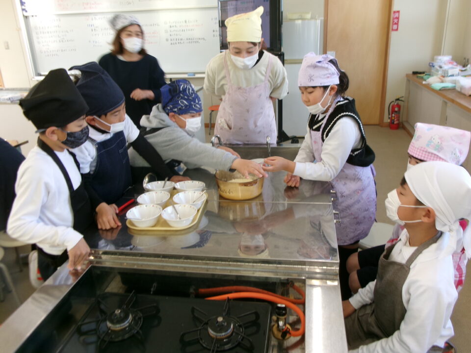 年生ねんせいどもたちは、豆乳とうにゅうからつく実習じっしゅうおこないました。豆乳とうにゅうににがりをれて電子でんしレンジであたためてつくります。これならおうちでもできそうですね。