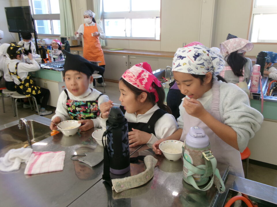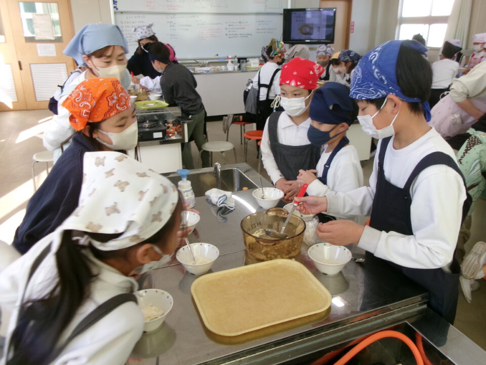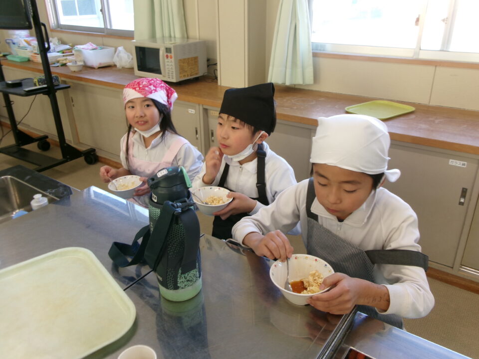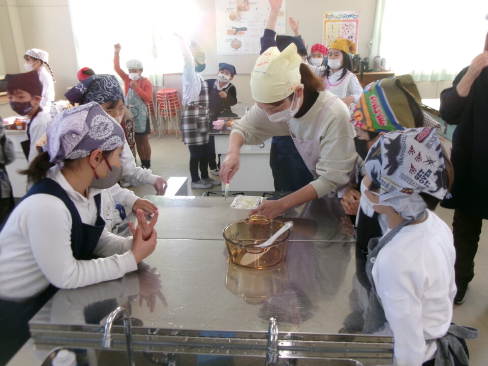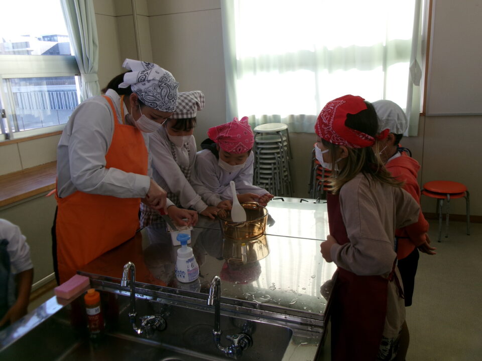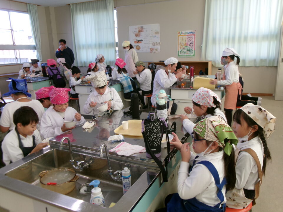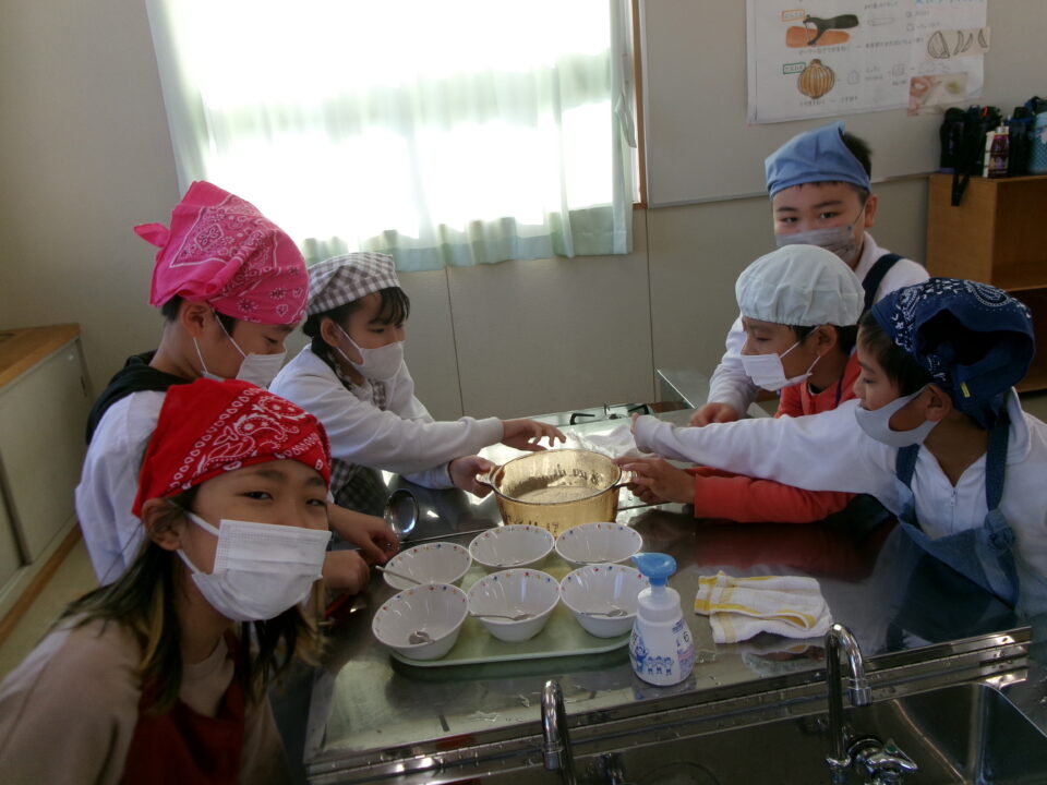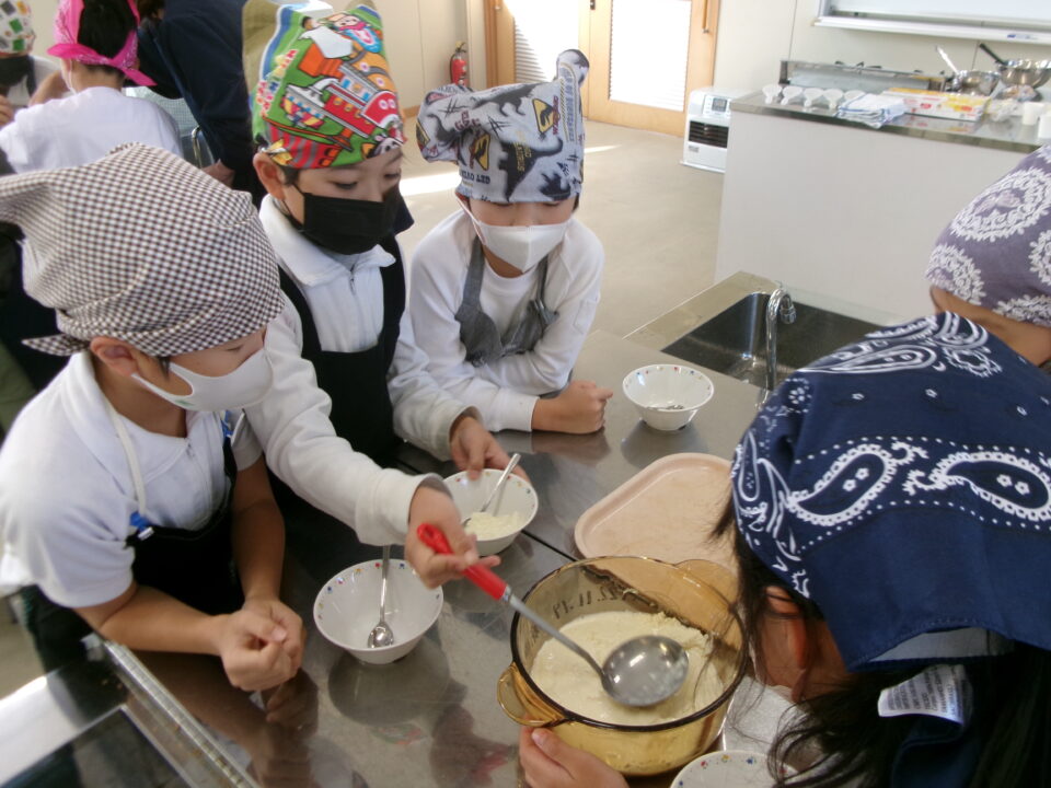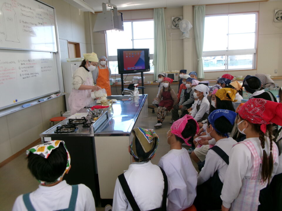 年生ねんせいどもたちは、豆乳とうにゅうからつく実習じっしゅうおこないました。豆乳とうにゅうににがりをれて電子でんしレンジであたためてつくります。これならおうちでもできそうですね。