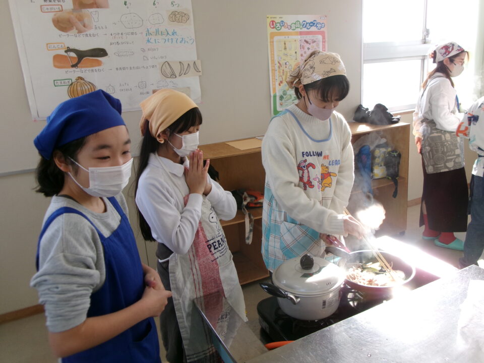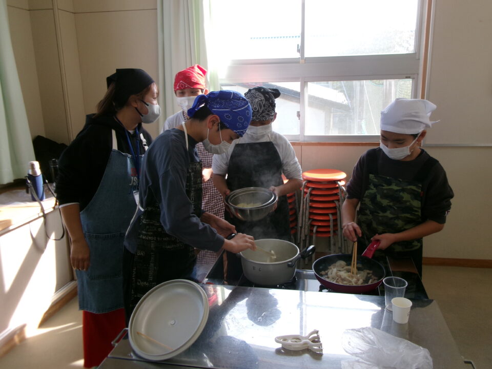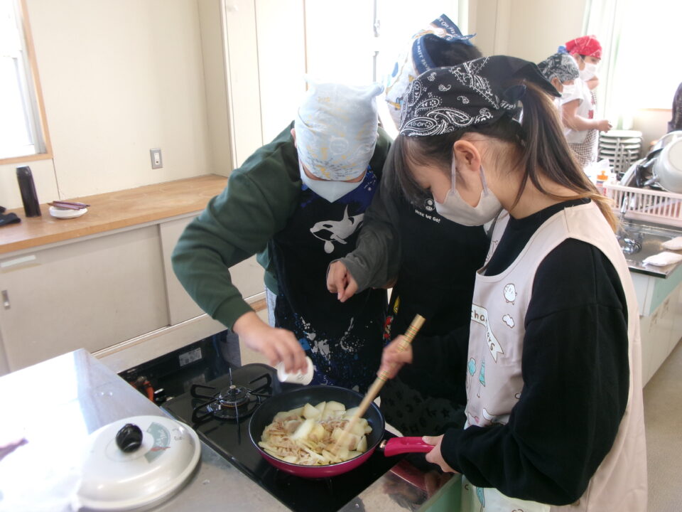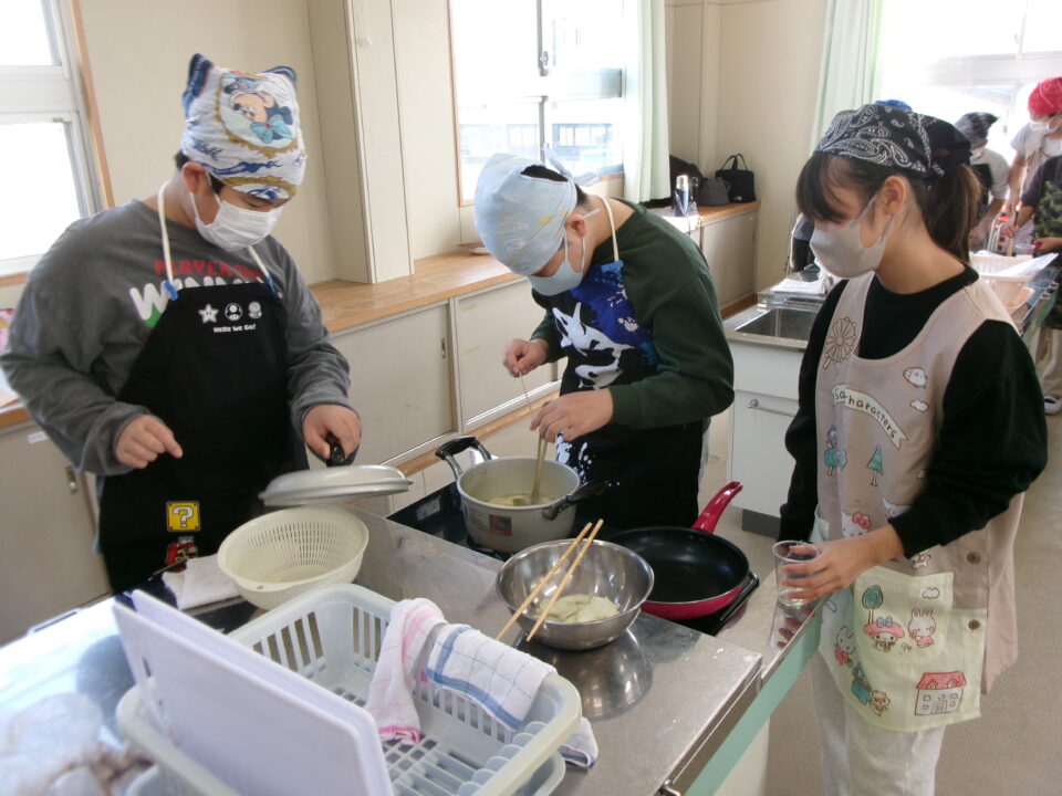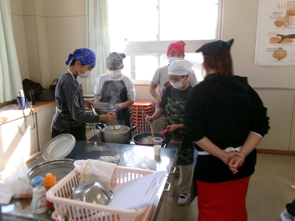 CSおうえん隊の方には、今日もおうえんに来ていただき、子どもたちが調理をする際に包丁を使ったり、熱湯や火を扱ったりするときに助けていただいたり、どうすればよいかわからないときに教えていただいたりしていただいています。本当にありがとうございます。子どもたちは、安心して活動することができています。