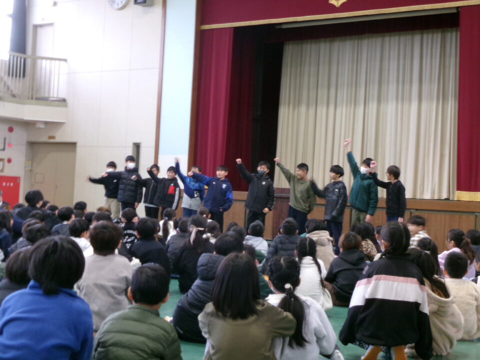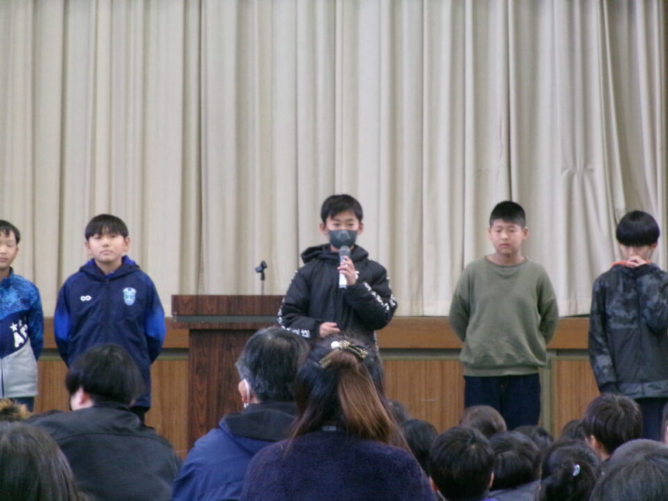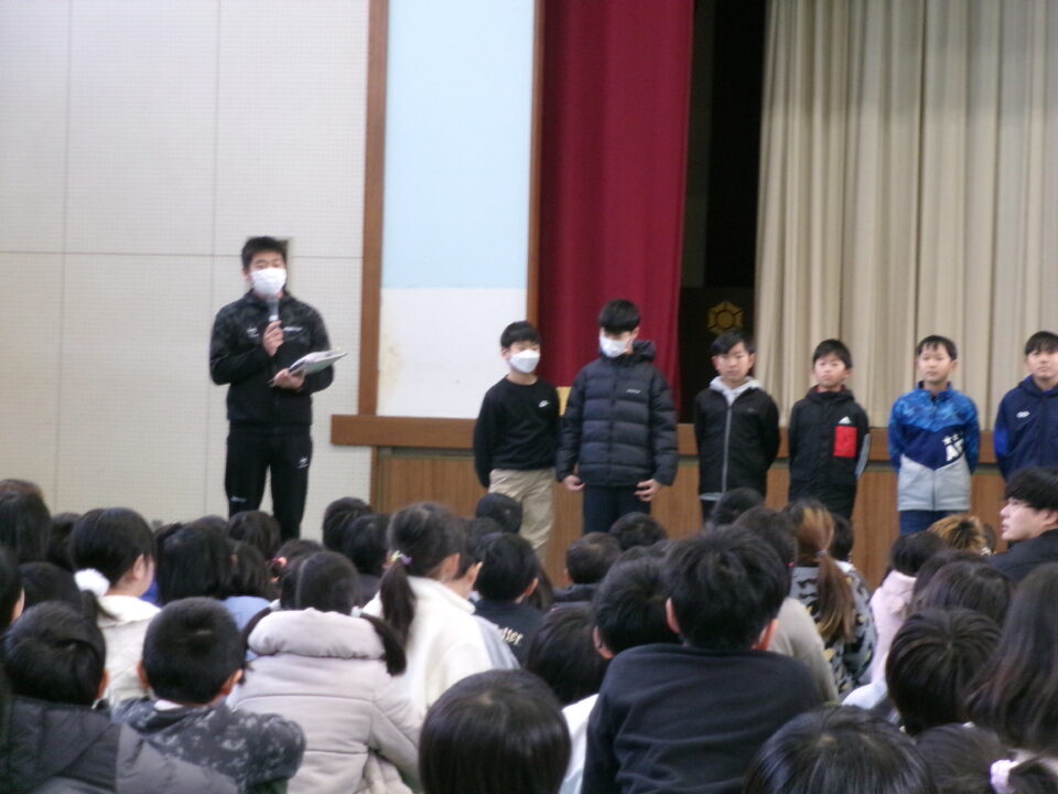 今日は、サッカー大会壮行会を行いました。サッカー部のメンバー代表が意気込みを語ってくれました。