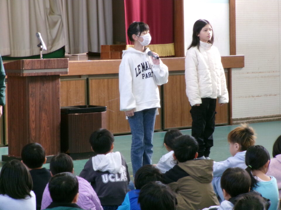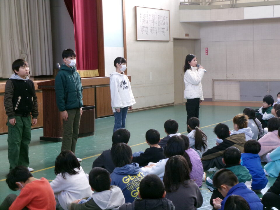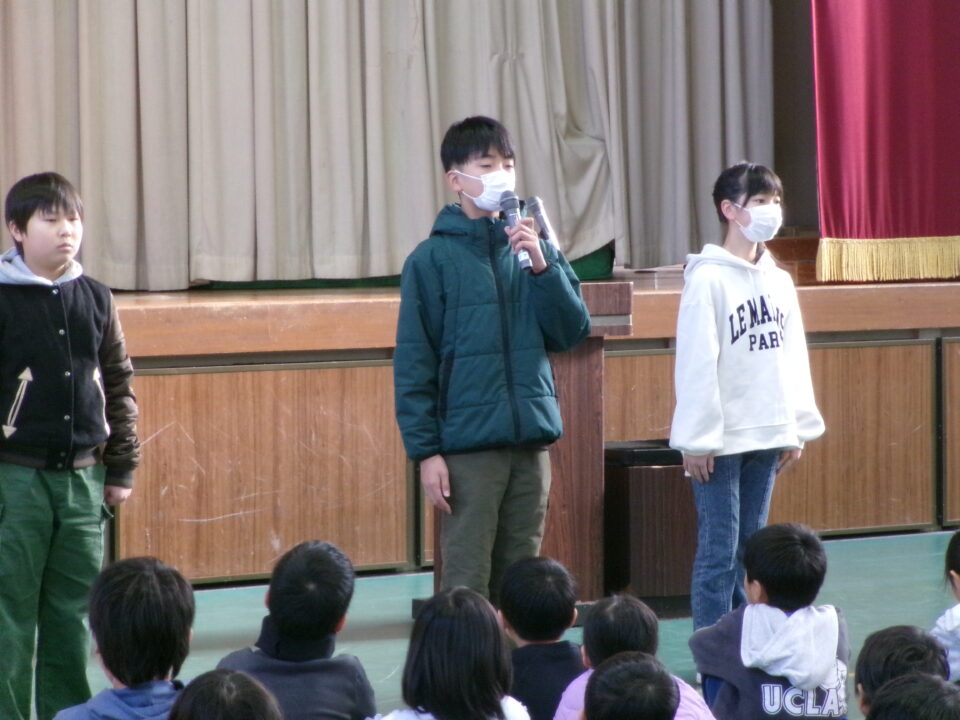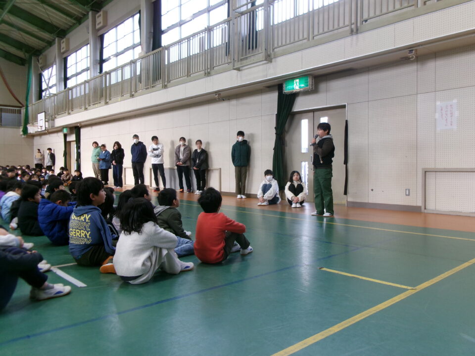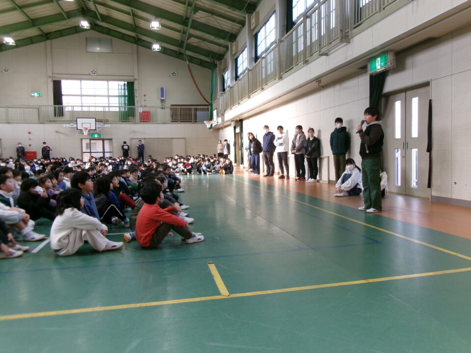 今日は集会を開いて、これまでのふり返りとこれからの目標を6年生が代表して発表しました。