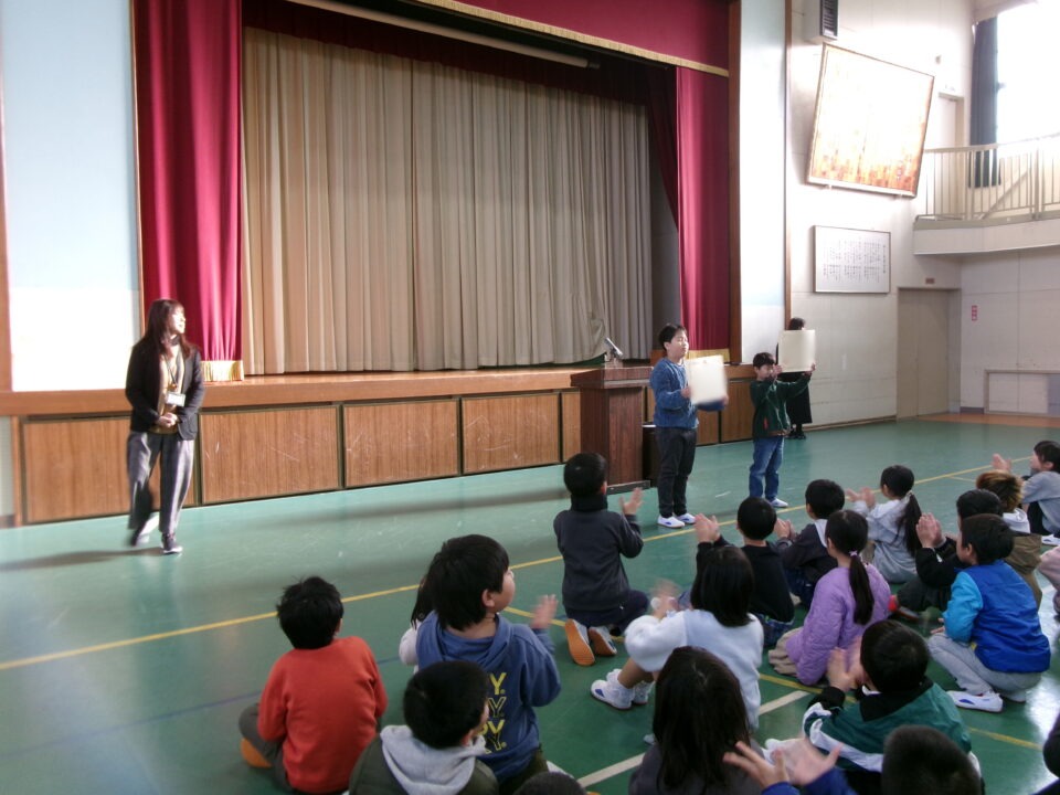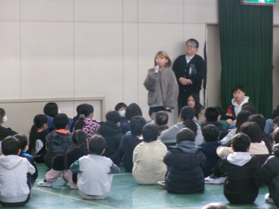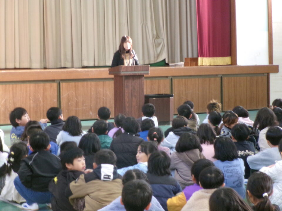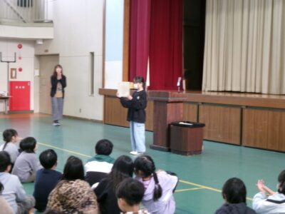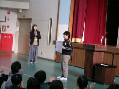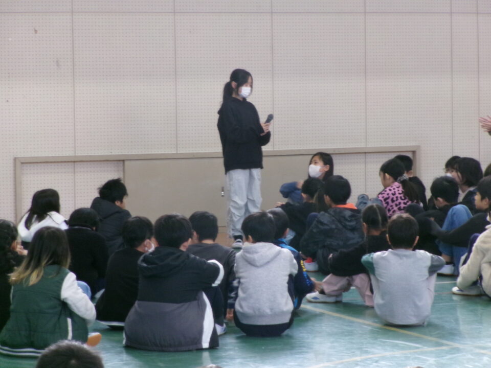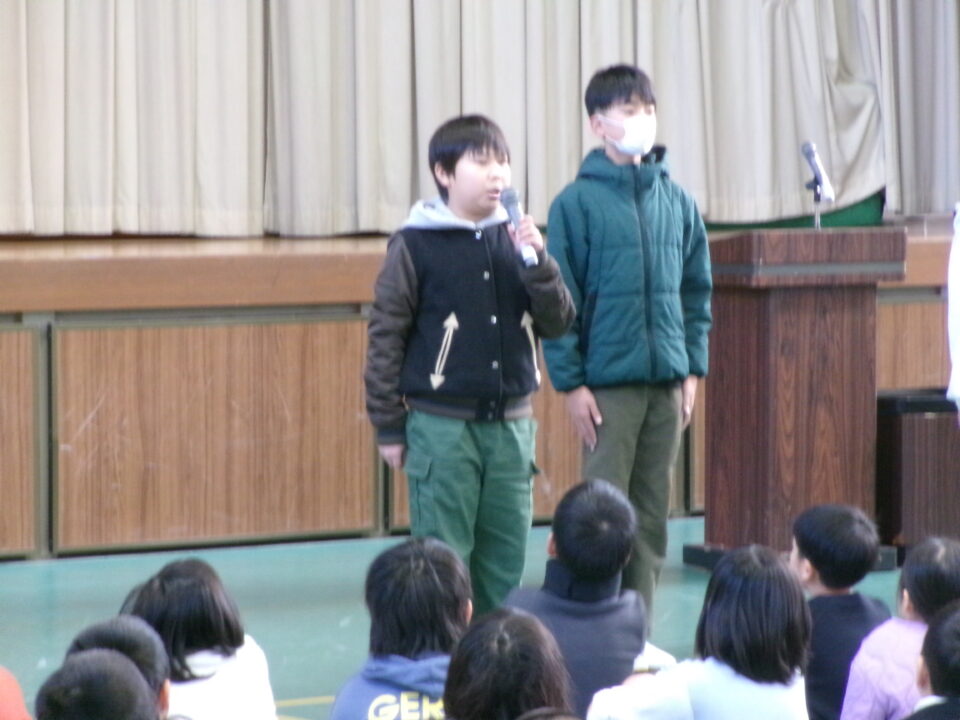 今日は集会を開いて、これまでのふり返りとこれからの目標を6年生が代表して発表しました。