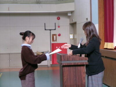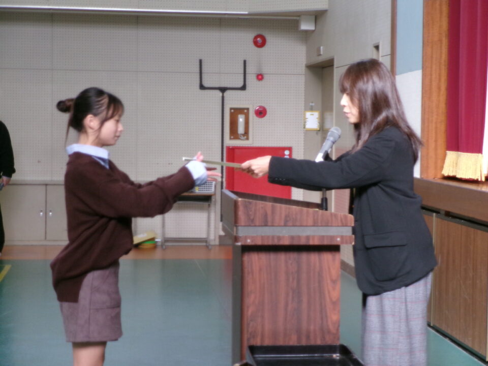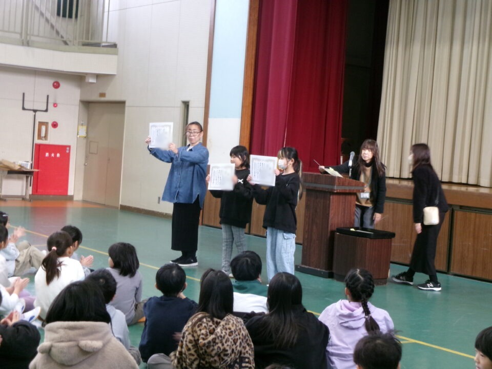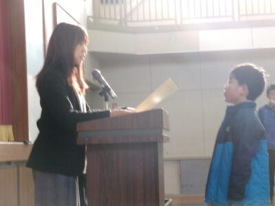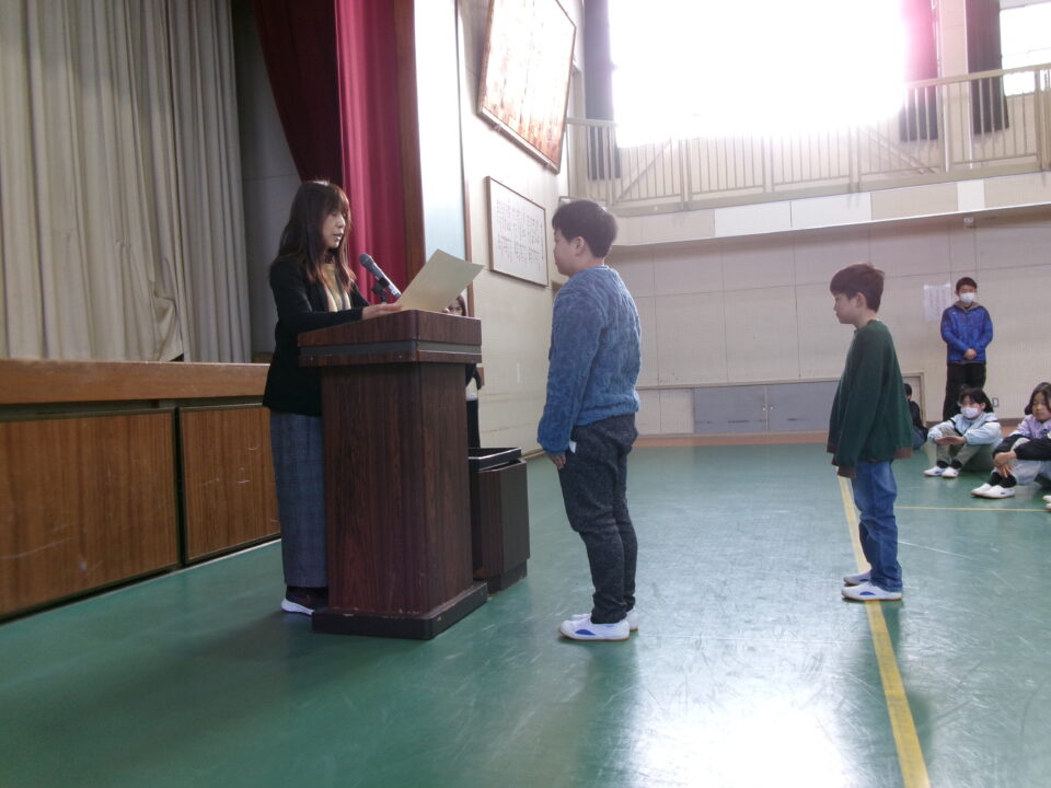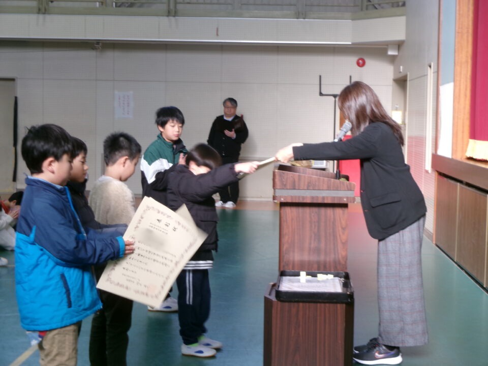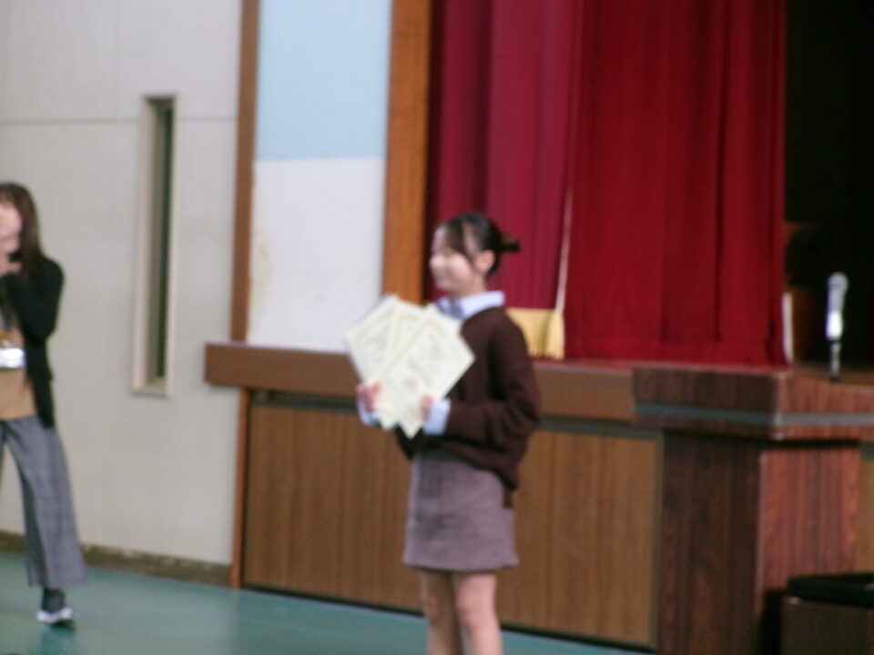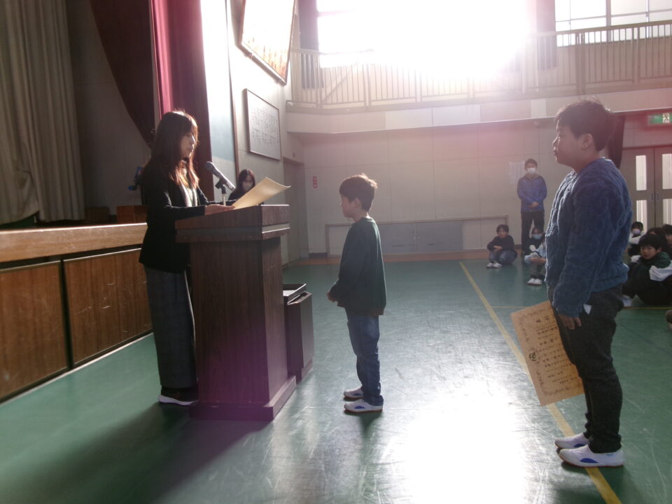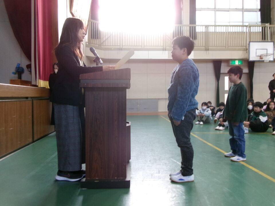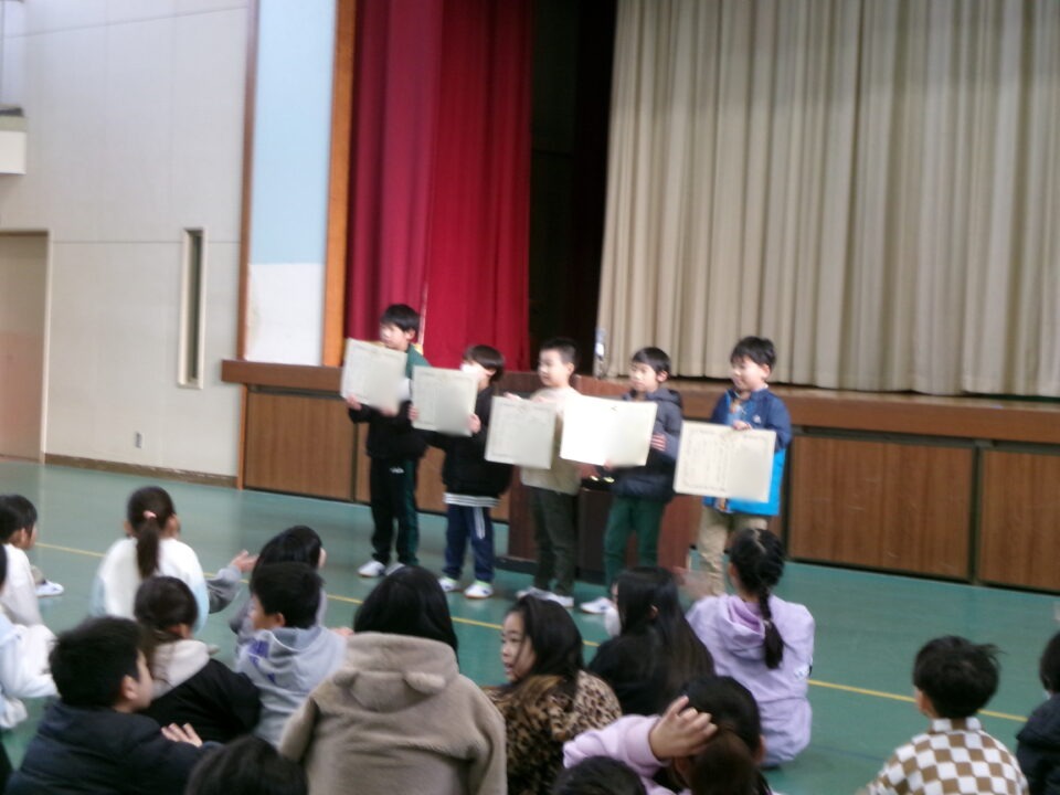 伝達表彰がありました。第四小学校の子どもたちは、学校でのがんばりをもとに学校外でチャレンジする子が多くなりました。そして、がんばりを結果として残す子が増えてきています。今回は、逃してしまった子も次にまたチャレンジしていきましょう!!