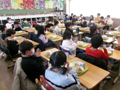 1年生では、月の初めだったので「お誕生日おめでとう!」の牛乳乾杯をしているクラスもありました。