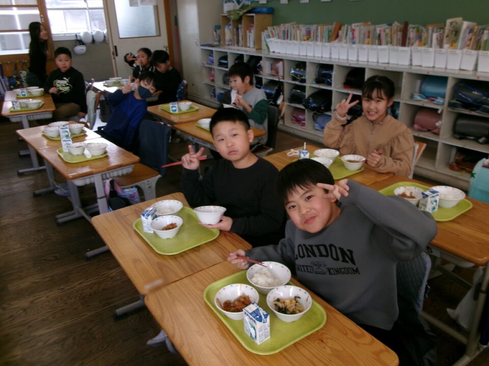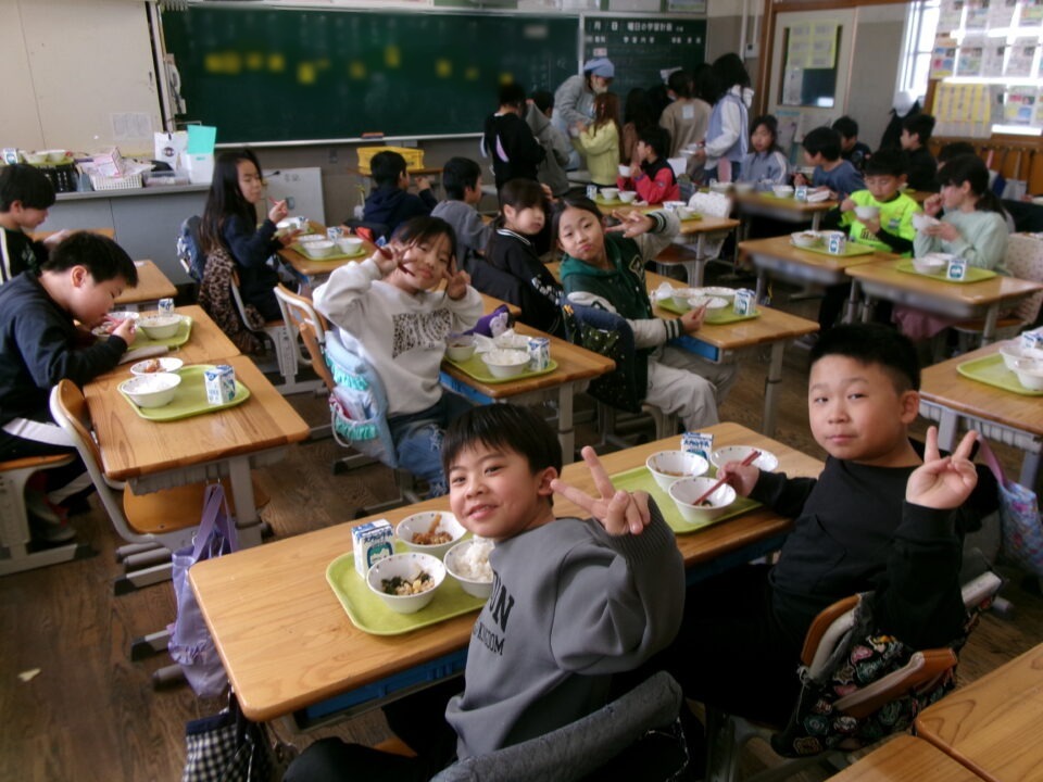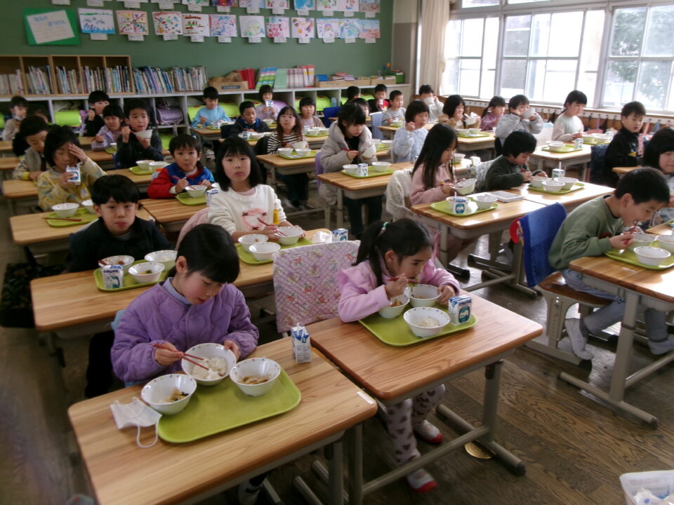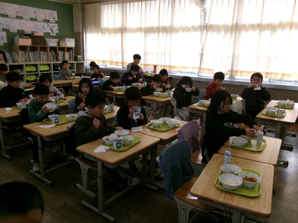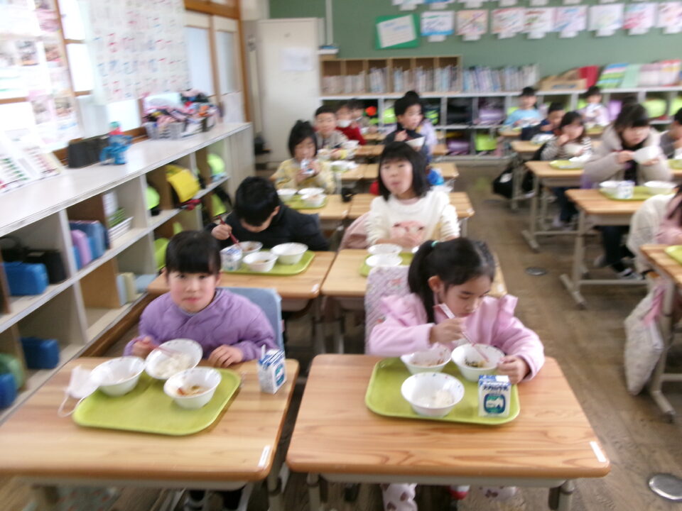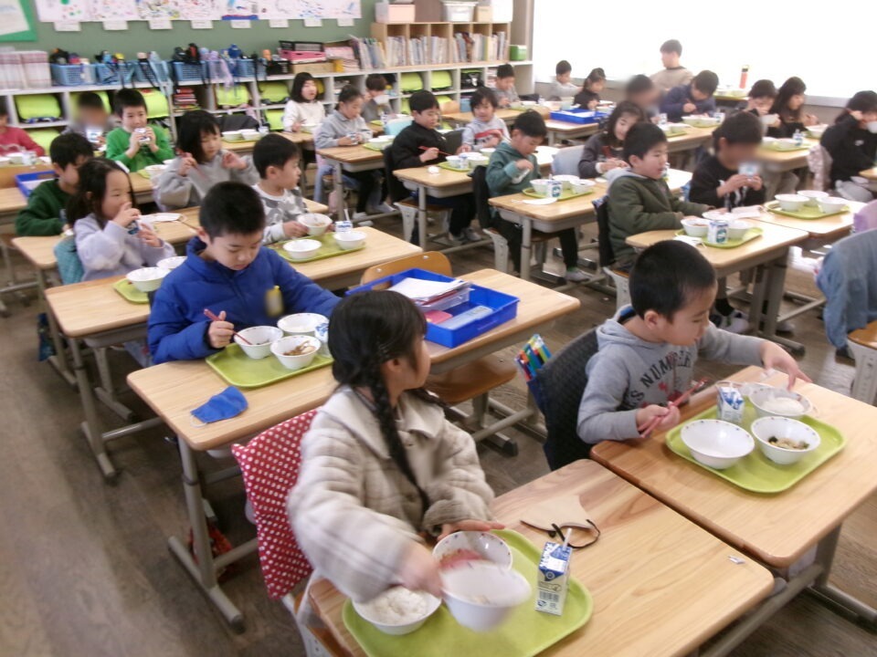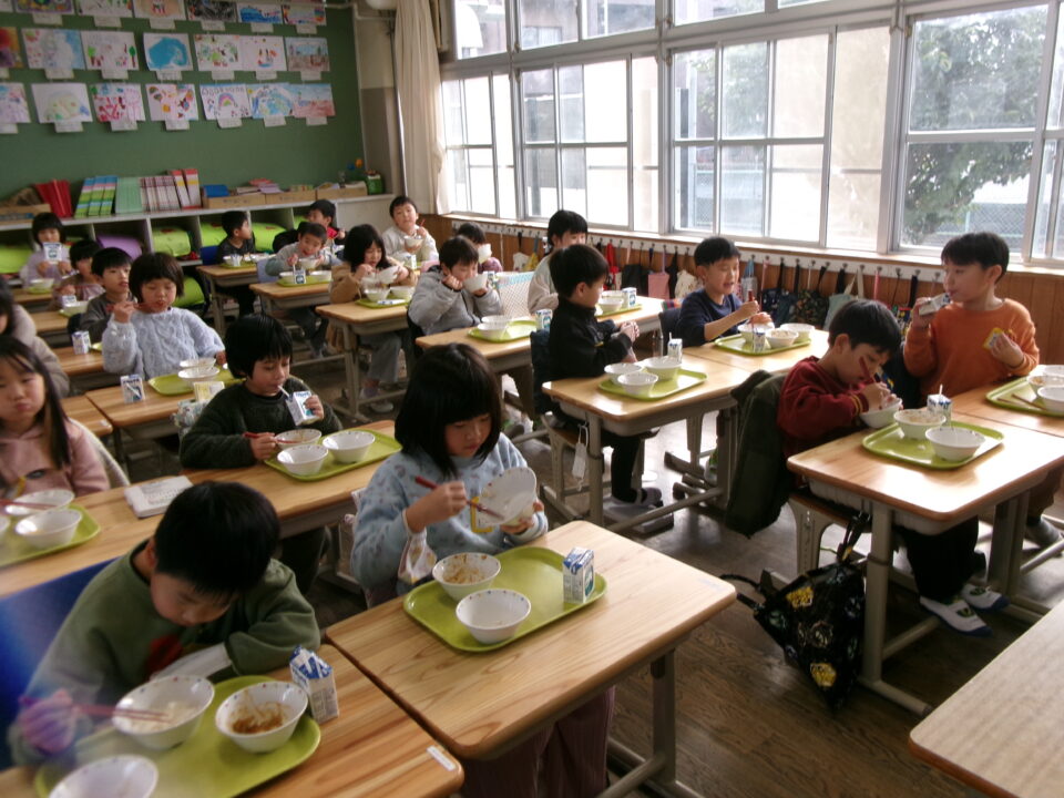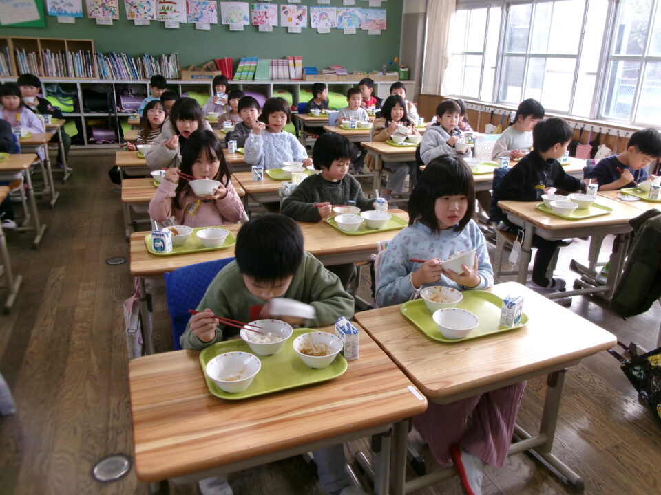 1年生では、月の初めだったので「お誕生日おめでとう!」の牛乳乾杯をしているクラスもありました。