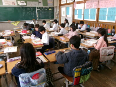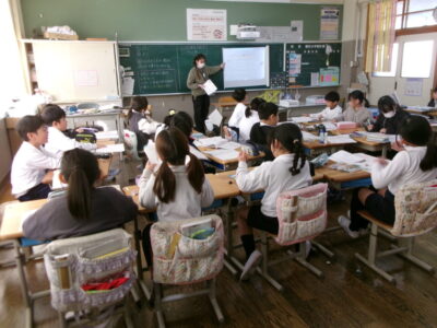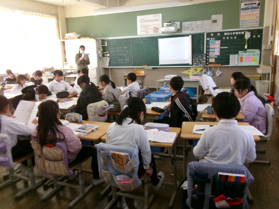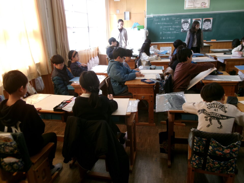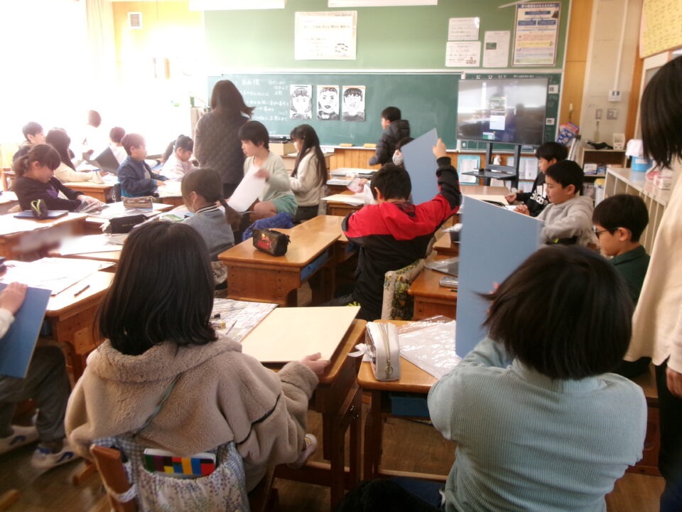 図工では、これから木版画に挑戦していくようです。他のクラスでも一人ひとりが、発表したり、ノートに書いたりとがんばっていましたね。