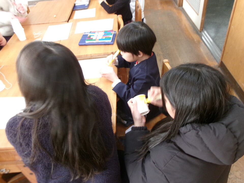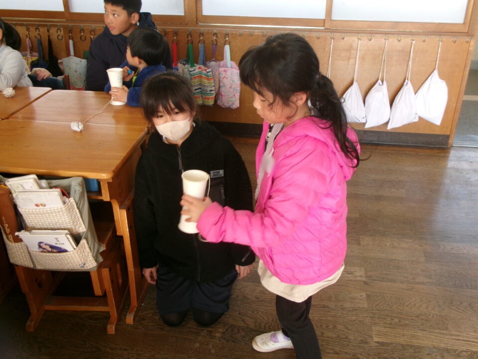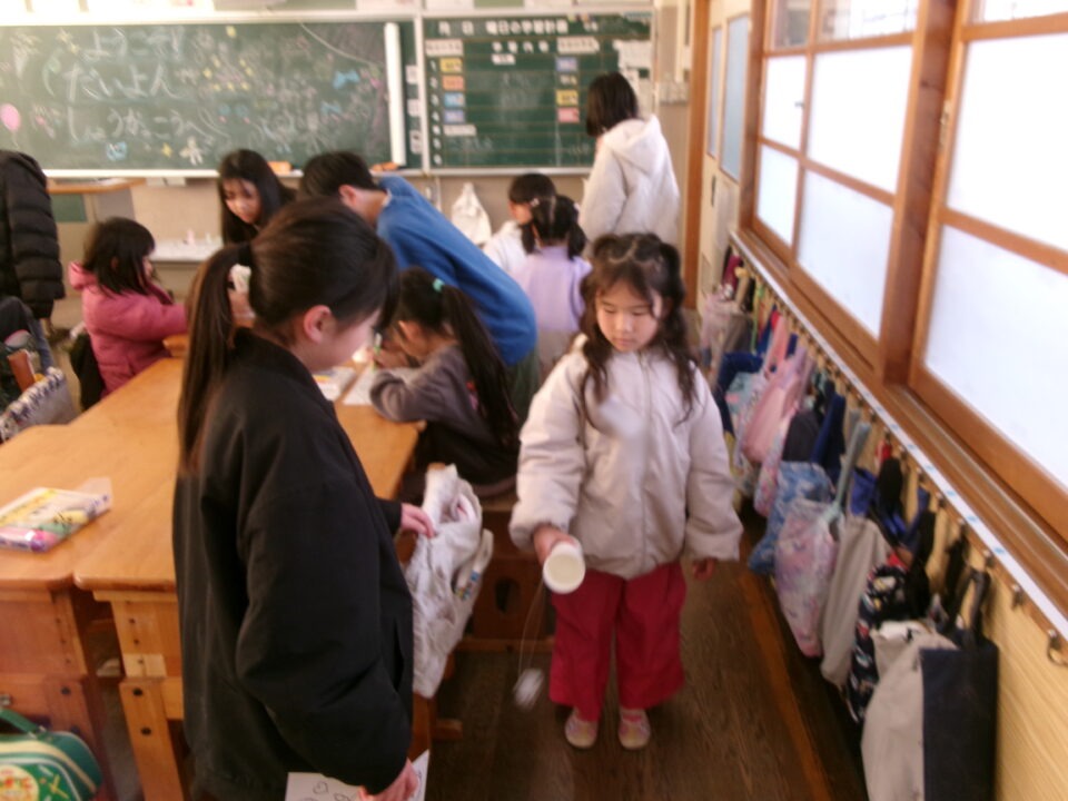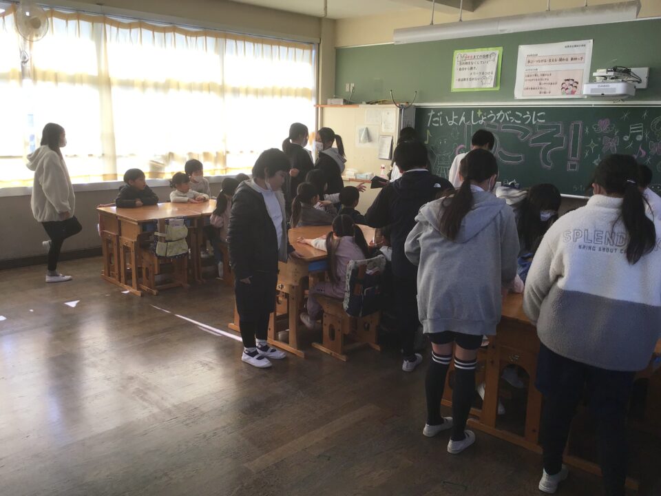 5年生の子の新1年生の子への声のかけ方が、本当に大切にお世話する気持ちが伝わってきました。