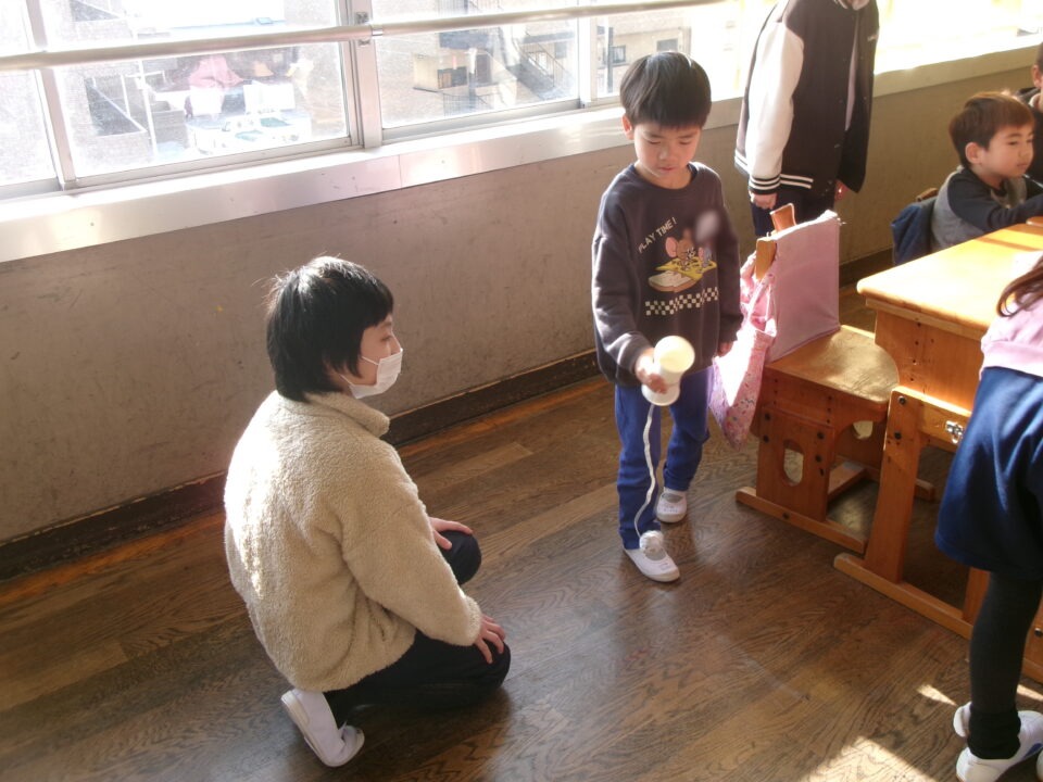 5年生の子たちが、説明会の間、新1年生の子が楽しめるように交流を考えてくれました。