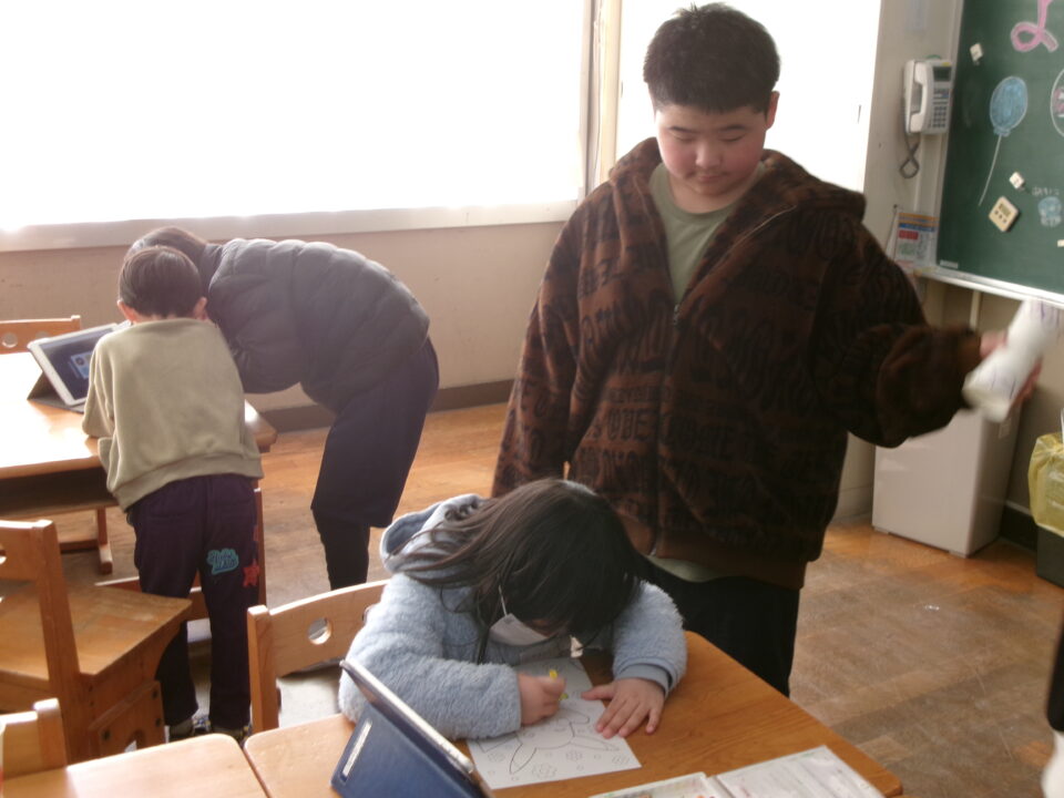 新1年生の子が安心するように丁寧接し、5年生の子からは、「(新1年生の子が)かわいい~🎵」と心の声が漏れていました。