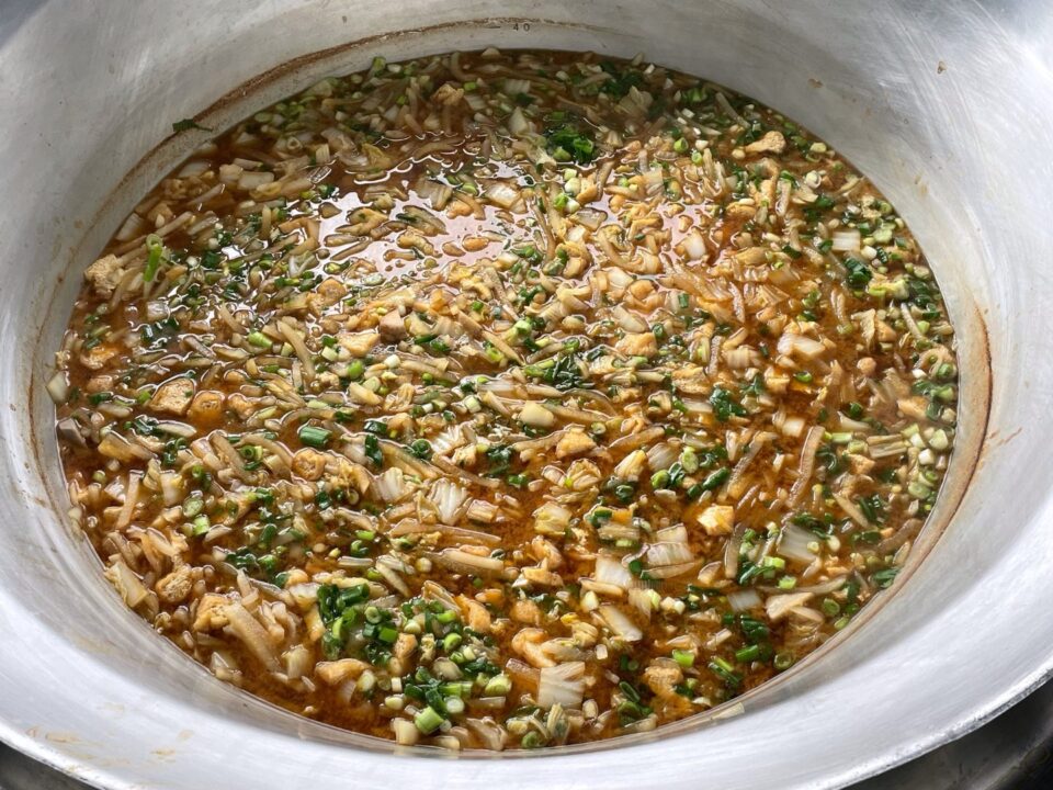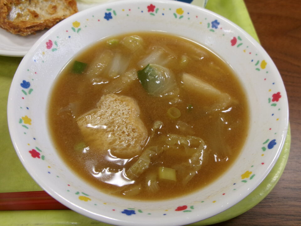 給食室きゅうしょくしつでは、提供ていきょうしていただいた野菜やさい使つかって、まごころぽかぽかじるができあがりました。おいしくいただきました。ありがとうございました。