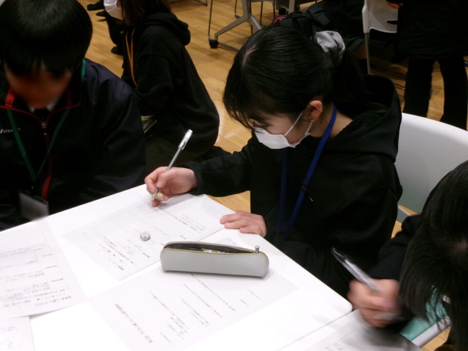 ワークシートに自分の考えを書いて、グループで話し合います。