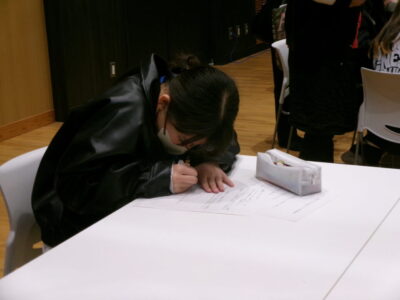 2月5日(木)に行われる鎌中校区人権フォーラムを開催するにあたり、鎌田中学校の2年生、港小学校と第四小学校の6年生で『人権フォーラム子ども実行委員会』を立ち上げ、集(あつ)まって話《はな)し合《あ)いをしています。