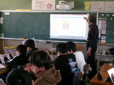 今日は、ゲストティーチャーの加藤 進先生にお越しいただき、理科の時間に「プログラミング」を使って学習しました。