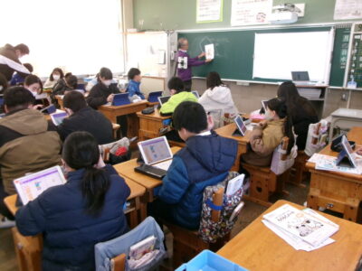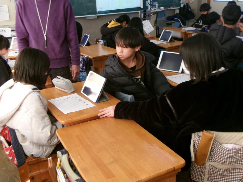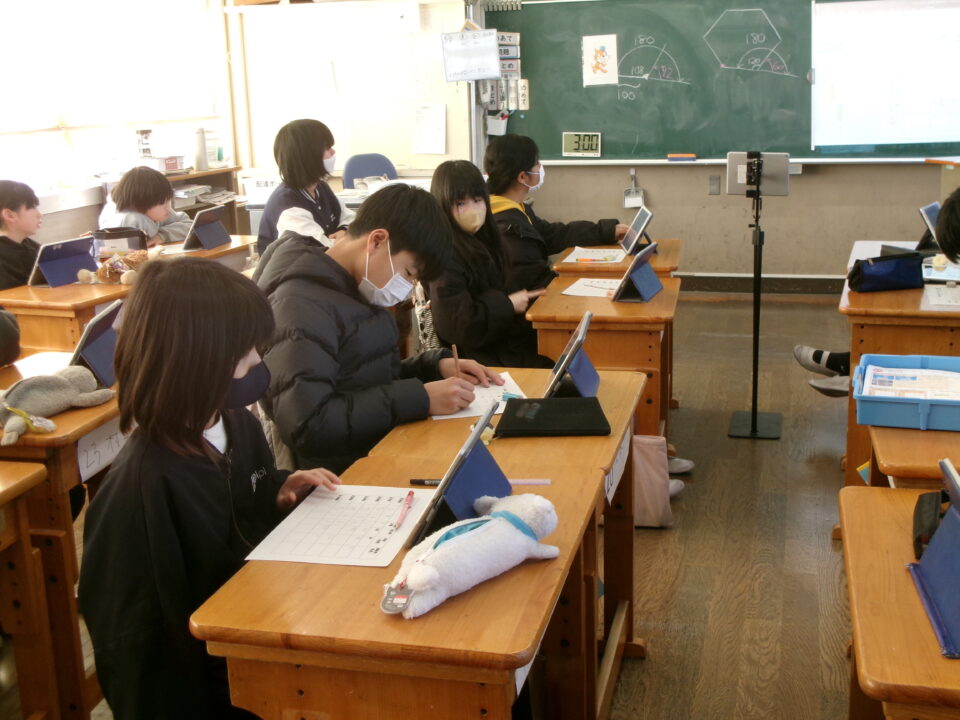 年生ねんせい加藤進先生かとうすすむせんせいにおしいただき、算数さんすう時間じかんにプログラミングを使つかって学習がくしゅうしました。
