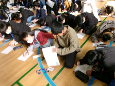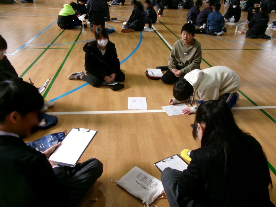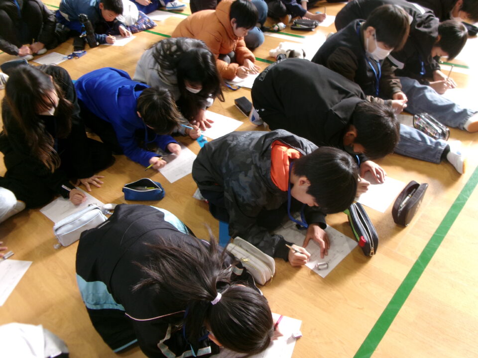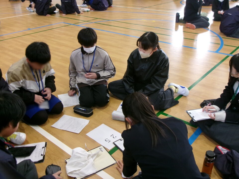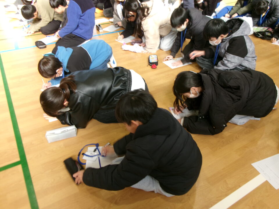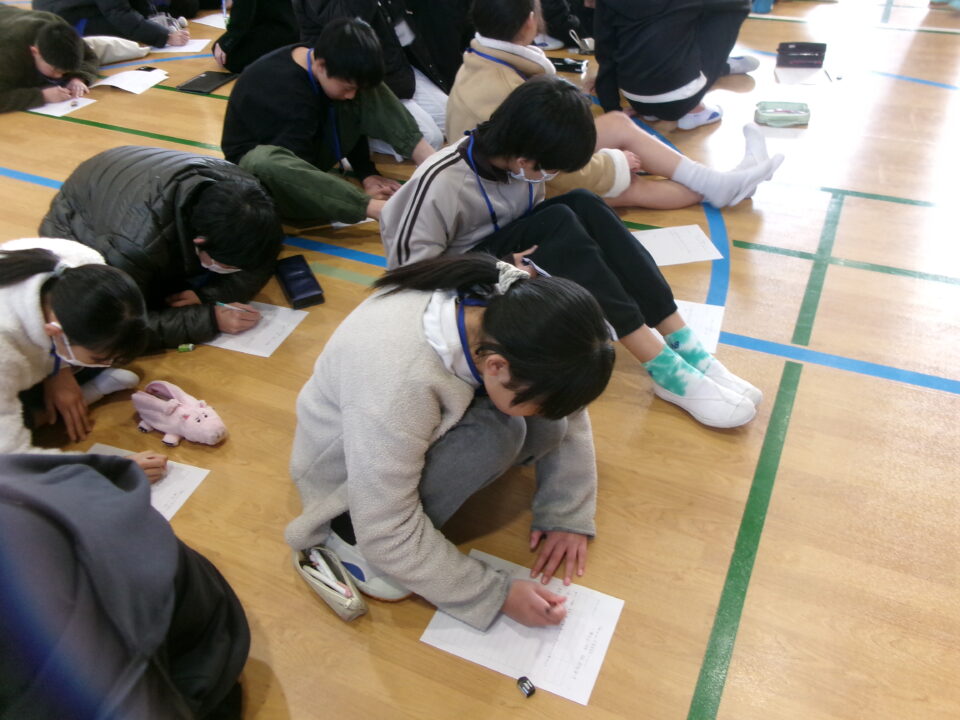 発表を聞き、考えたことを一生懸命書いています。