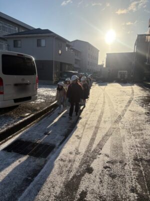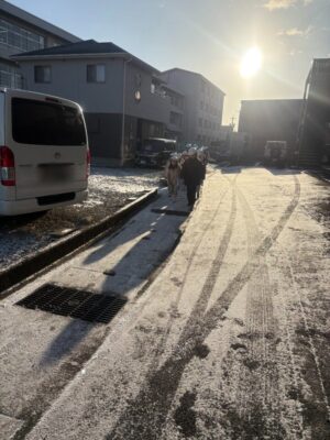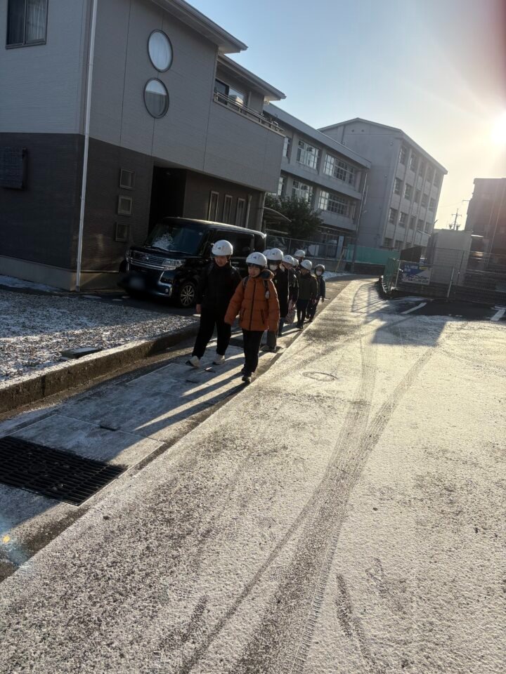 朝の登校も道が凍っているところもあり、気を付けて歩いてきたようです。