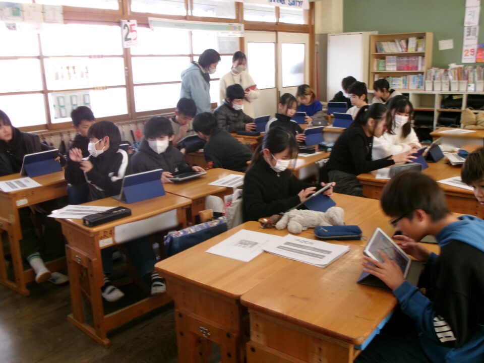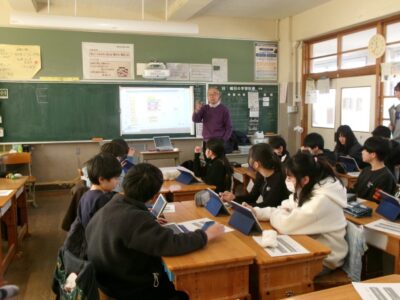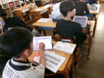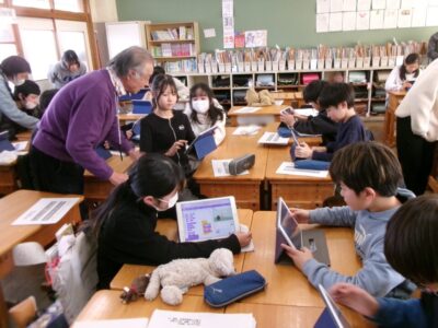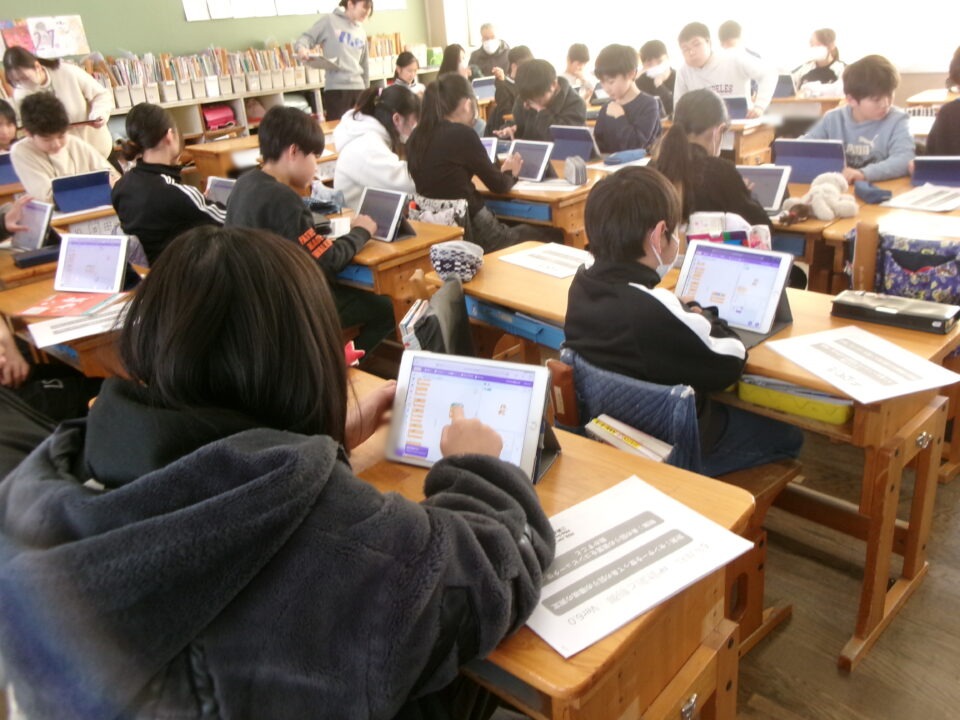 今日きょうは6ねんくみで、ゲストティーチャーの加藤かとう 進先生すすむせんせいにおしいただき、理科りか時間じかんに「プログラミング」を使つかって学習がくしゅうしました。