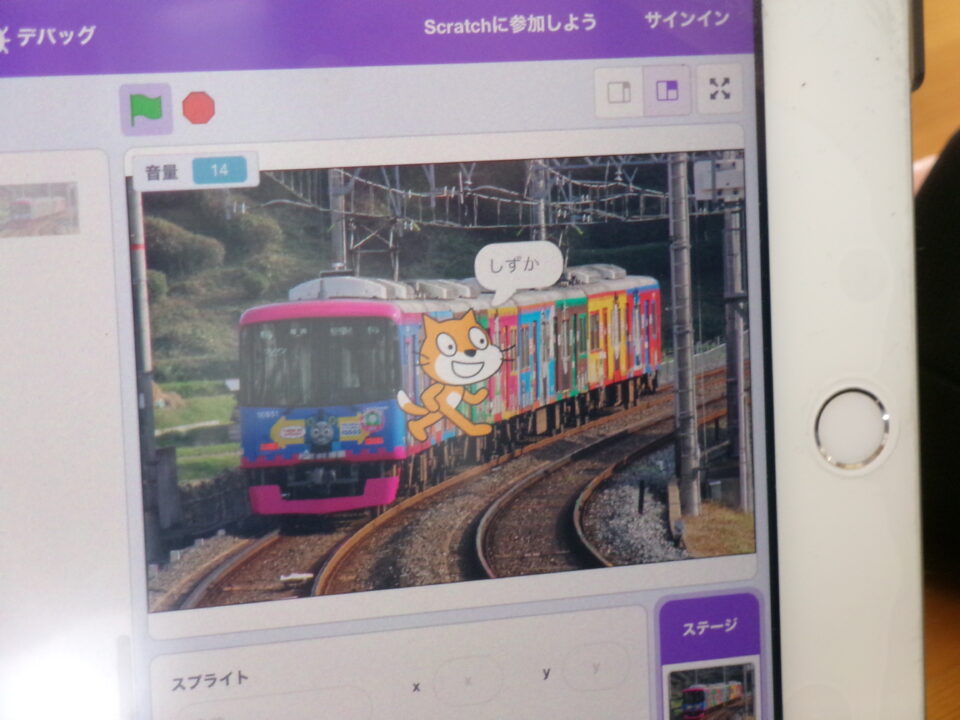 おとセンサーやひかりセンサーを使つかってプログラムがまれている実体験じったいけんができましたね。音量おんりょうによって、ねこちゃんの言葉ことばだ)し)が変《かわり、背景はいけいえることができました。