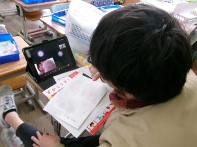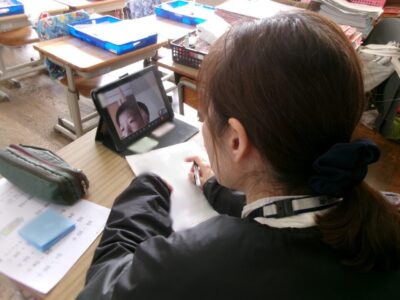 今朝からタブレットを使って8時30分~朝の会を行い、先生と話をしたり、質問をしたりしてお家で学習に取り組んでいます。