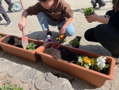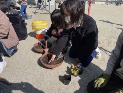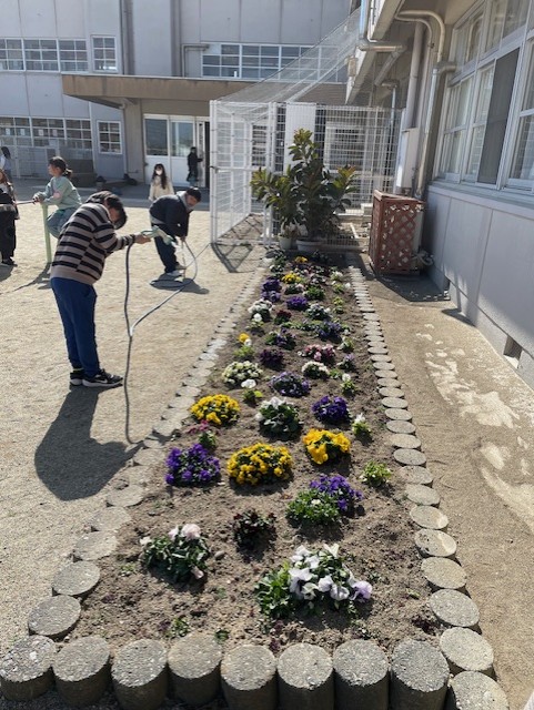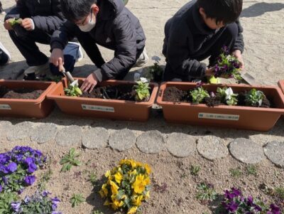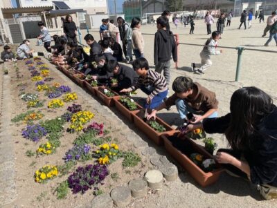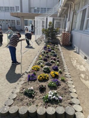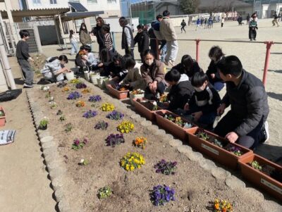 先日、クラギさんから松阪市の小中学校にパンジーの苗をいただきました。